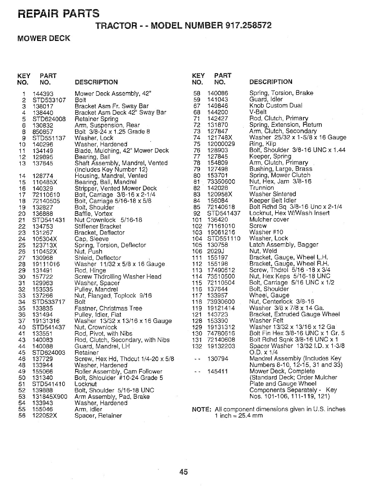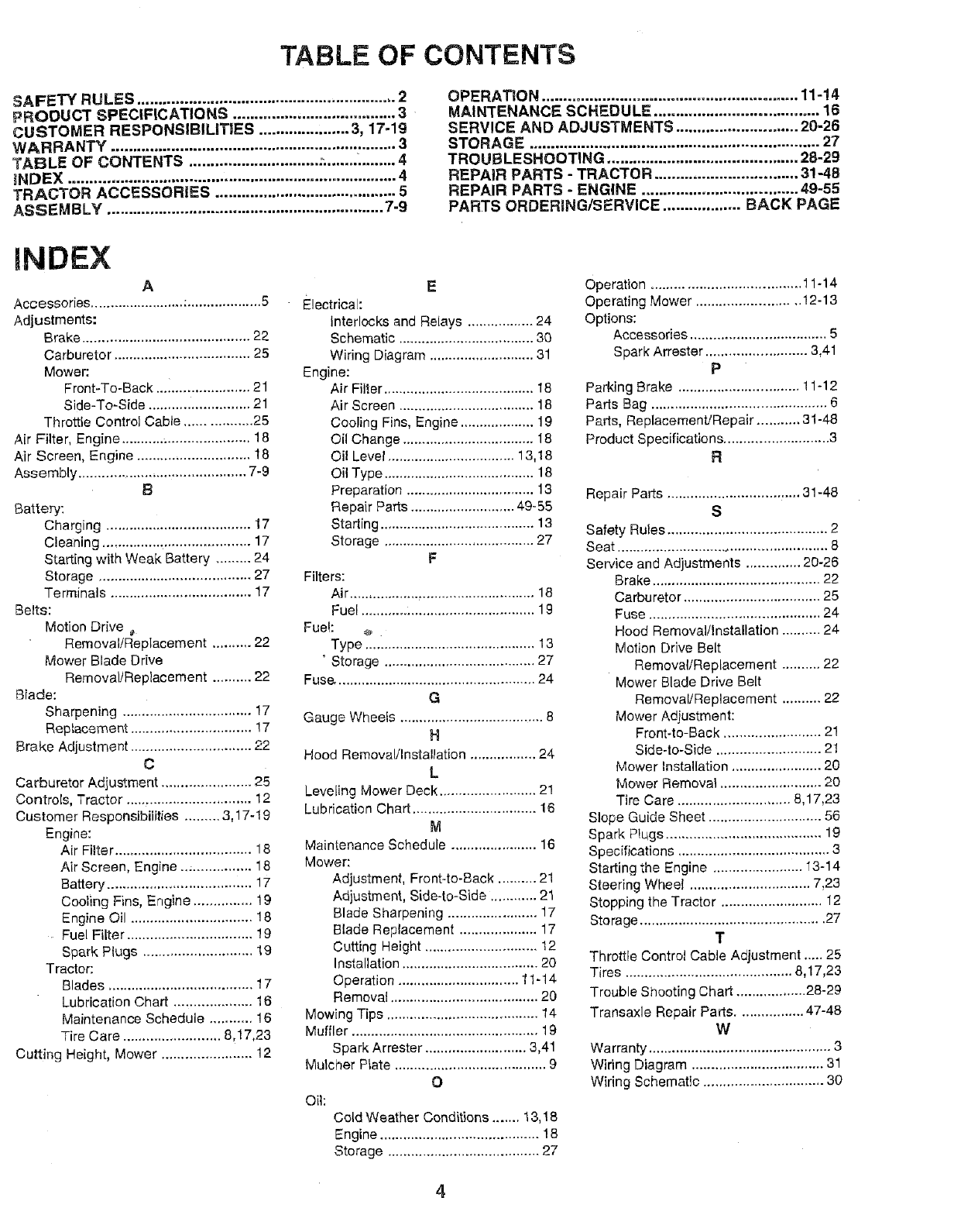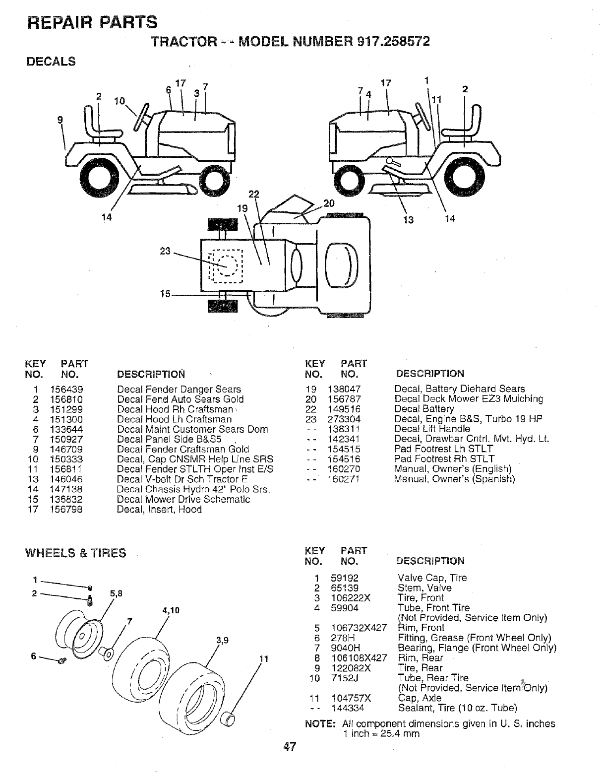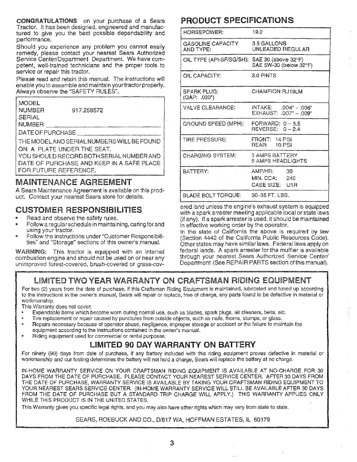 Craftsman 917258572 User Manual TRACTOR Manuals And Guides L0709063
