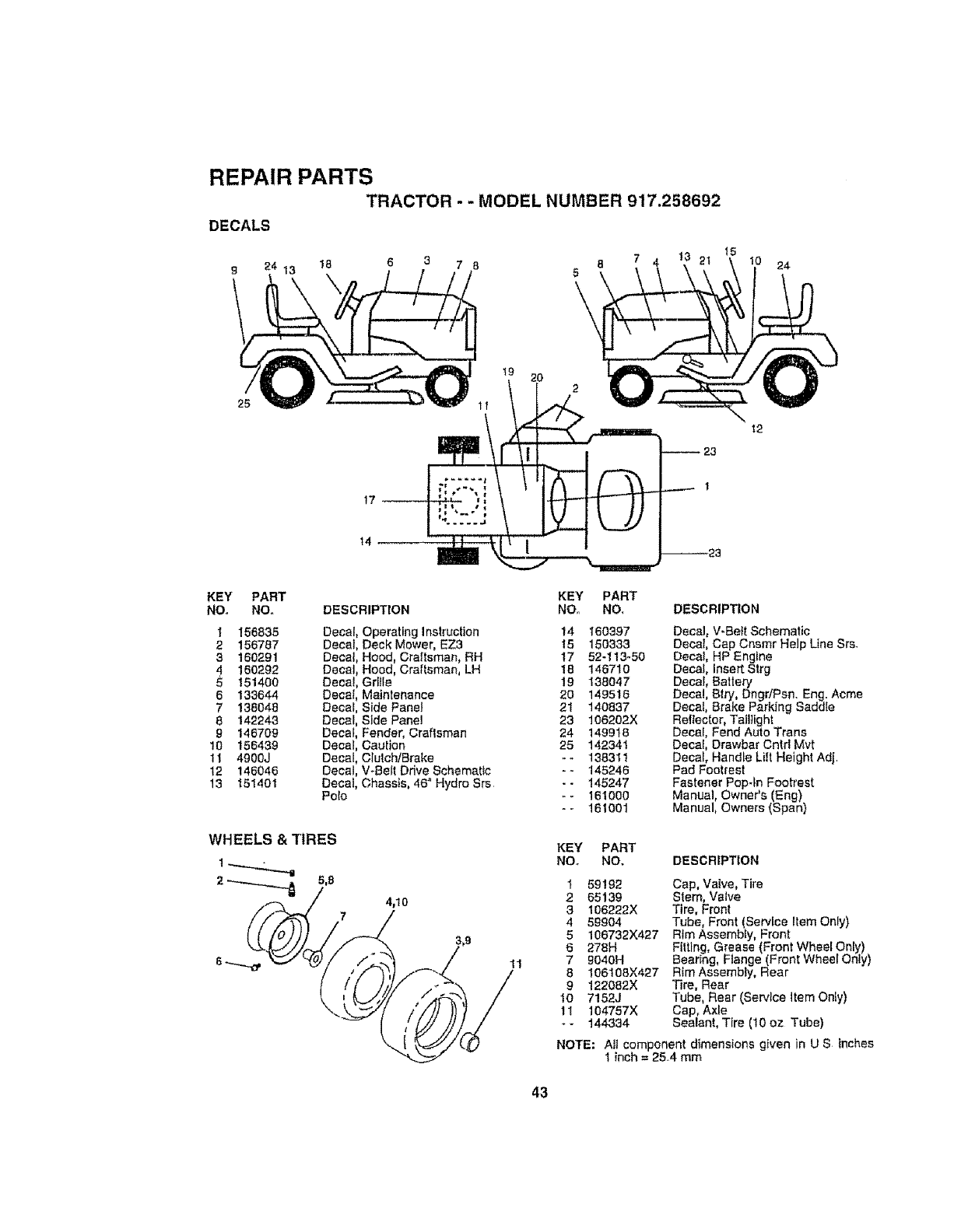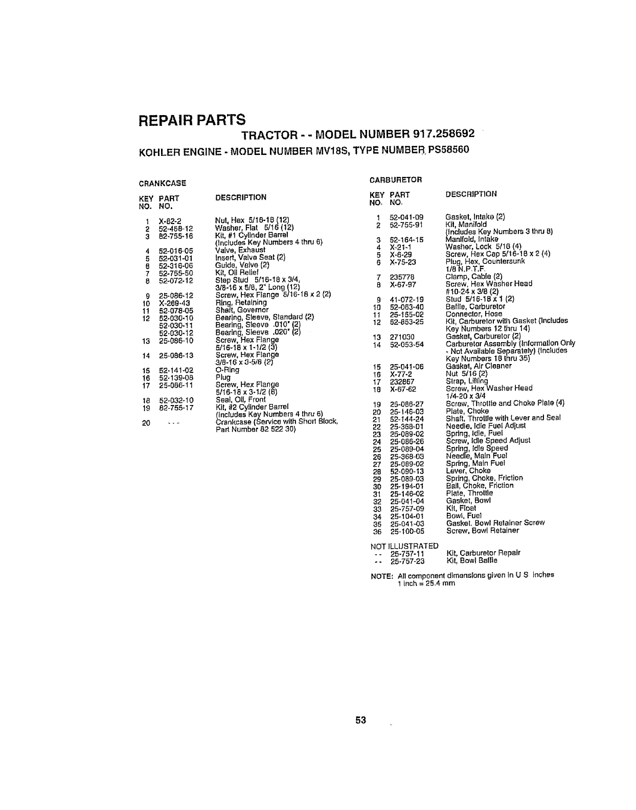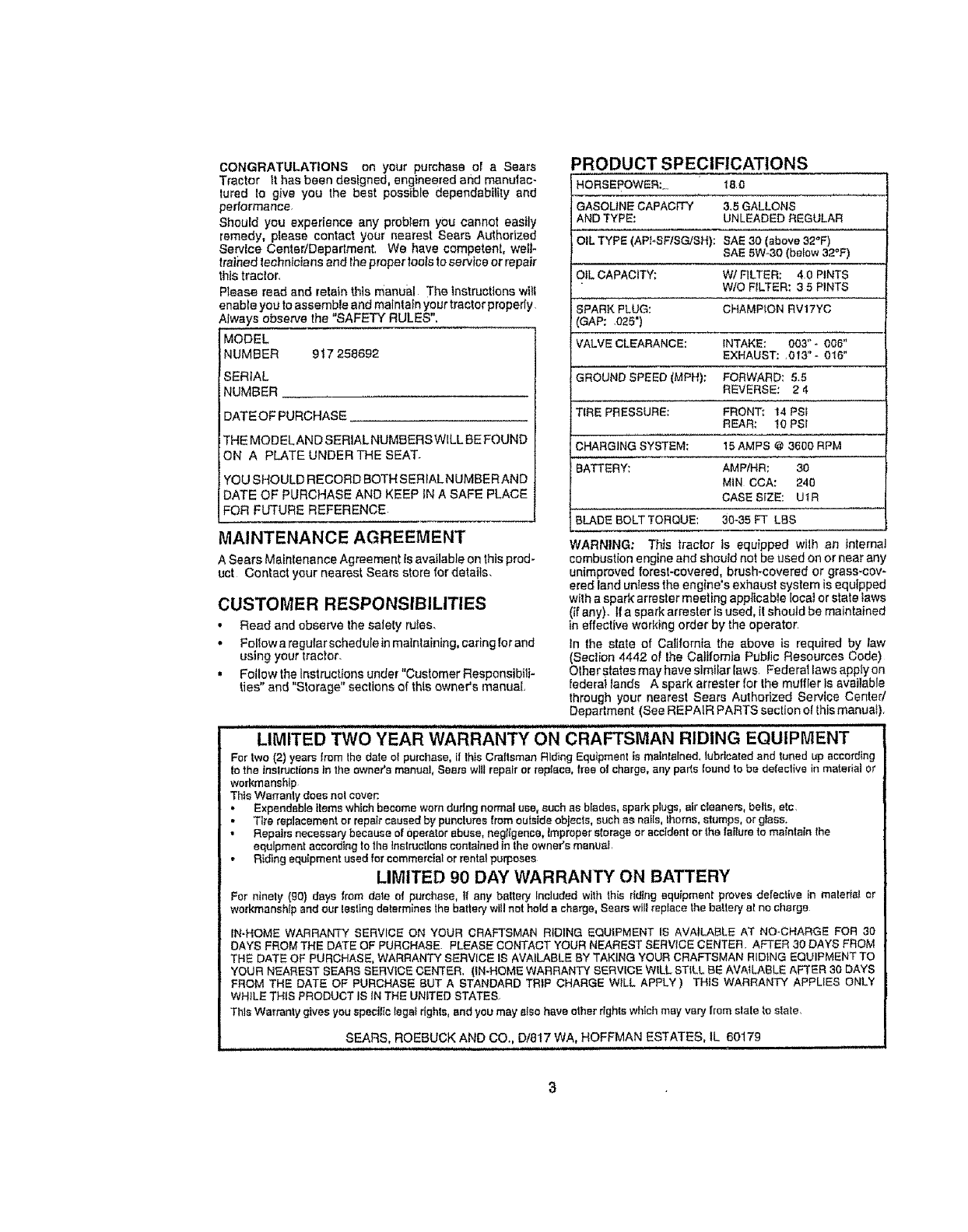 Craftsman 917258692 User Manual TRACTORS Manuals And Guides L0711535