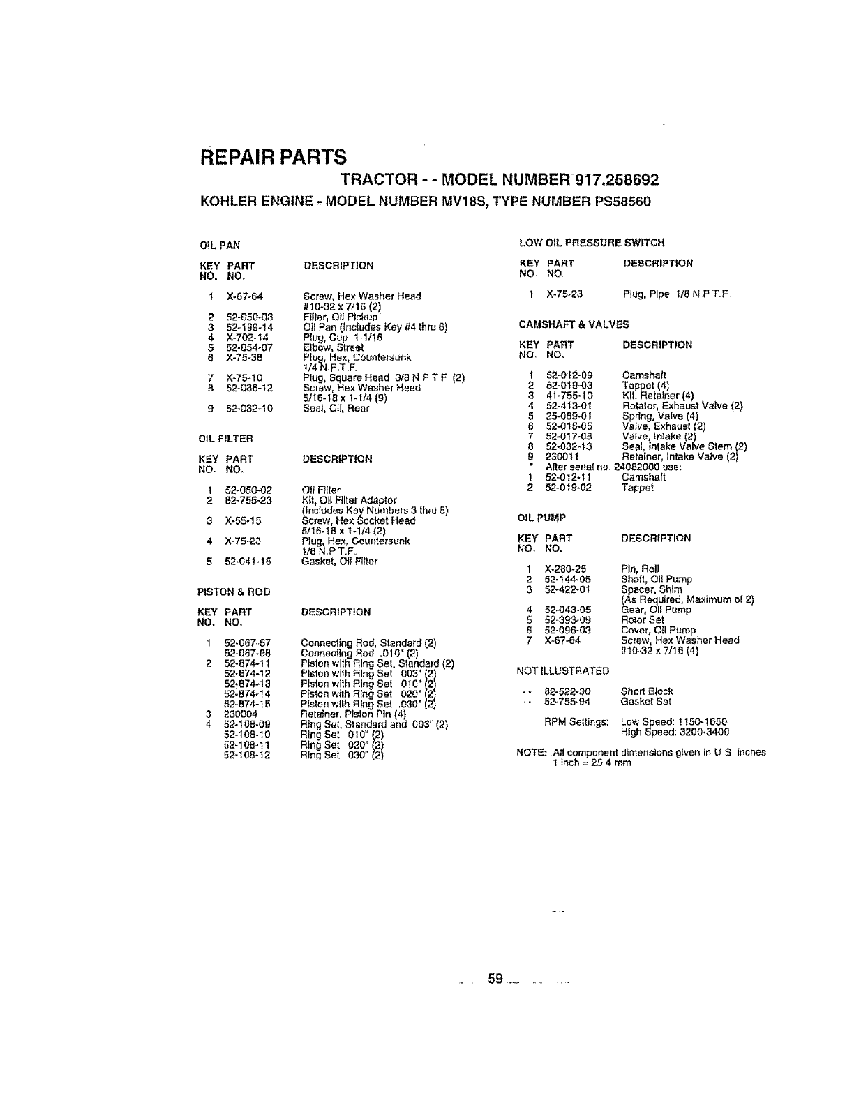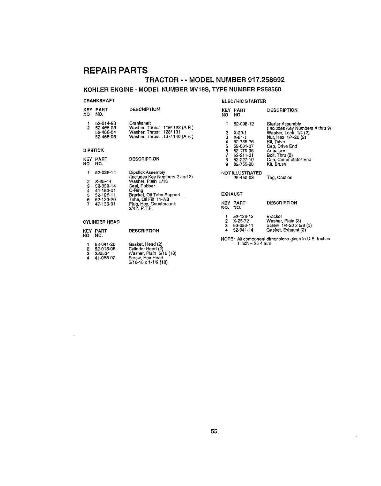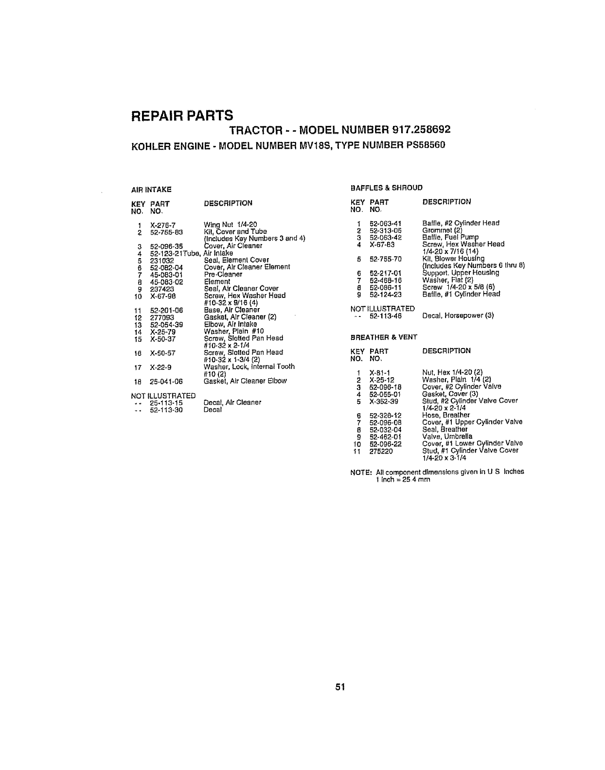 Craftsman 917258692 User Manual TRACTORS Manuals And Guides L0711535