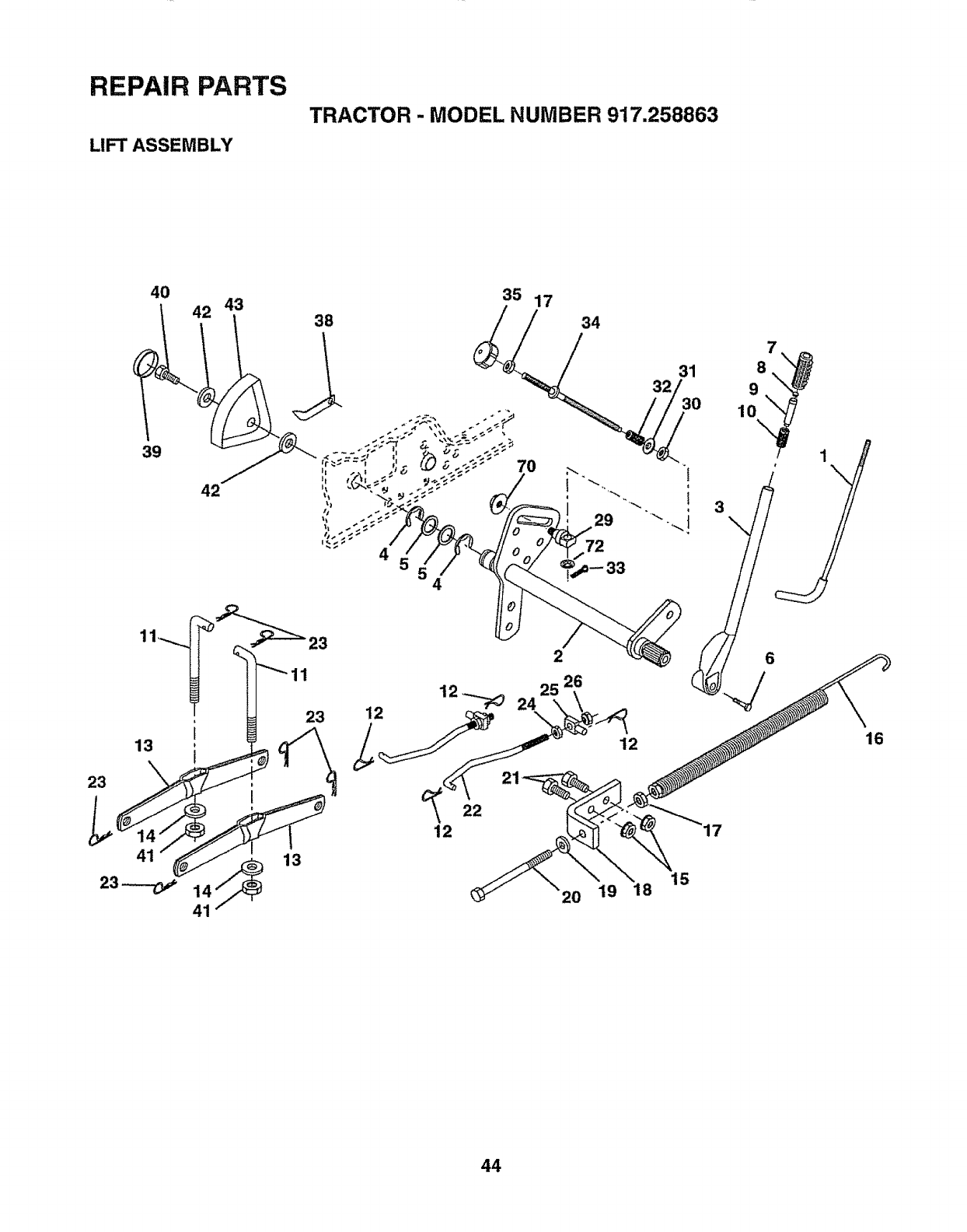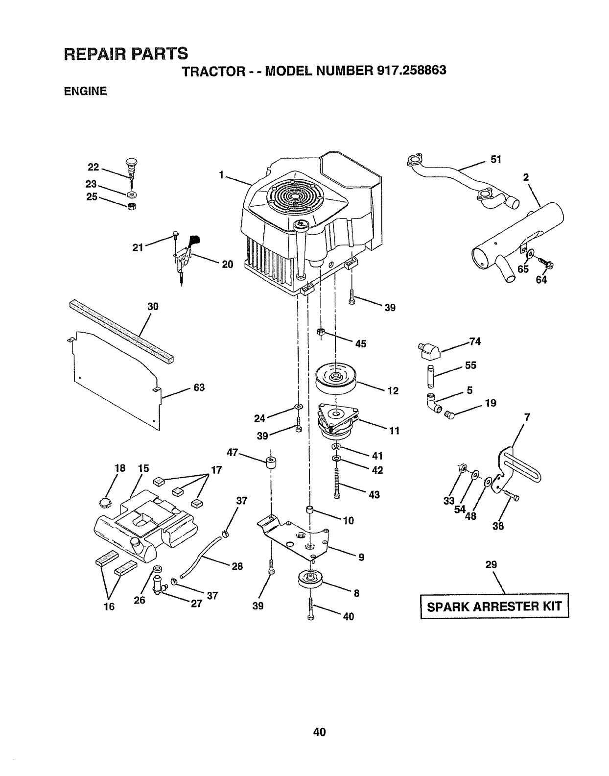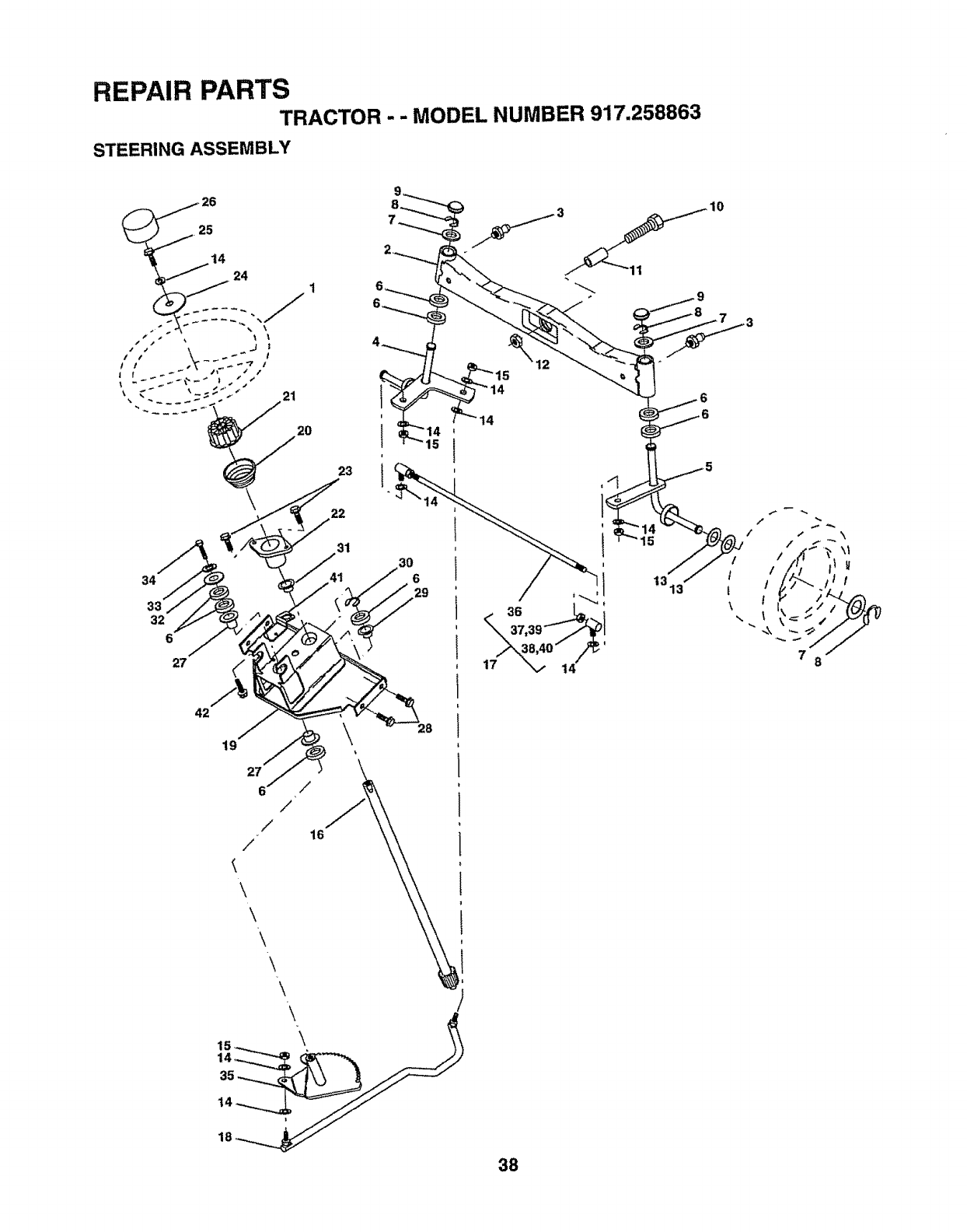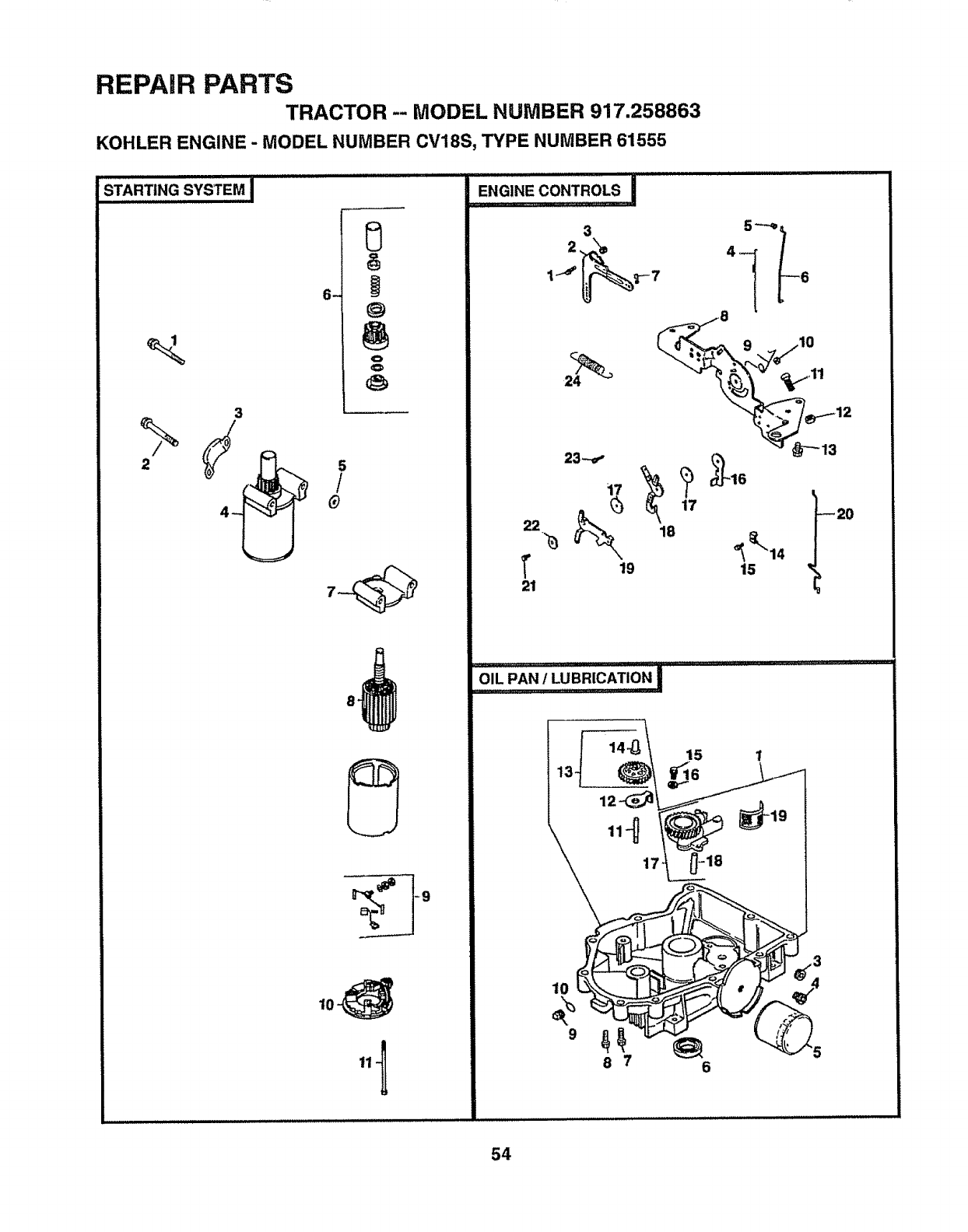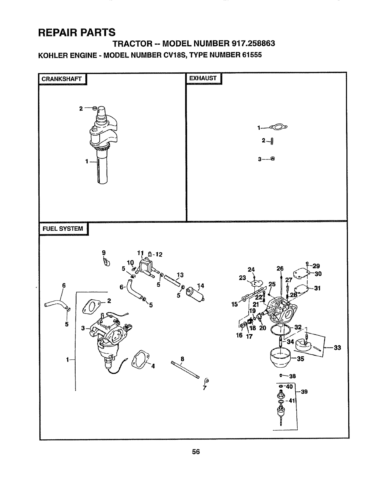 User Manual: Craftsman 917258863 917258863 CRAFTSMAN TRACTOR - Manuals and Guides View the owners manual for your CRAFTSMAN TRACTOR #917258863. Home:Lawn & Garden Parts:Craftsman Parts:Craftsman TRACTOR Manual