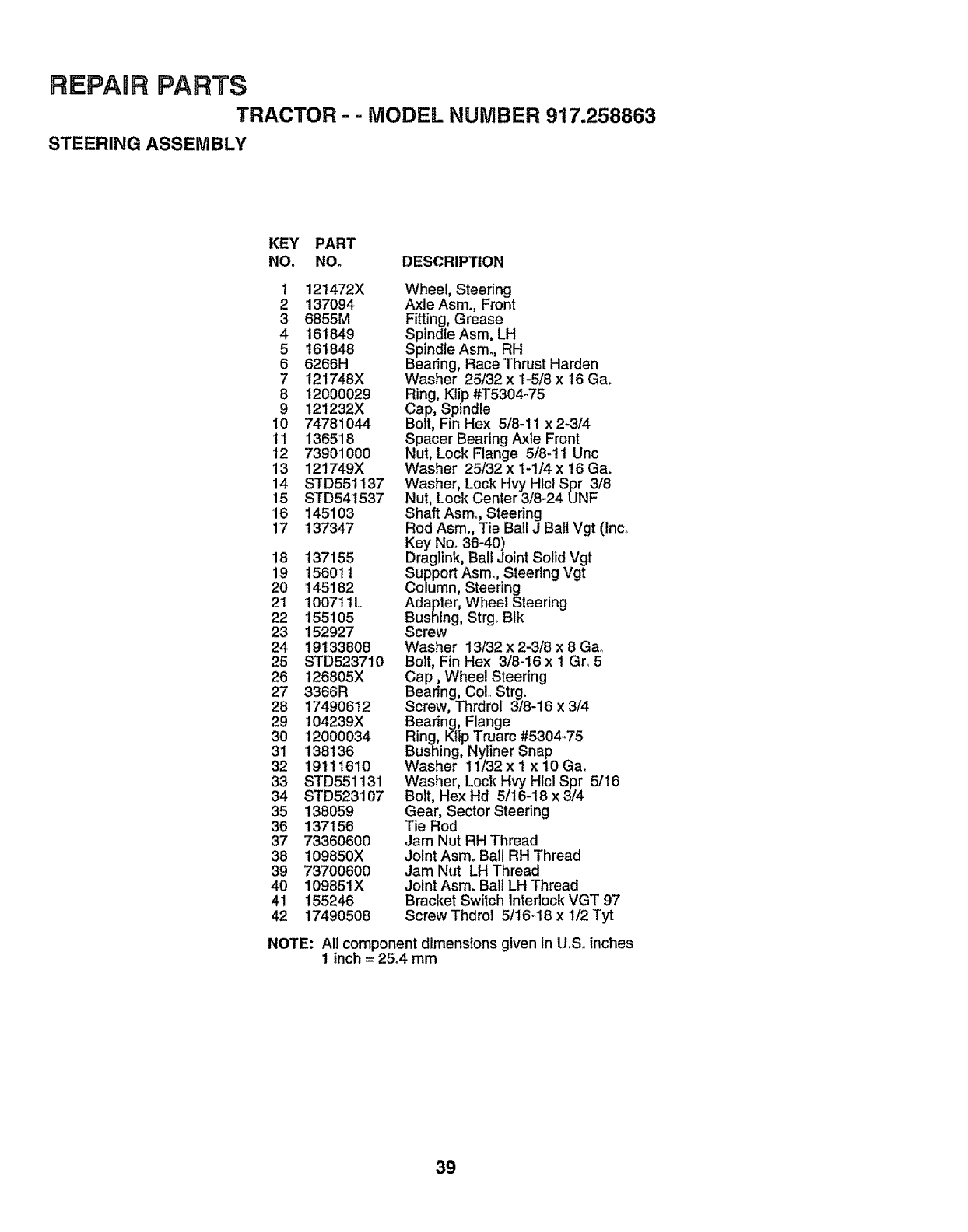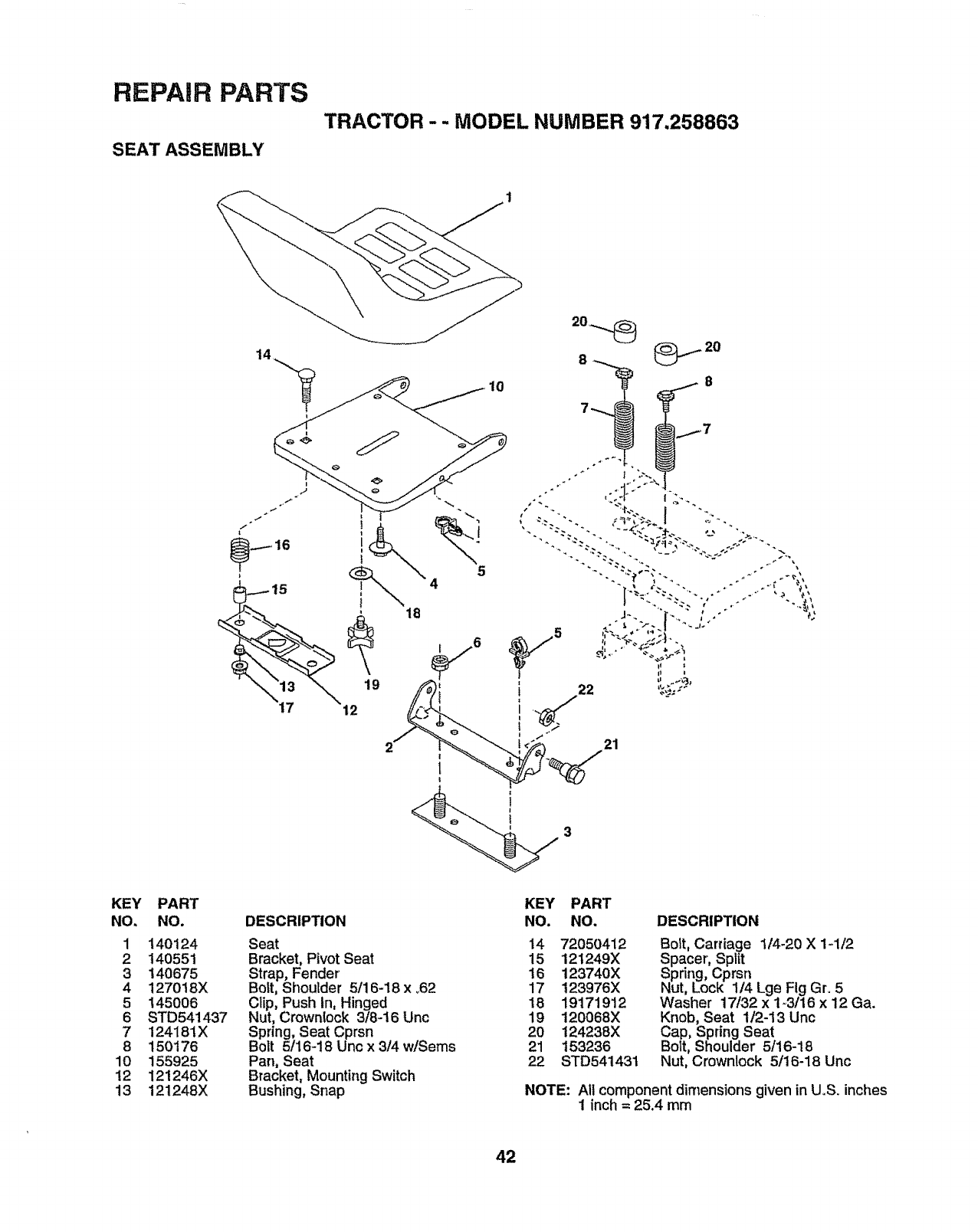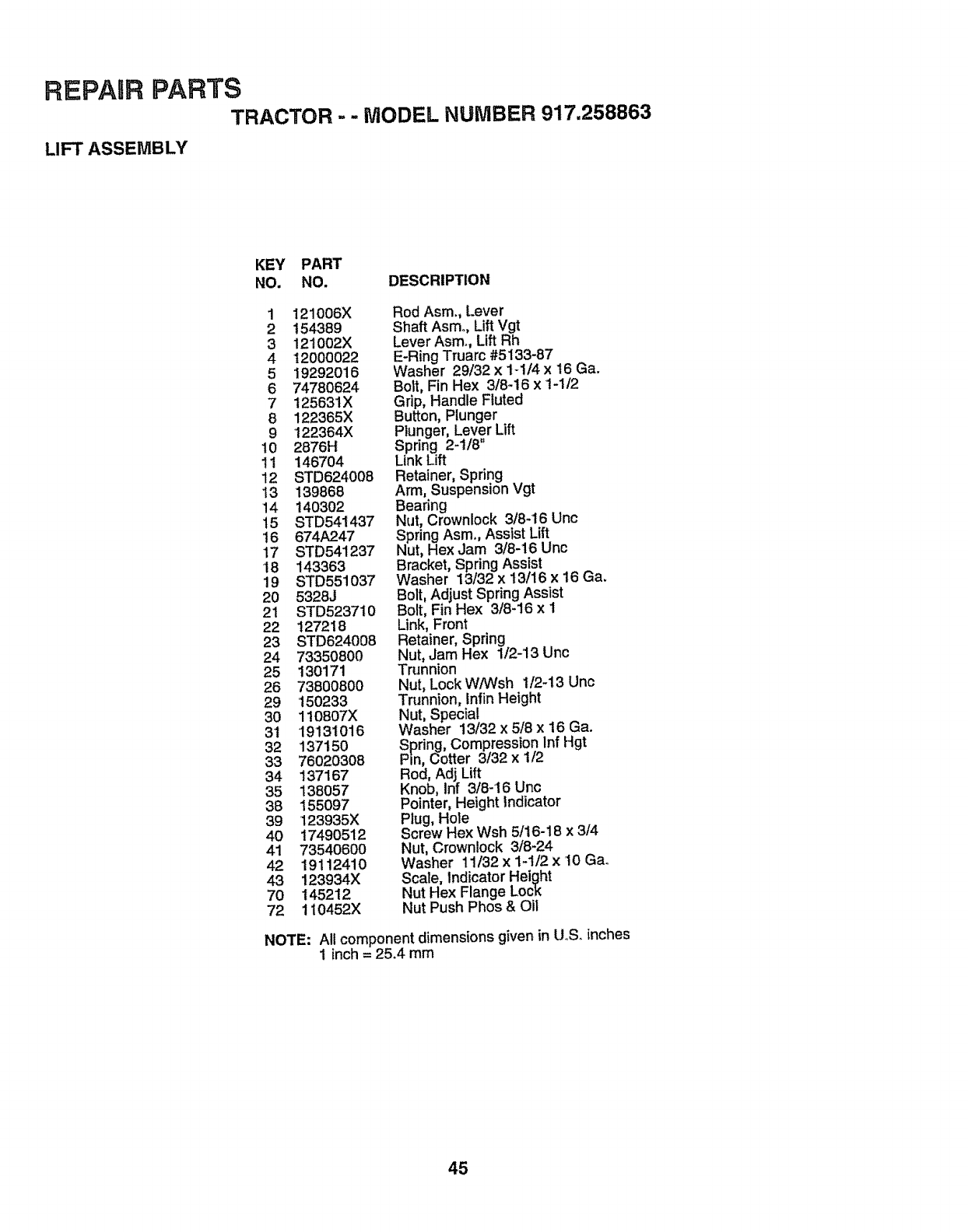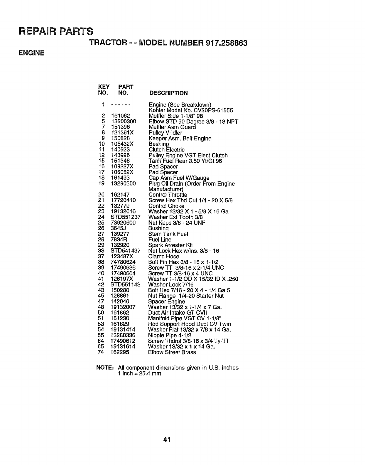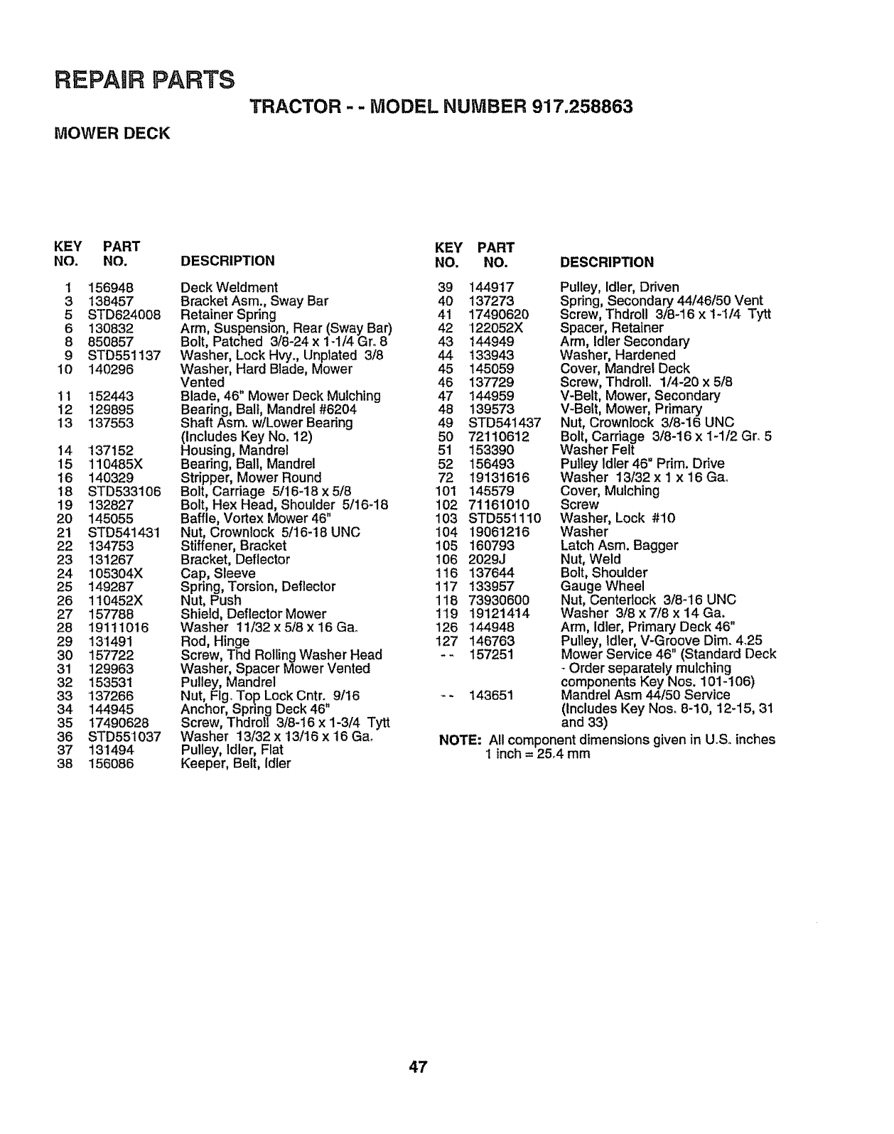 User Manual: Craftsman 917258863 917258863 CRAFTSMAN TRACTOR - Manuals and Guides View the owners manual for your CRAFTSMAN TRACTOR #917258863. Home:Lawn & Garden Parts:Craftsman Parts:Craftsman TRACTOR Manual