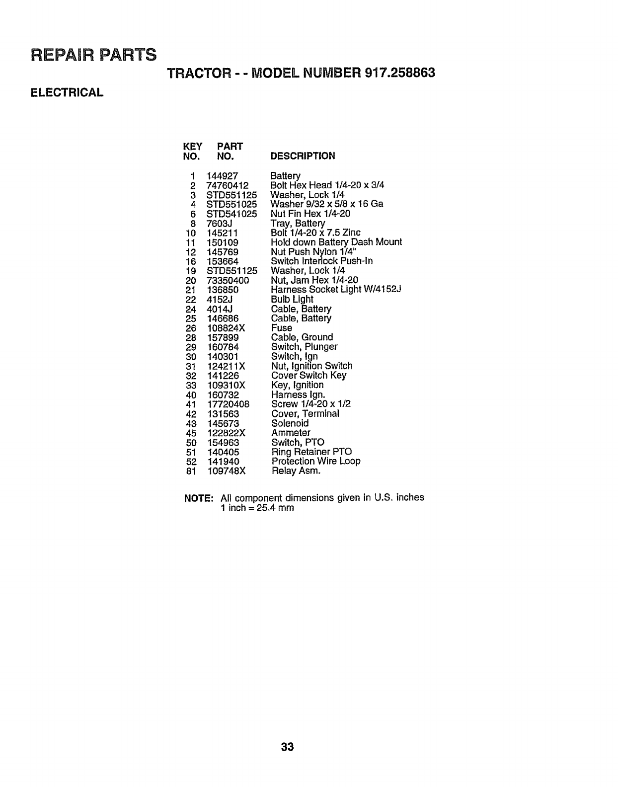 WHEN ORDERING REPAIR PARTS, ALWAYS GIVE THE