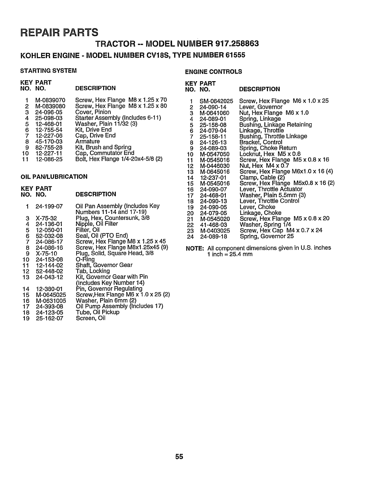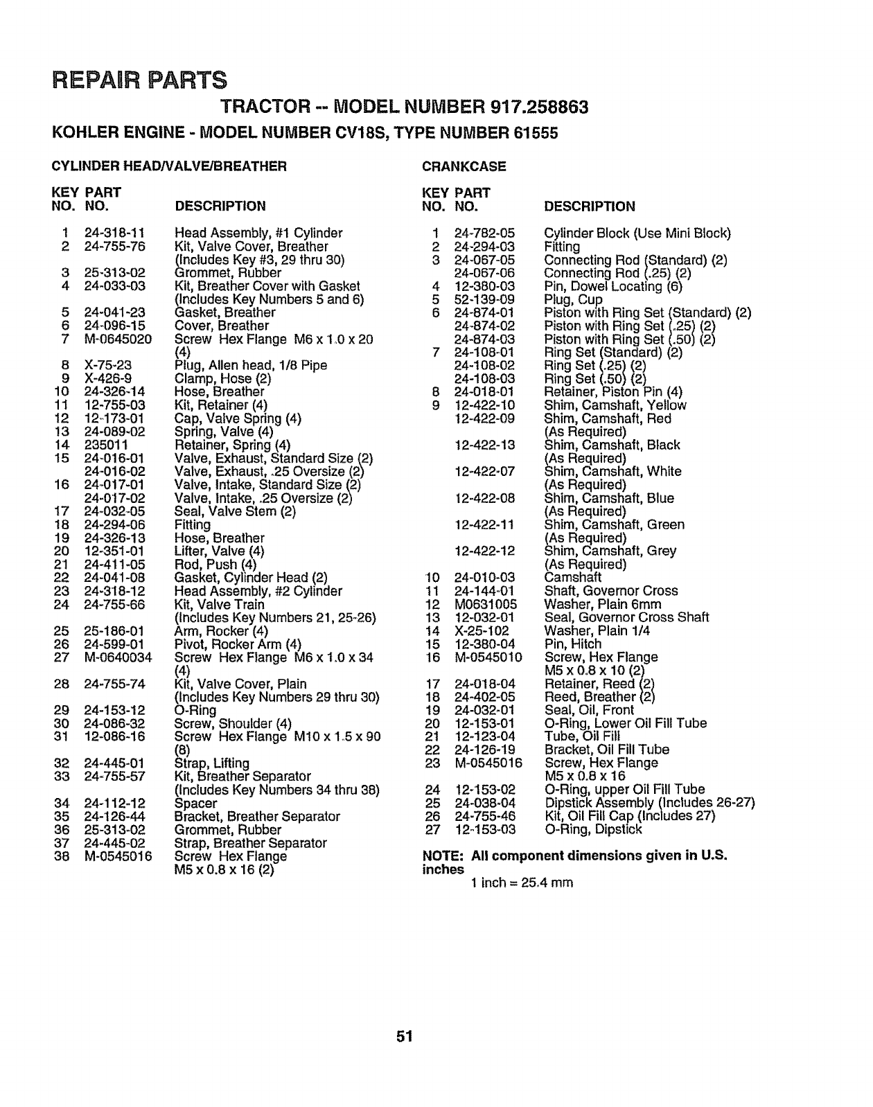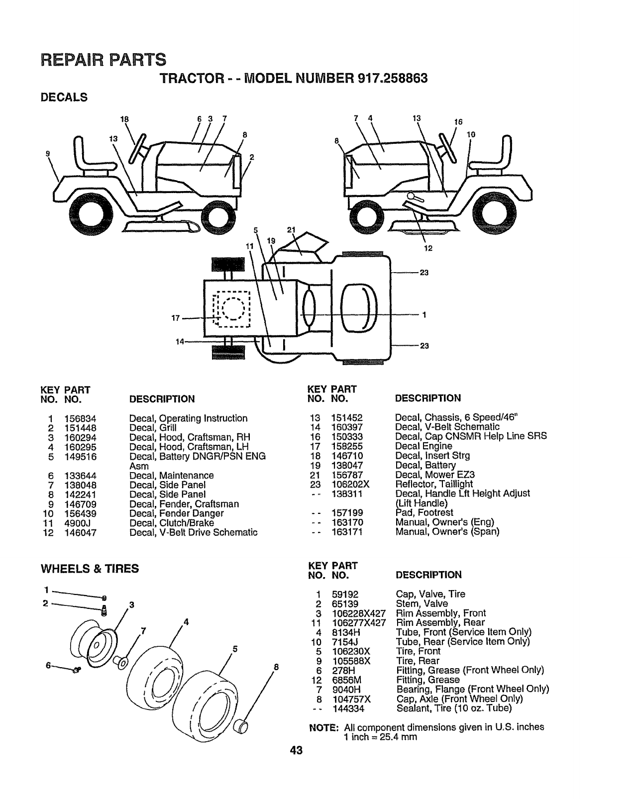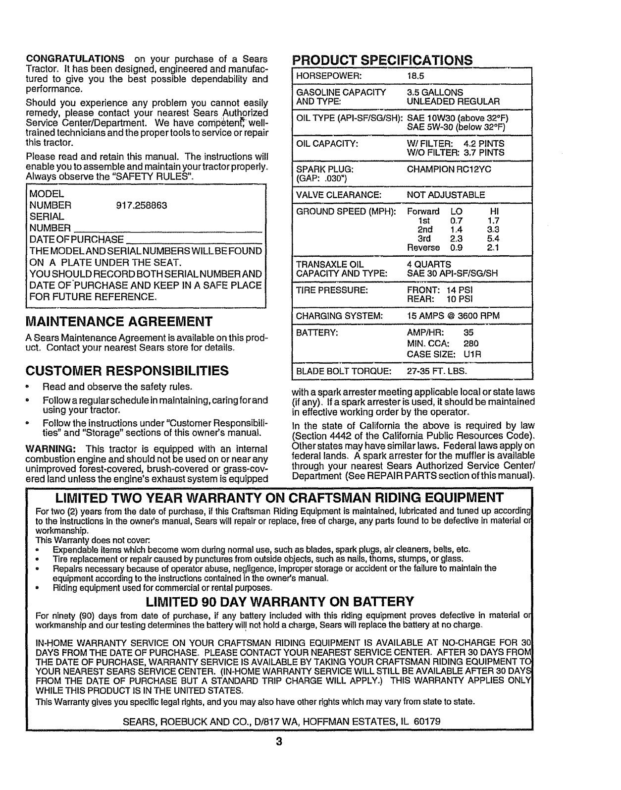 Craftsman 917258863 User Manual TRACTOR Manuals And Guides 1006754L