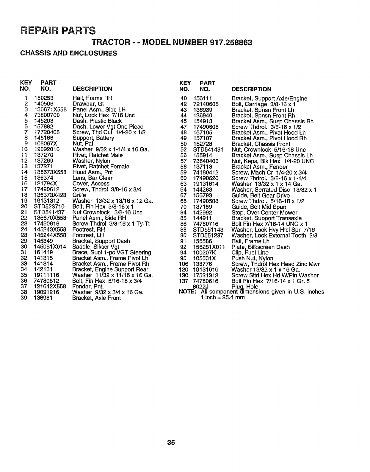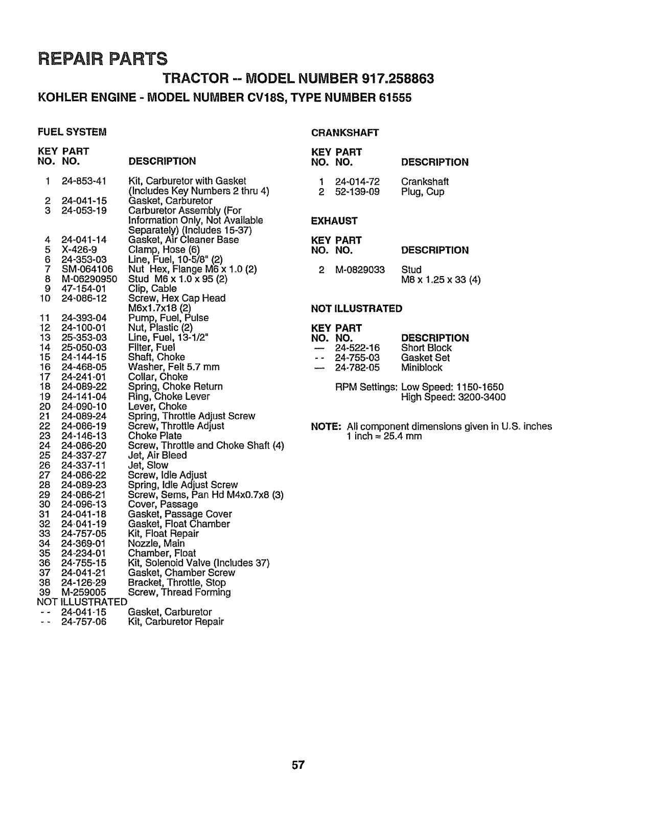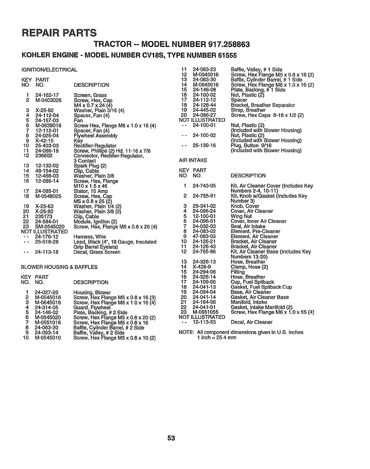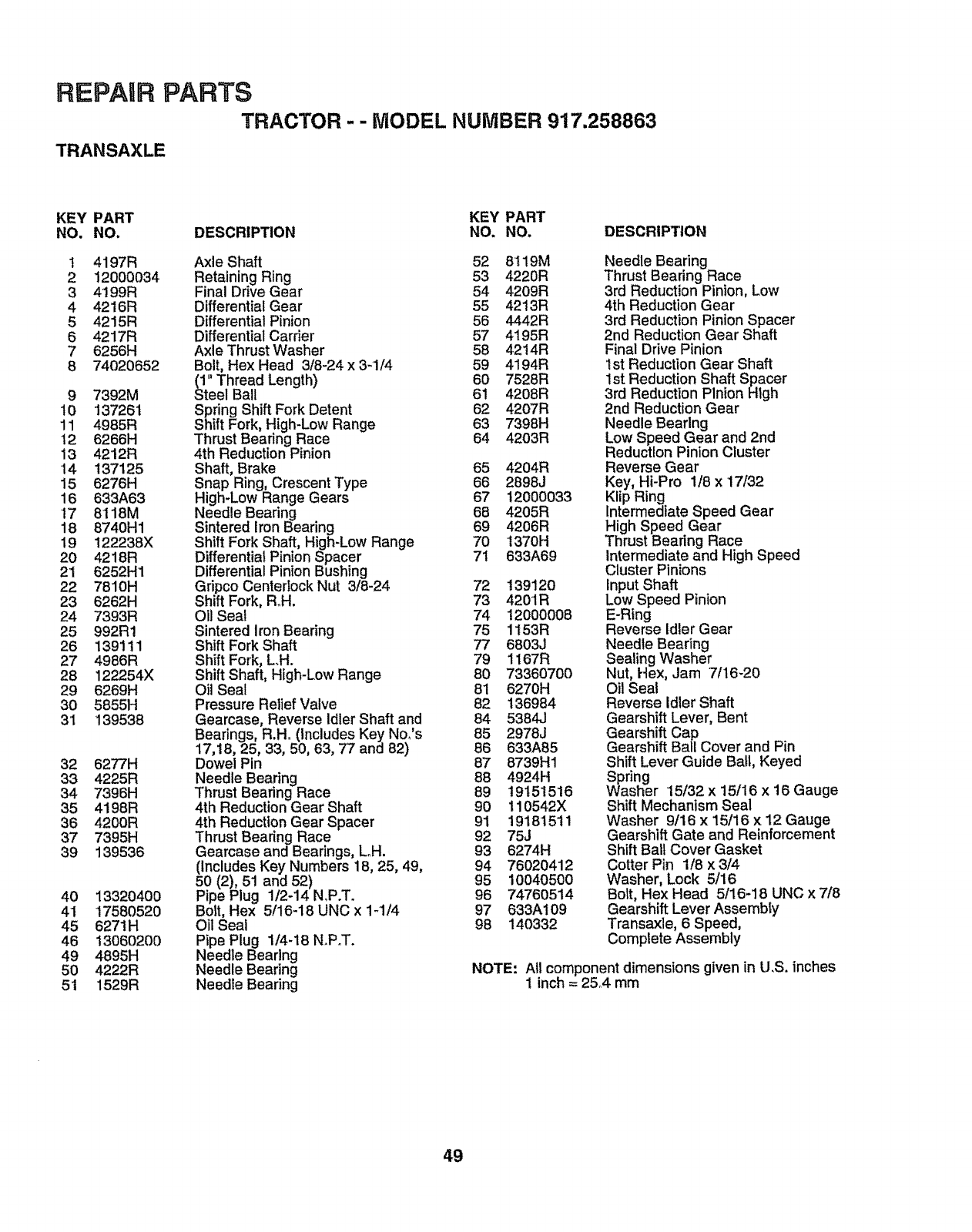 Craftsman 917258863 User Manual TRACTOR Manuals And Guides 1006754L