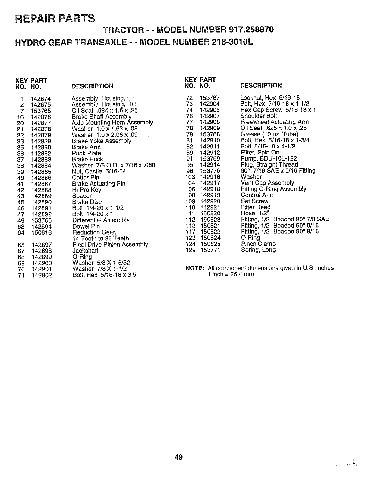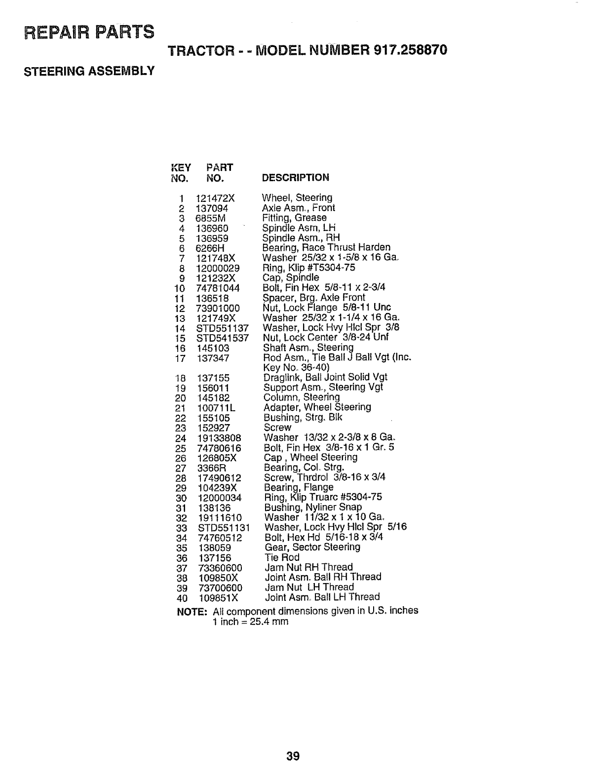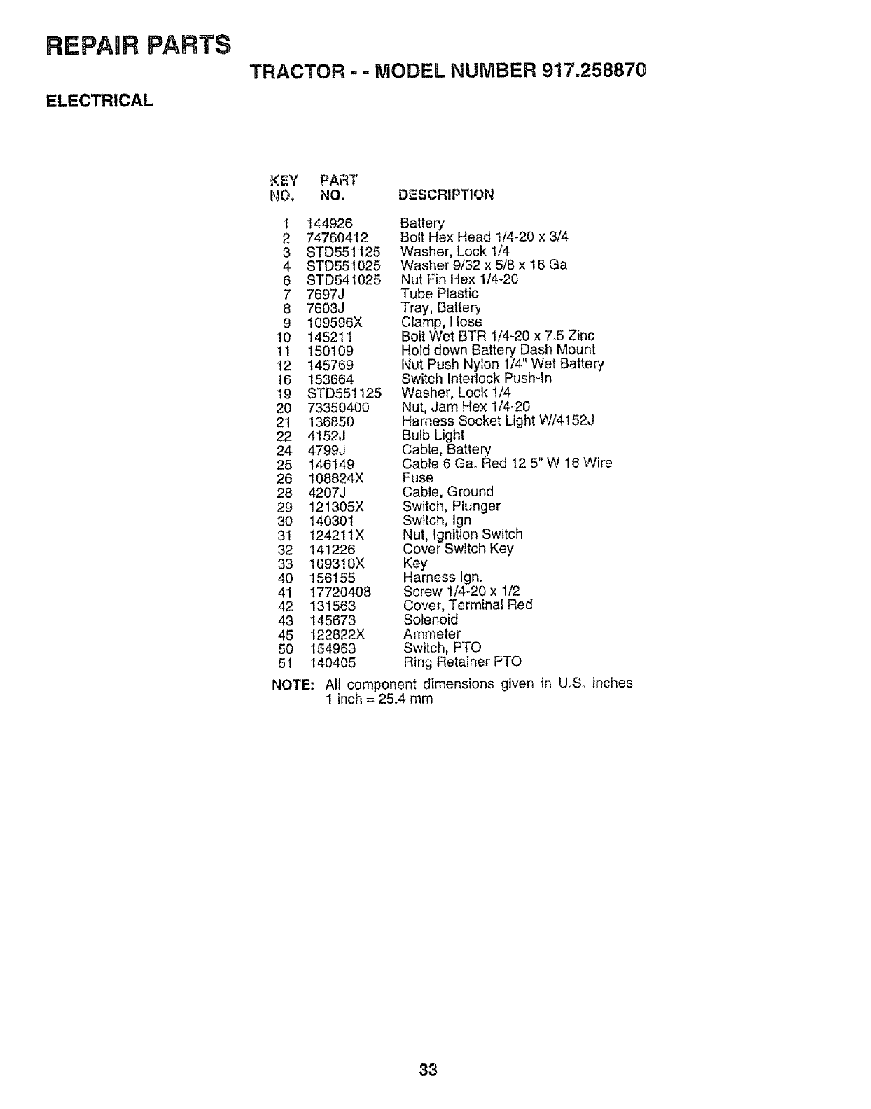WHEN ORDERING REPAIR PARTS, ALWAYS GIVE THE
