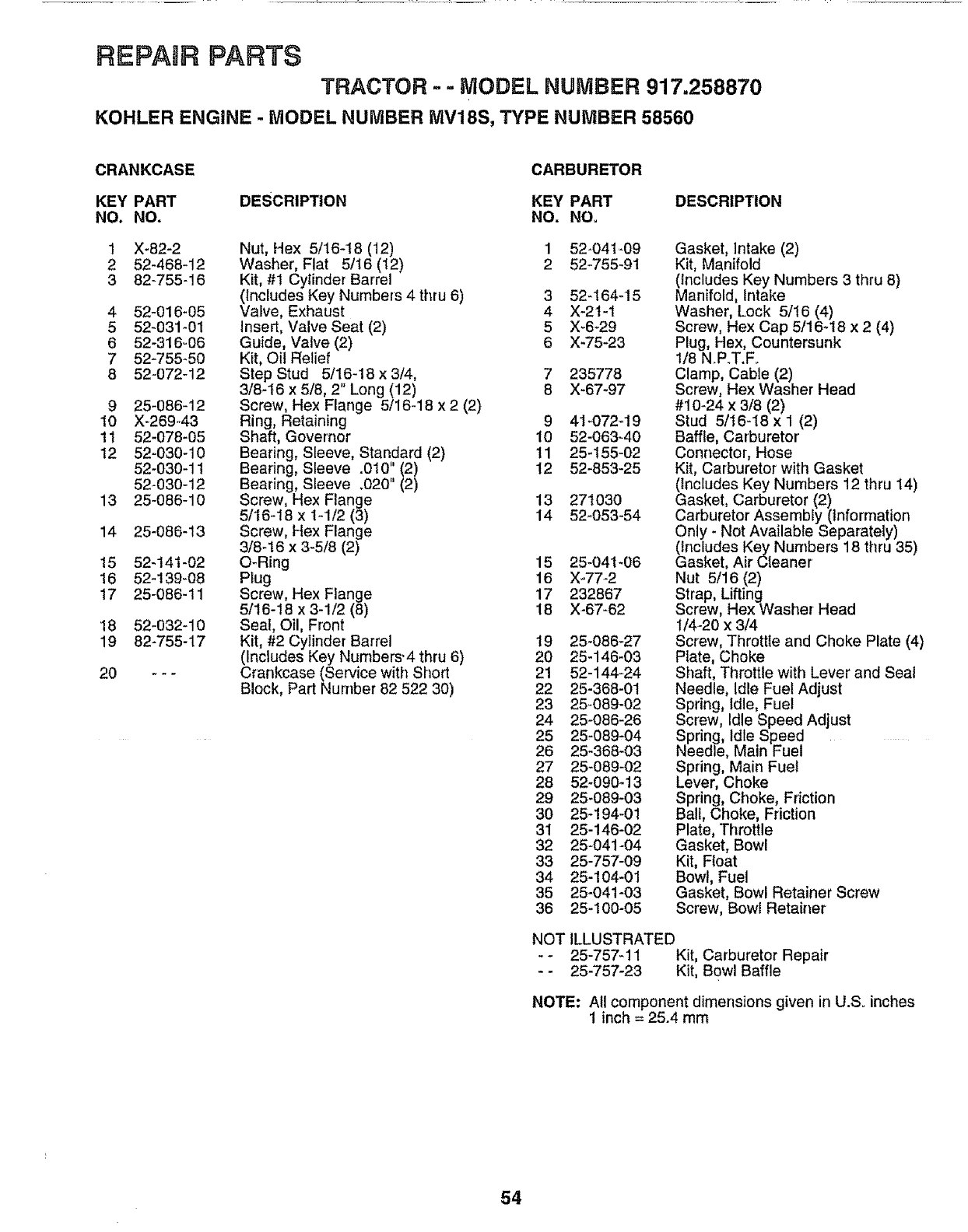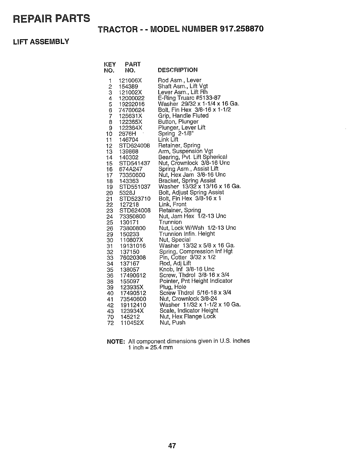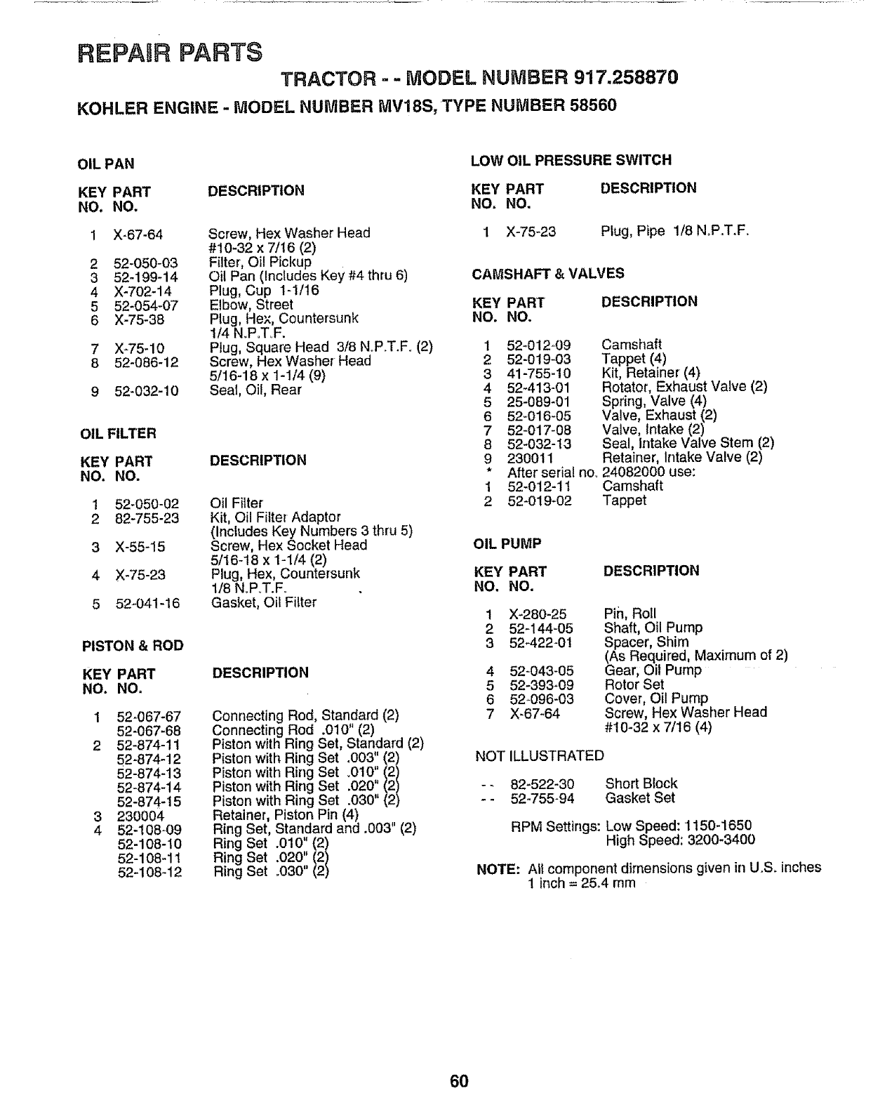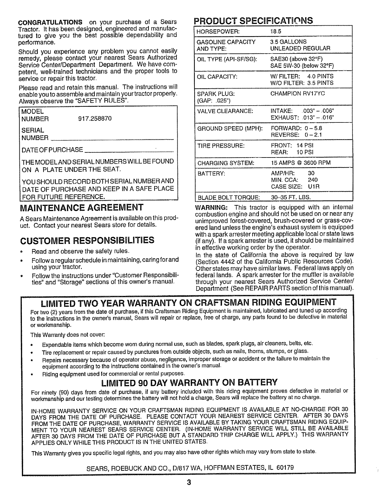 Craftsman 917258870 User Manual TRACTOR Manuals And Guides L0804437