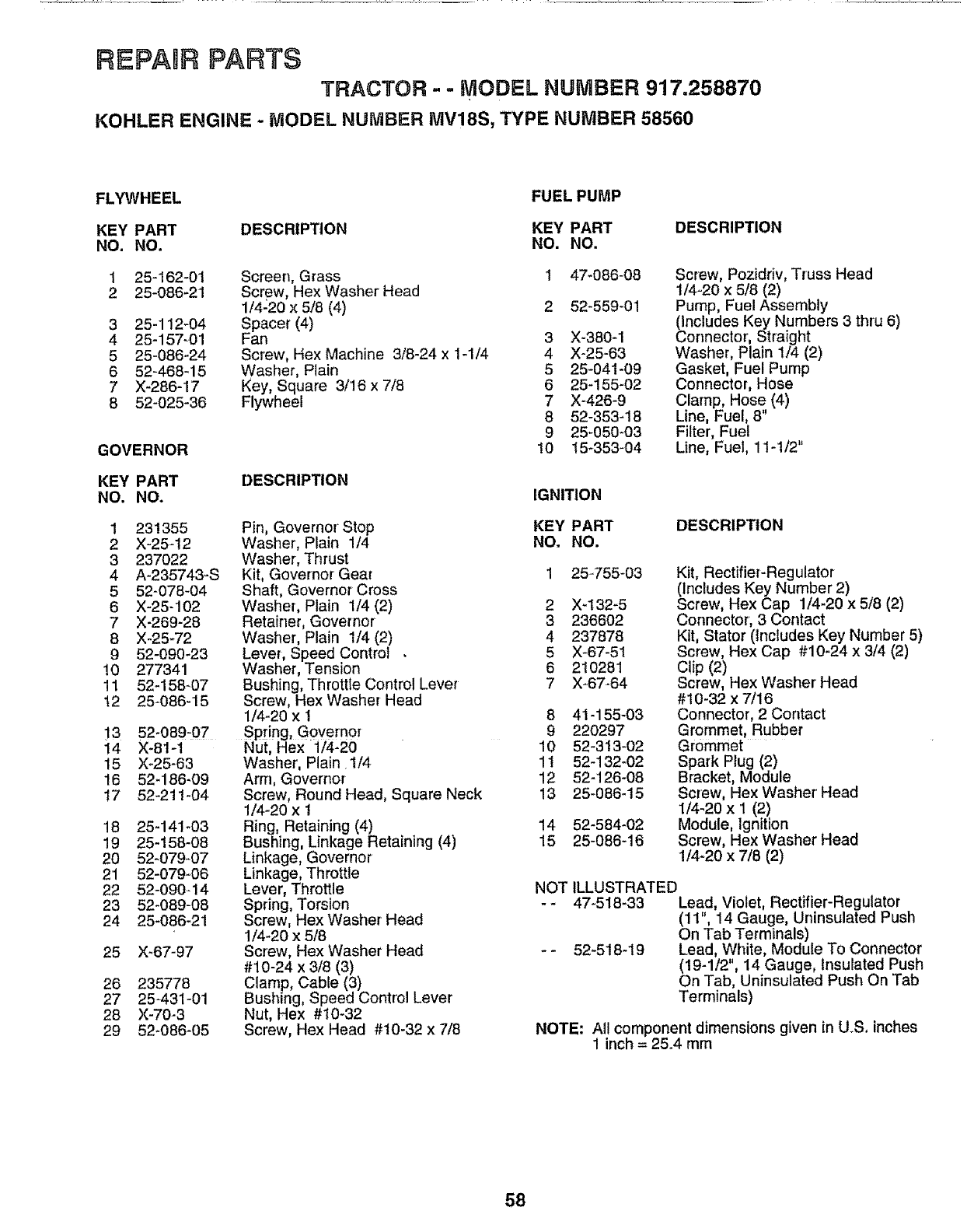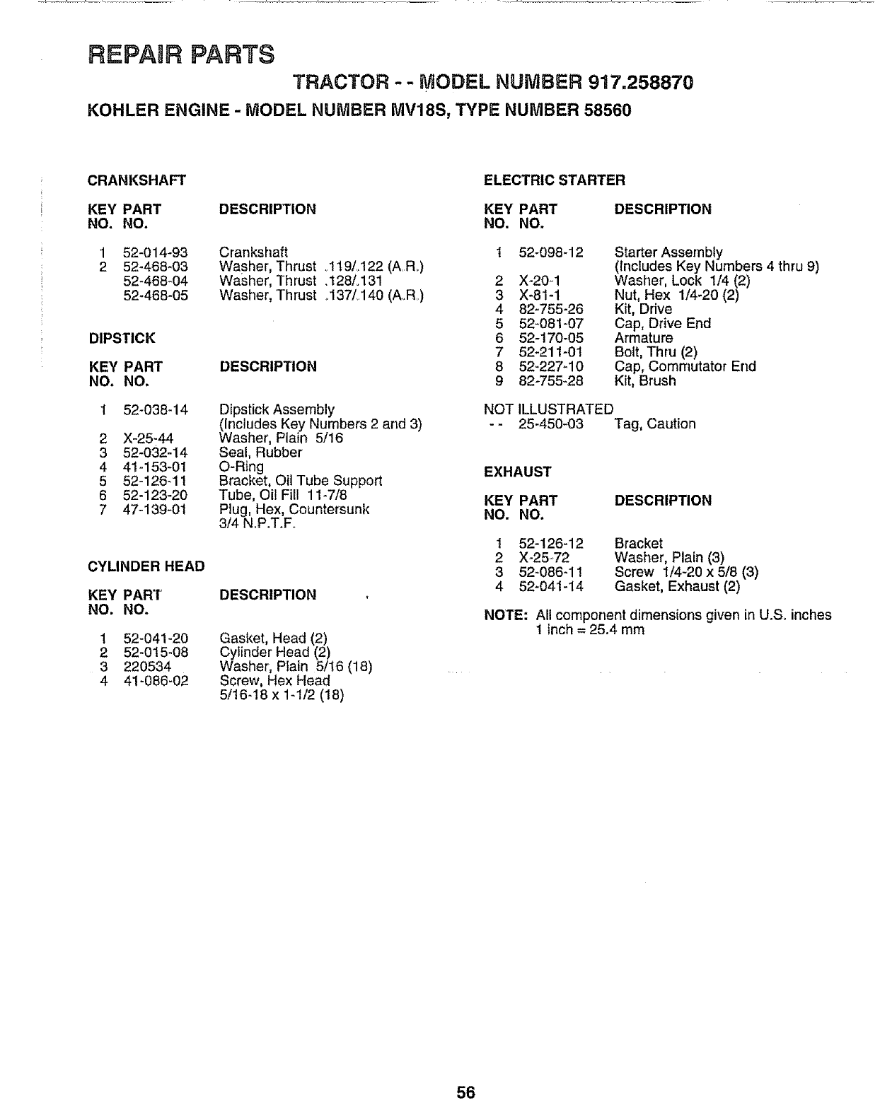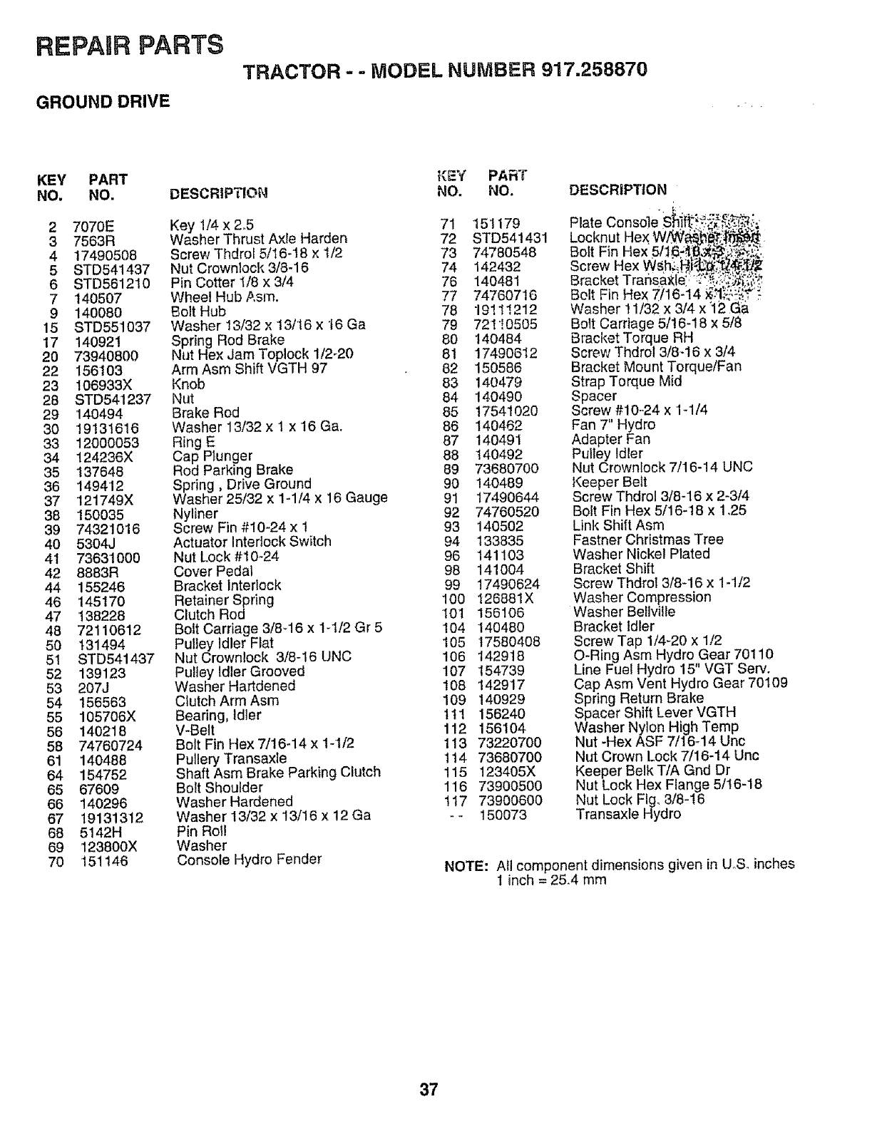 Craftsman 917258870 User Manual TRACTOR Manuals And Guides L0804437