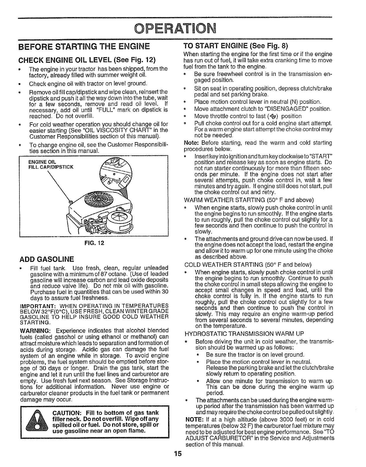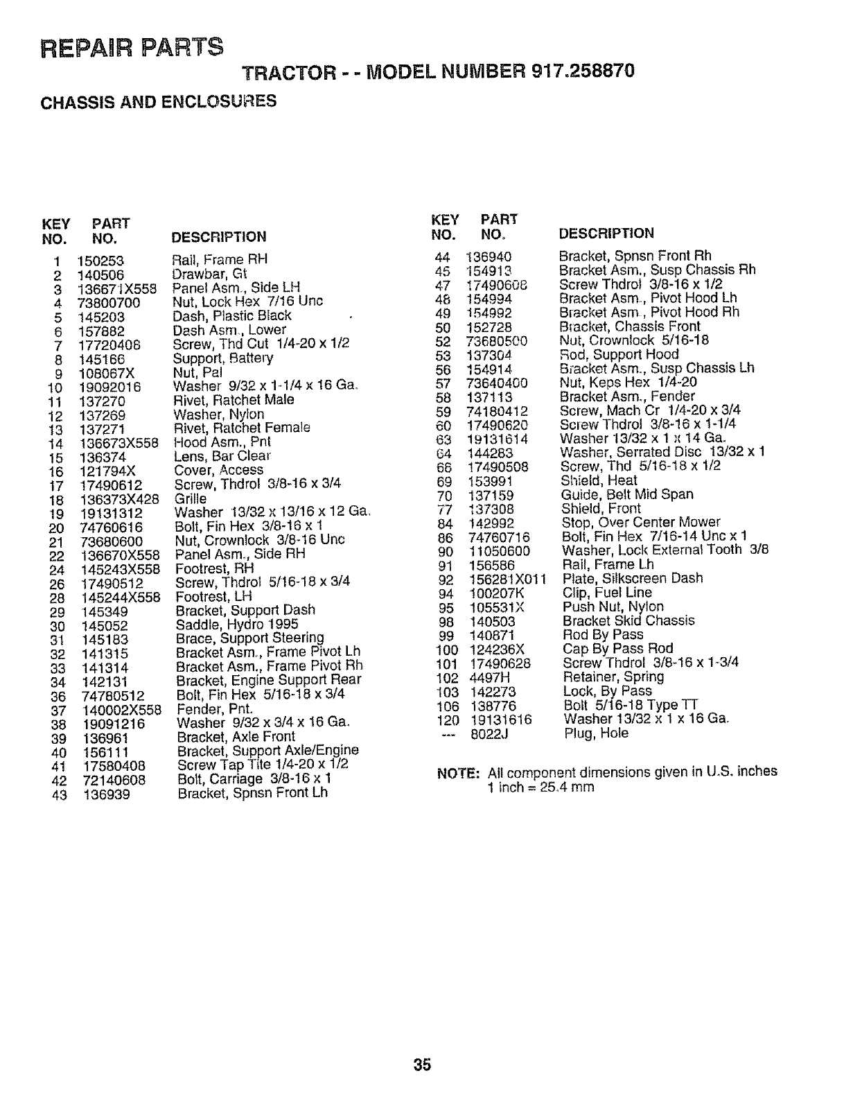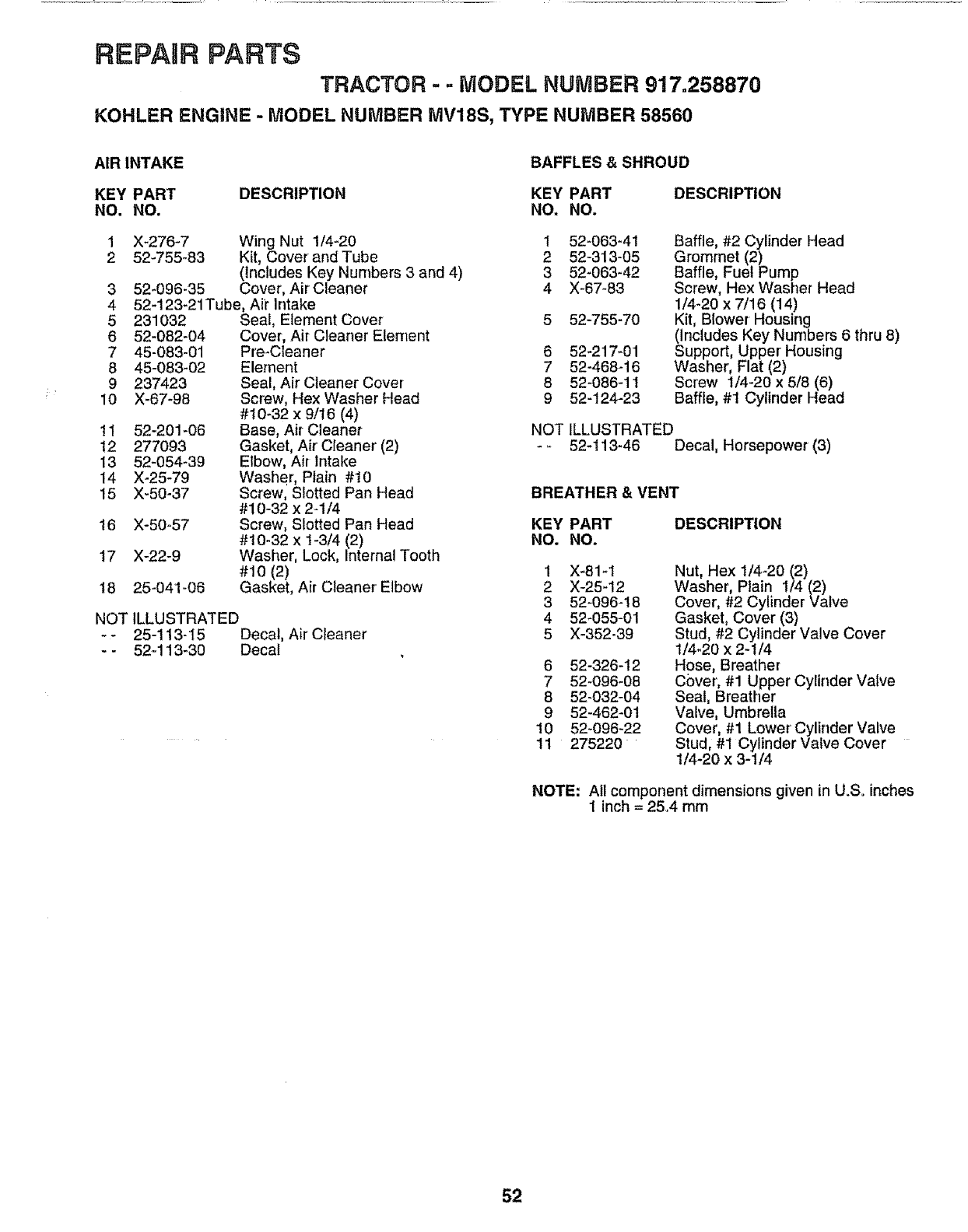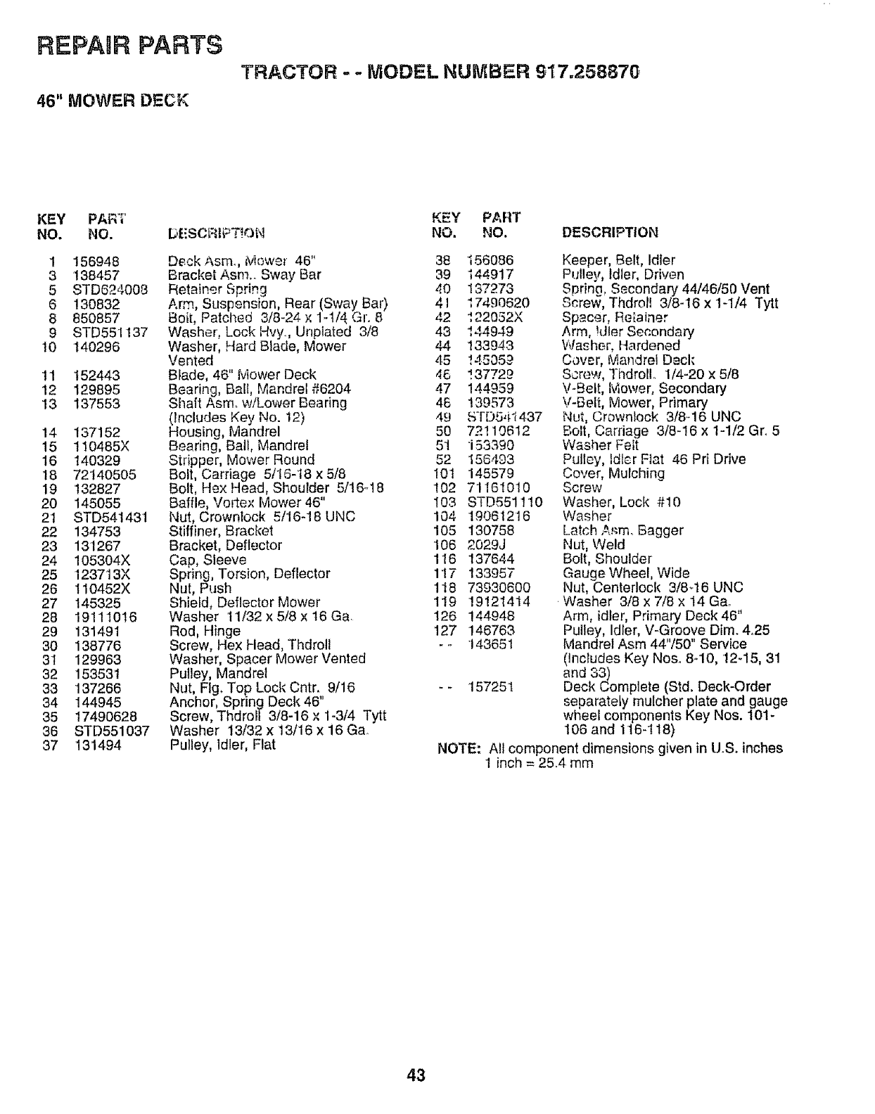 Craftsman 917258870 User Manual TRACTOR Manuals And Guides L0804437