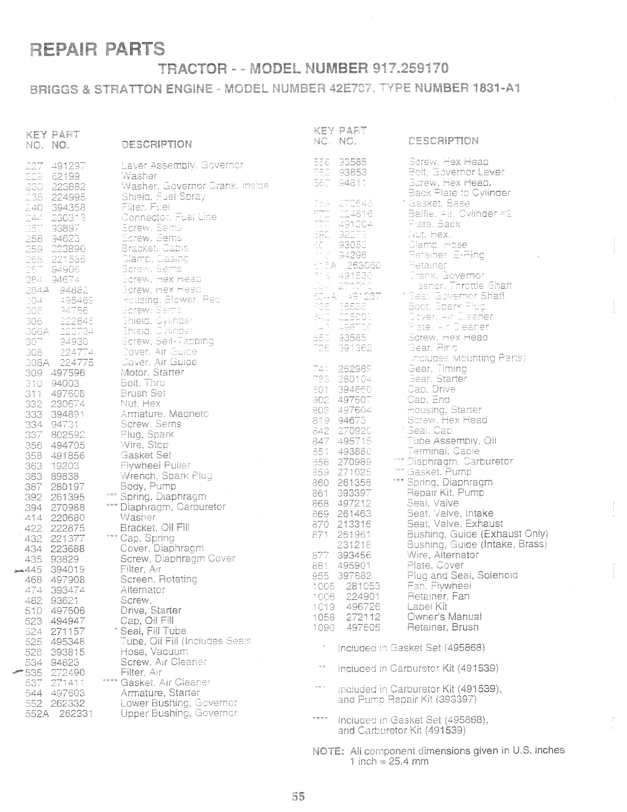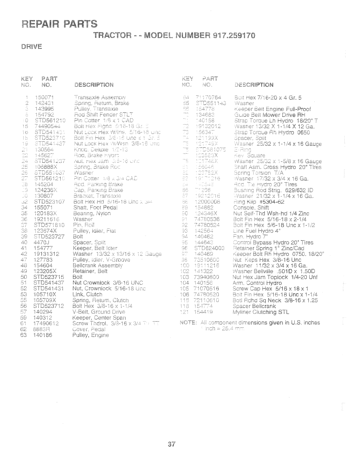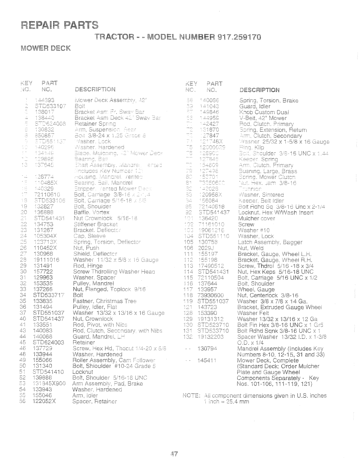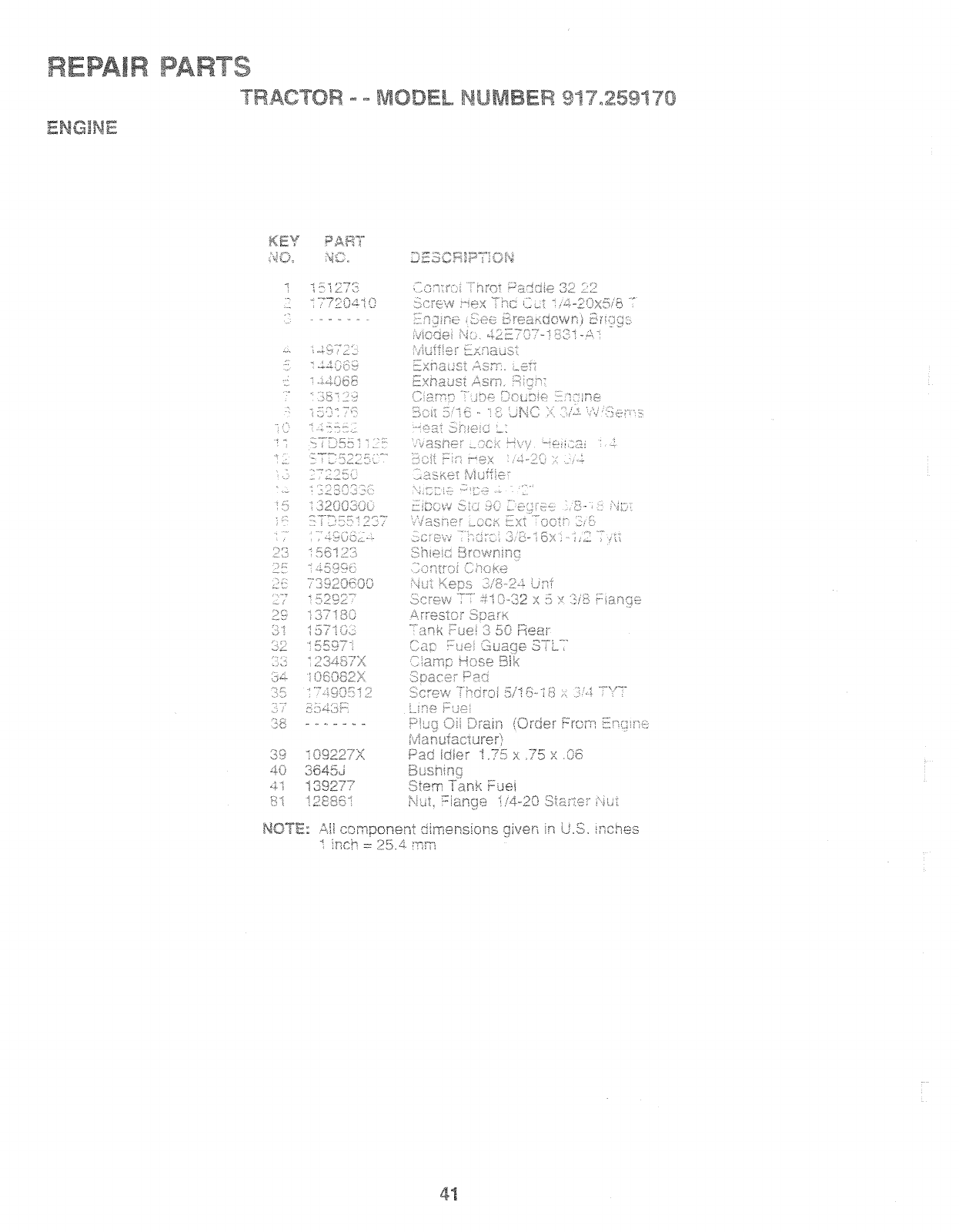 User Manual: Craftsman 917259170 917259170 CRAFTSMAN TRACTOR - Manuals and Guides View the owners manual for your CRAFTSMAN TRACTOR #917259170. Home:Lawn & Garden Parts:Craftsman Parts:Craftsman TRACTOR Manual