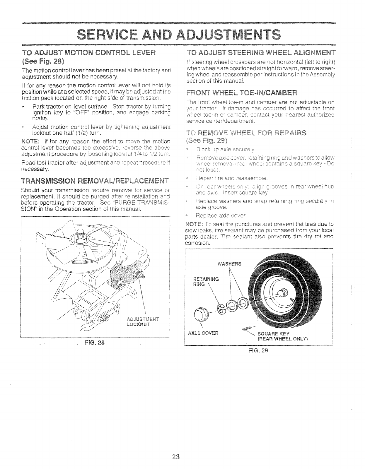 o Service and Adjustments