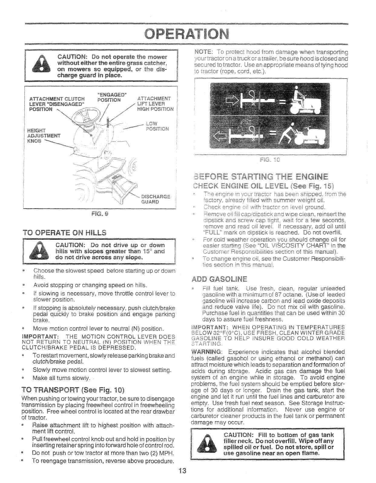 running. Allow engine to cooi before refueling. Do not