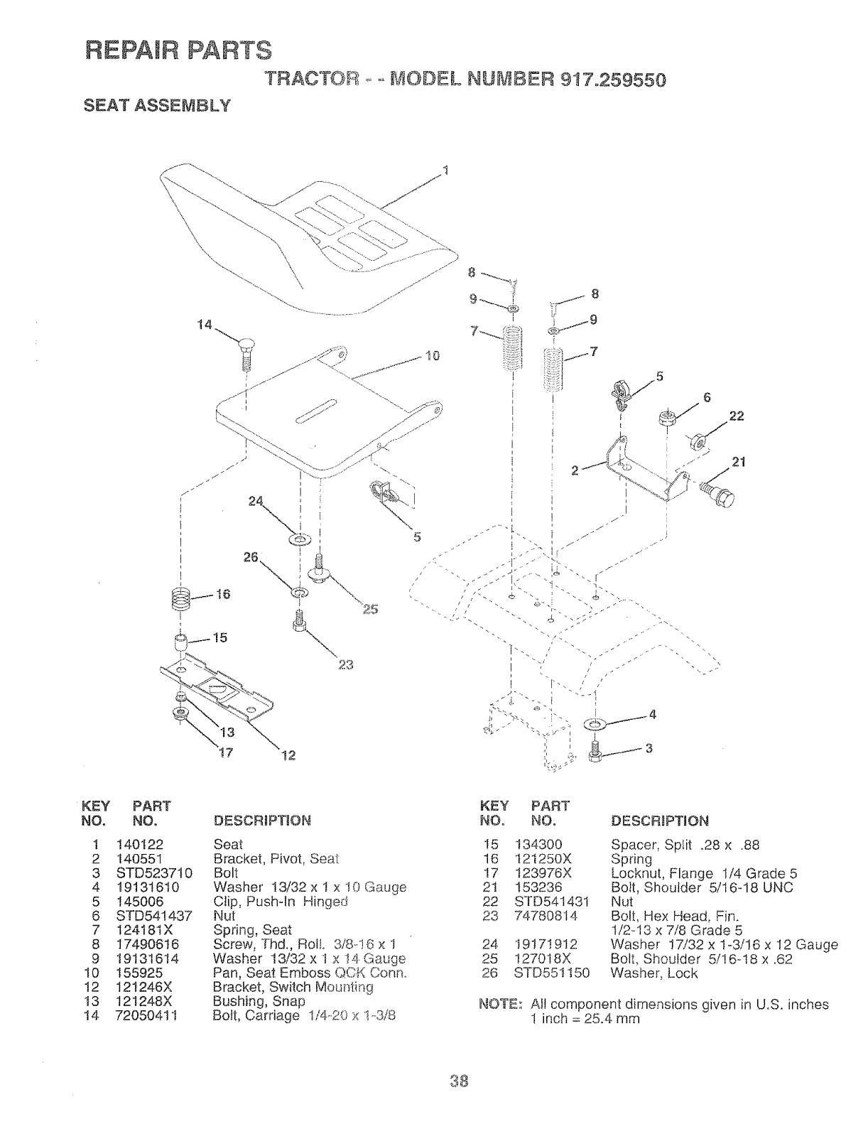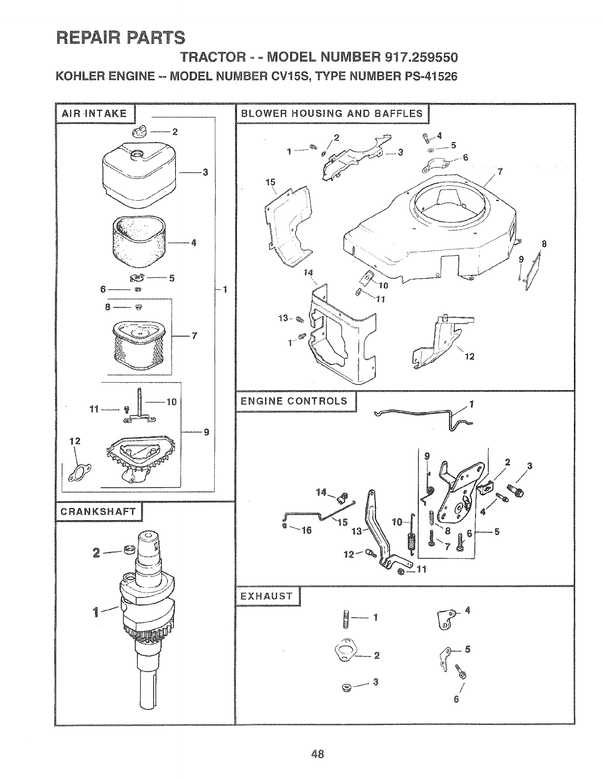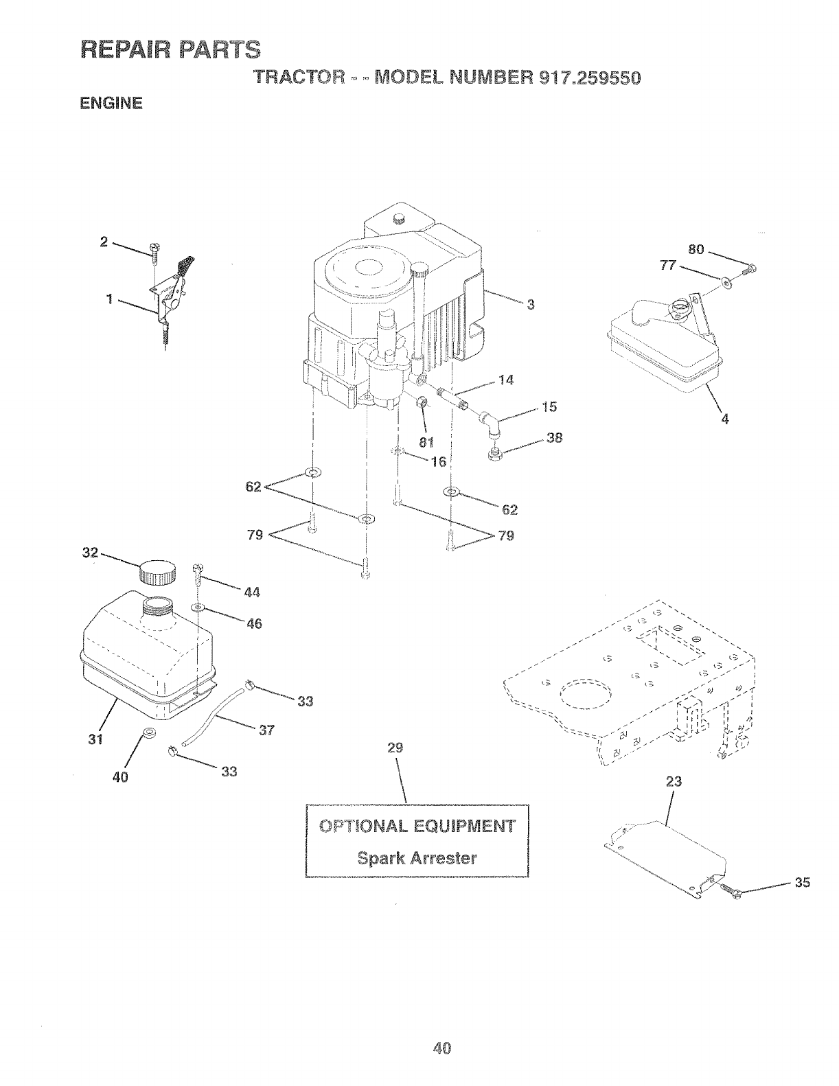 User Manual: Craftsman 917259550 917259550 CRAFTSMAN TRACTOR - Manuals and Guides View the owners manual for your CRAFTSMAN TRACTOR #917259550. Home:Lawn & Garden Parts:Craftsman Parts:Craftsman TRACTOR Manual