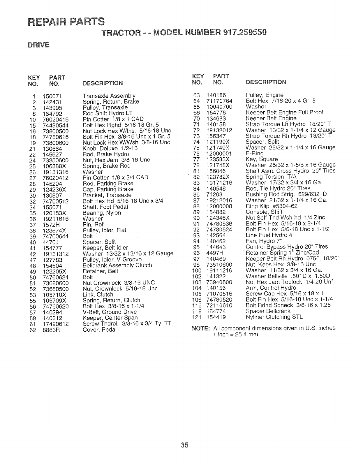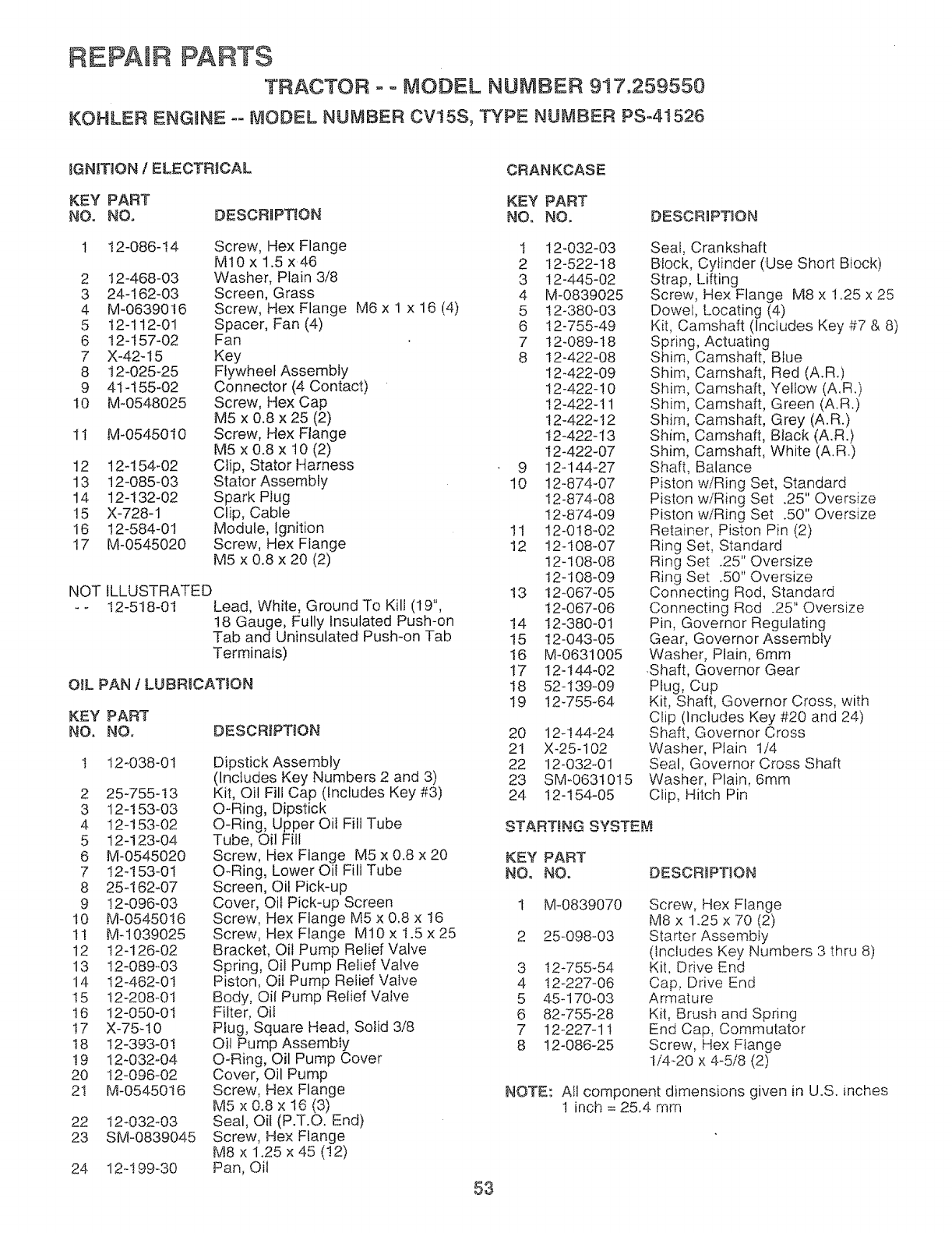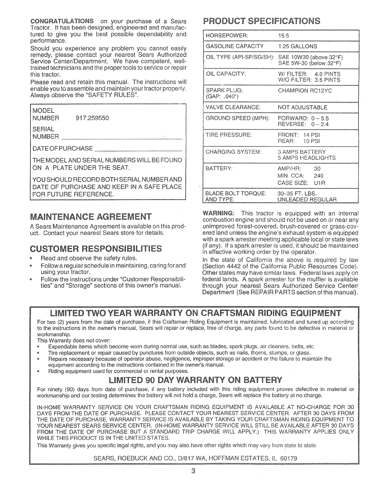 Craftsman 917259550 User Manual TRACTOR Manuals And Guides L0908374