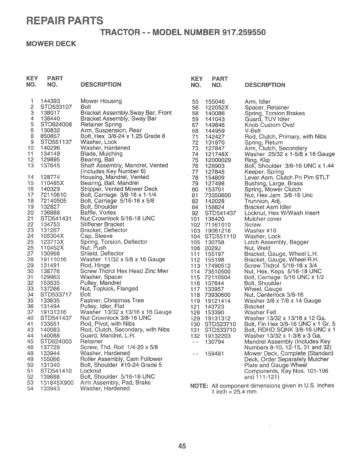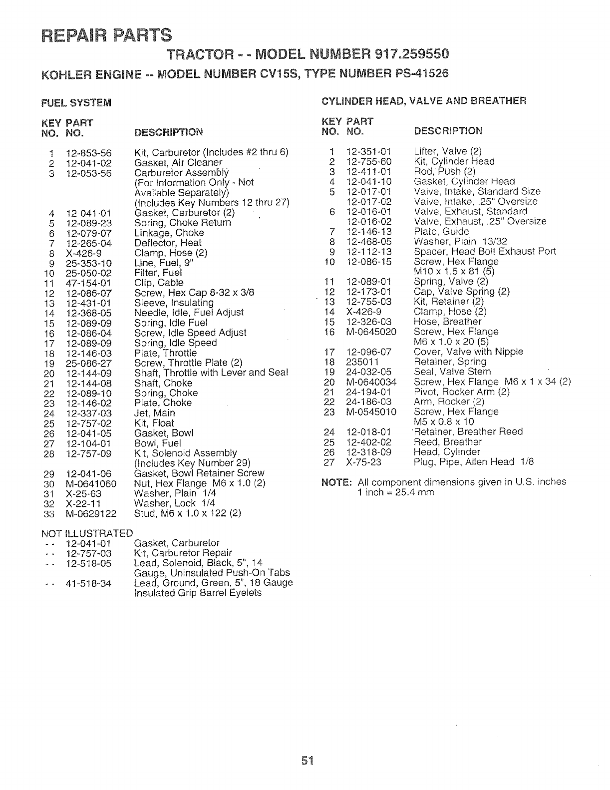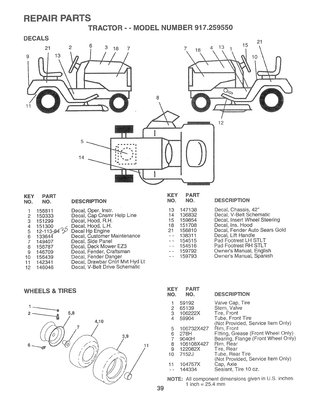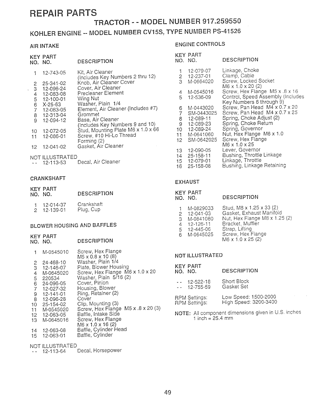 Craftsman 917259550 User Manual TRACTOR Manuals And Guides L0908374