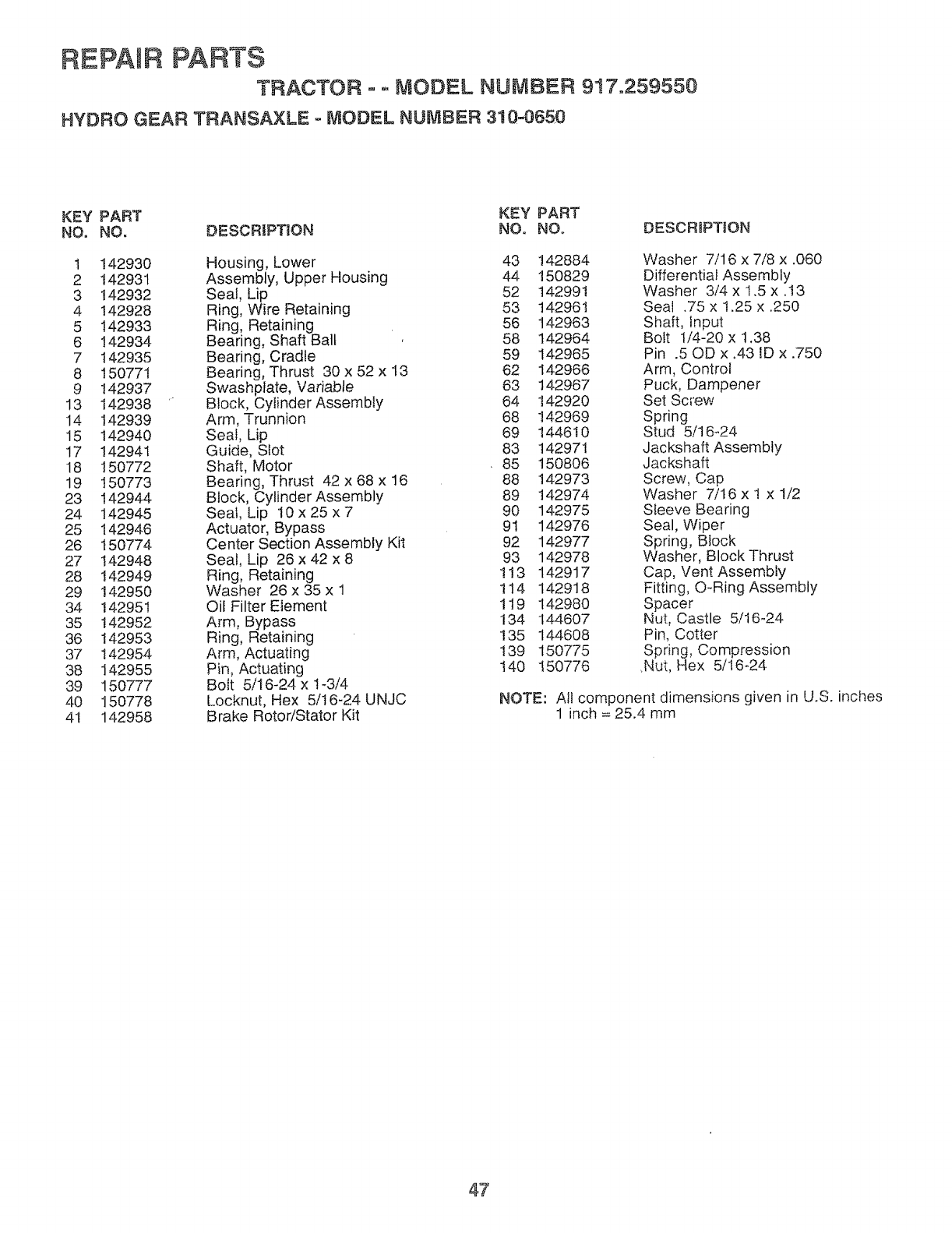 WHEN ORDERING REPAIR PARTS, ALWAYS GIVE THE