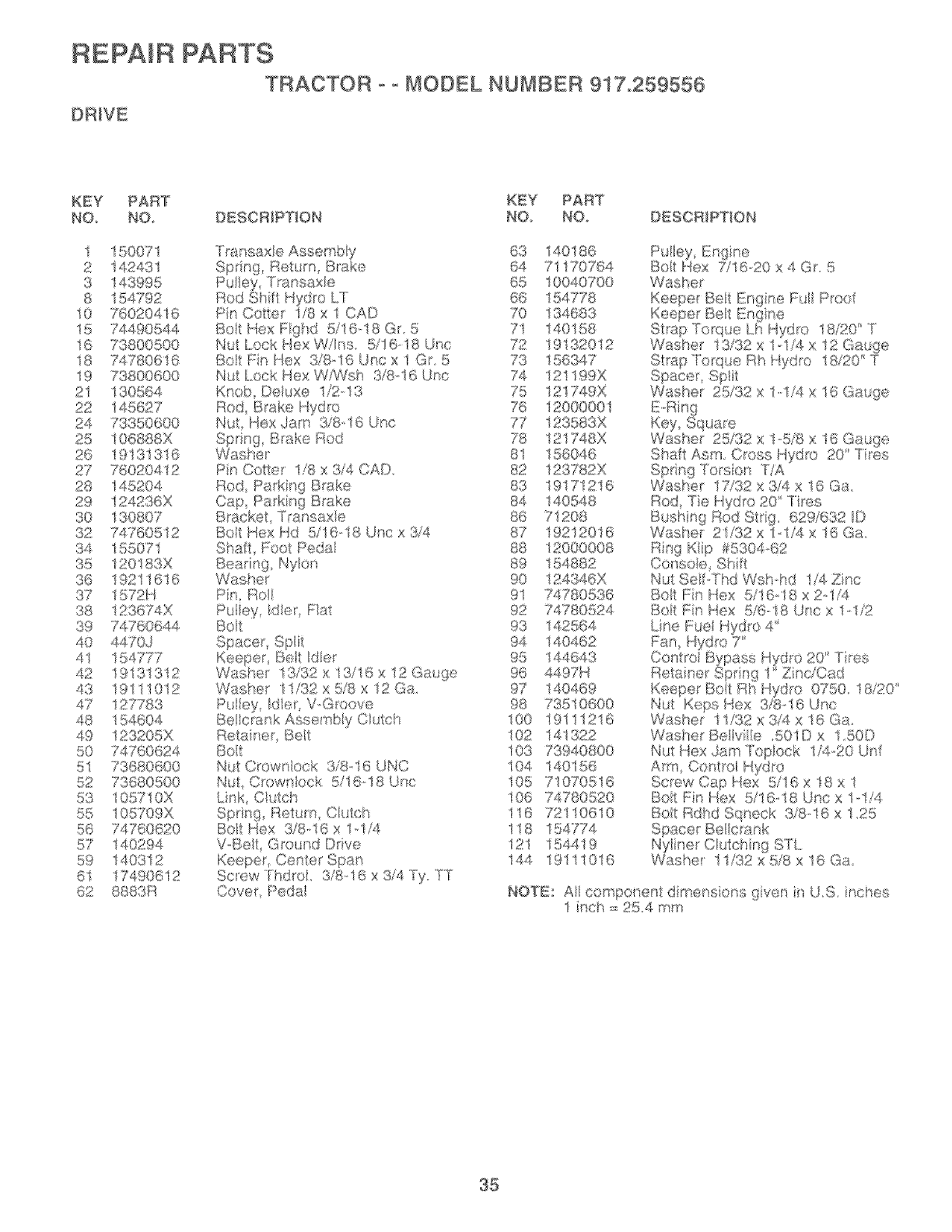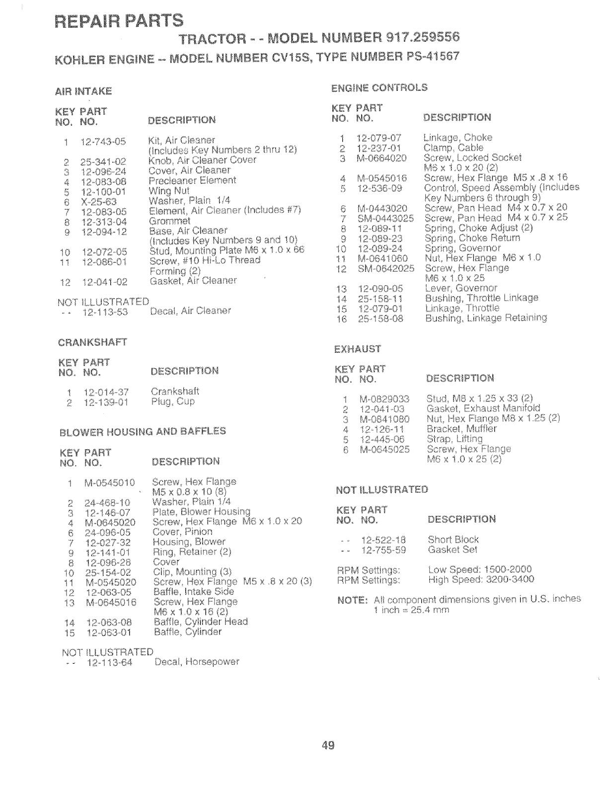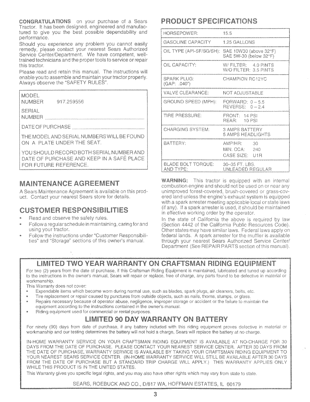 Craftsman 917259556 User Manual TRACTOR Manuals And Guides L0703276