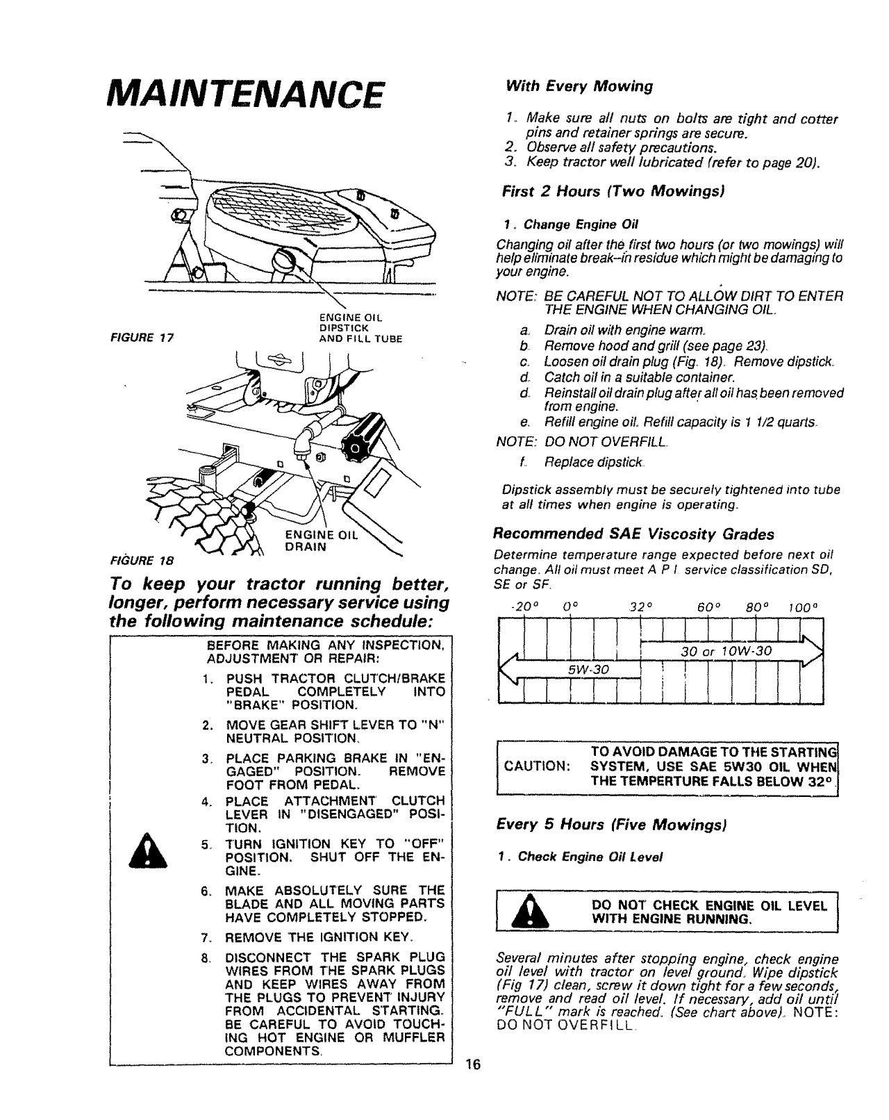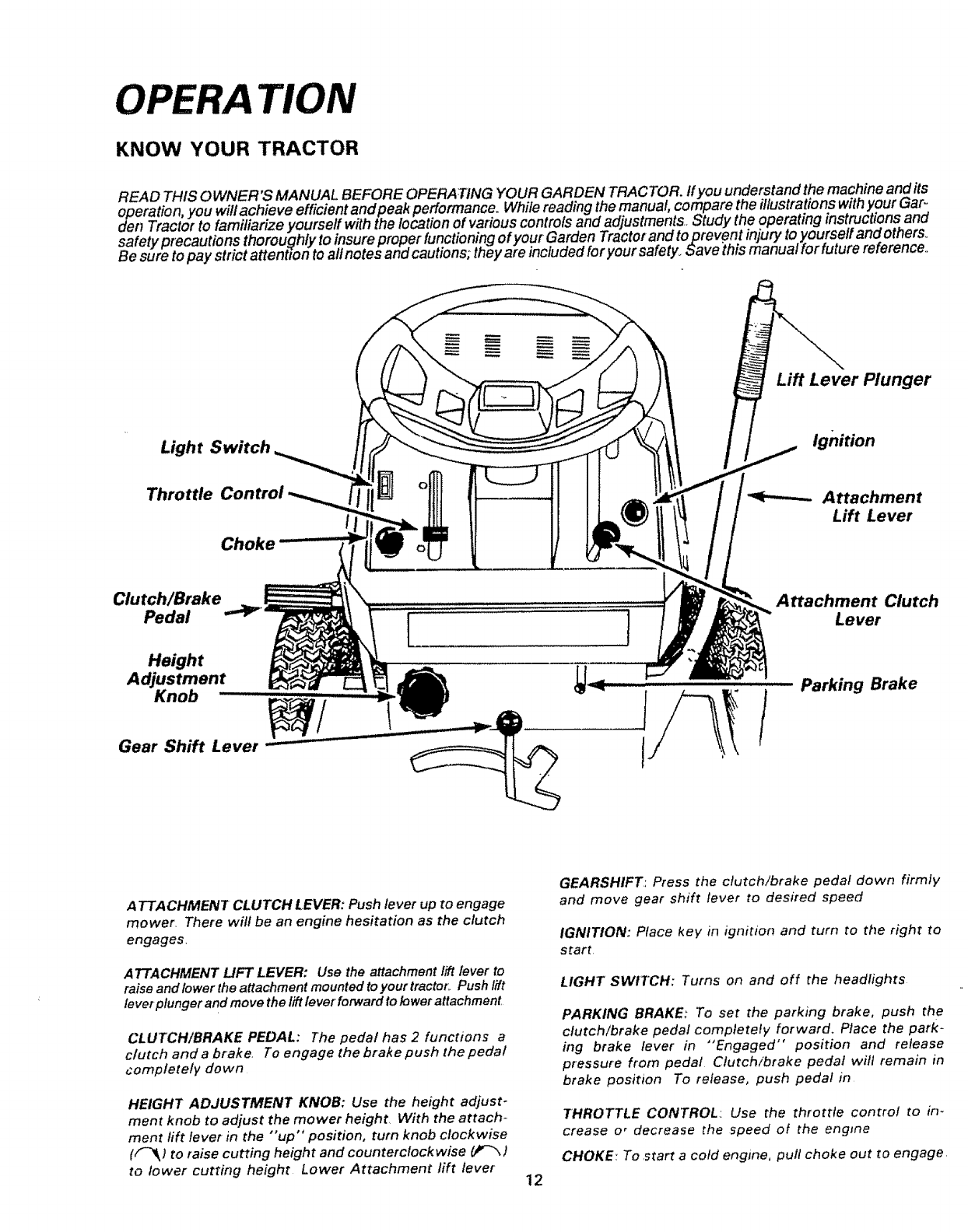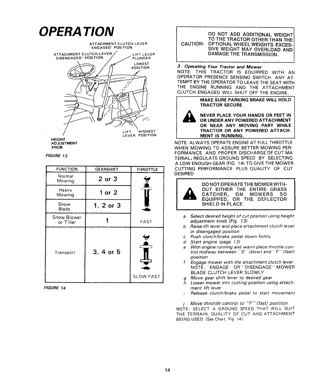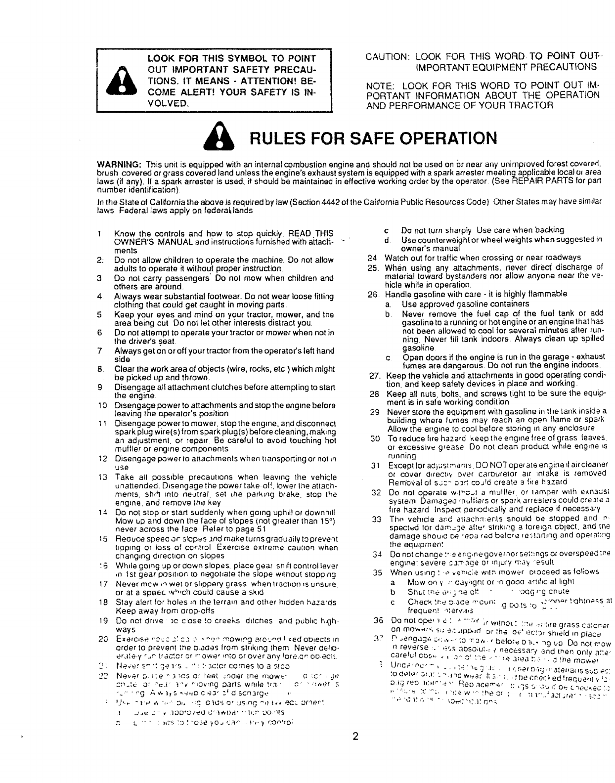 6 Do not attempt to operate your tractor or mower when not in