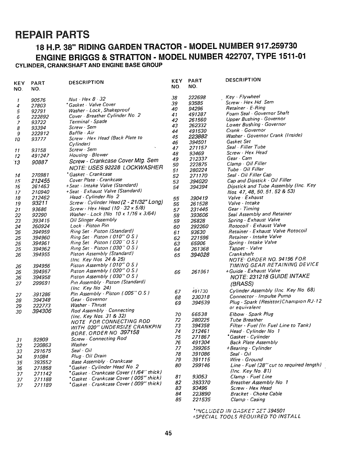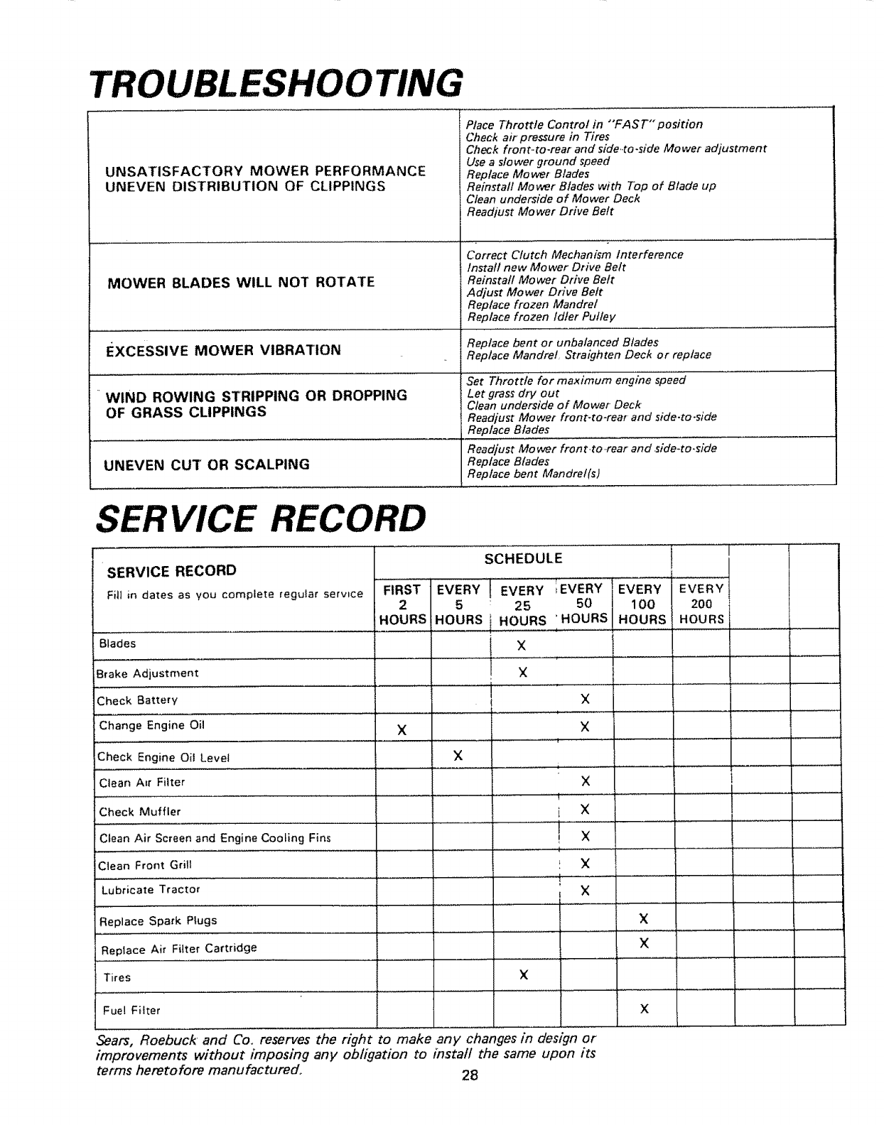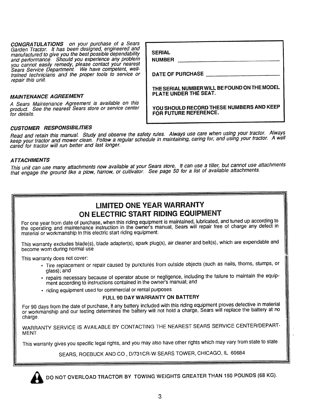 All parts listed herein may be ordered from any Sears, Roebuck and Co.
