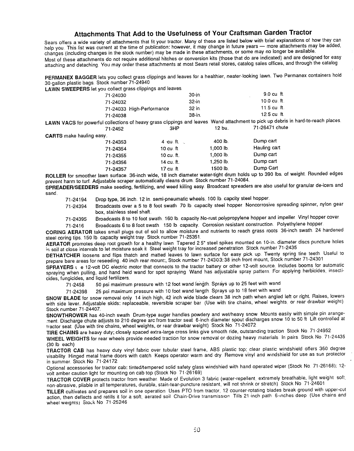 tractor seat. (Use with tire chains, wheel weights, or rear drawbar weight) Stock No, 71-24072