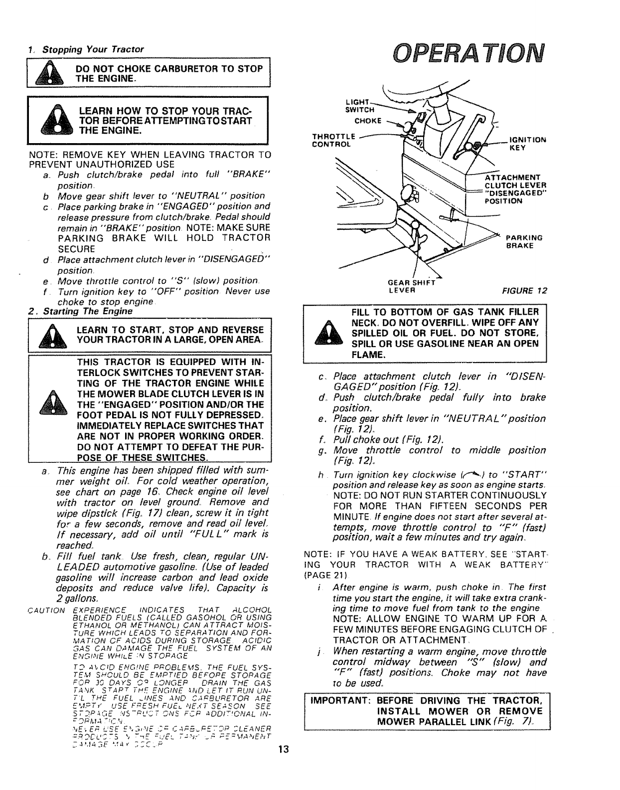 9 Disengage all attachment ctutches before attempting to start