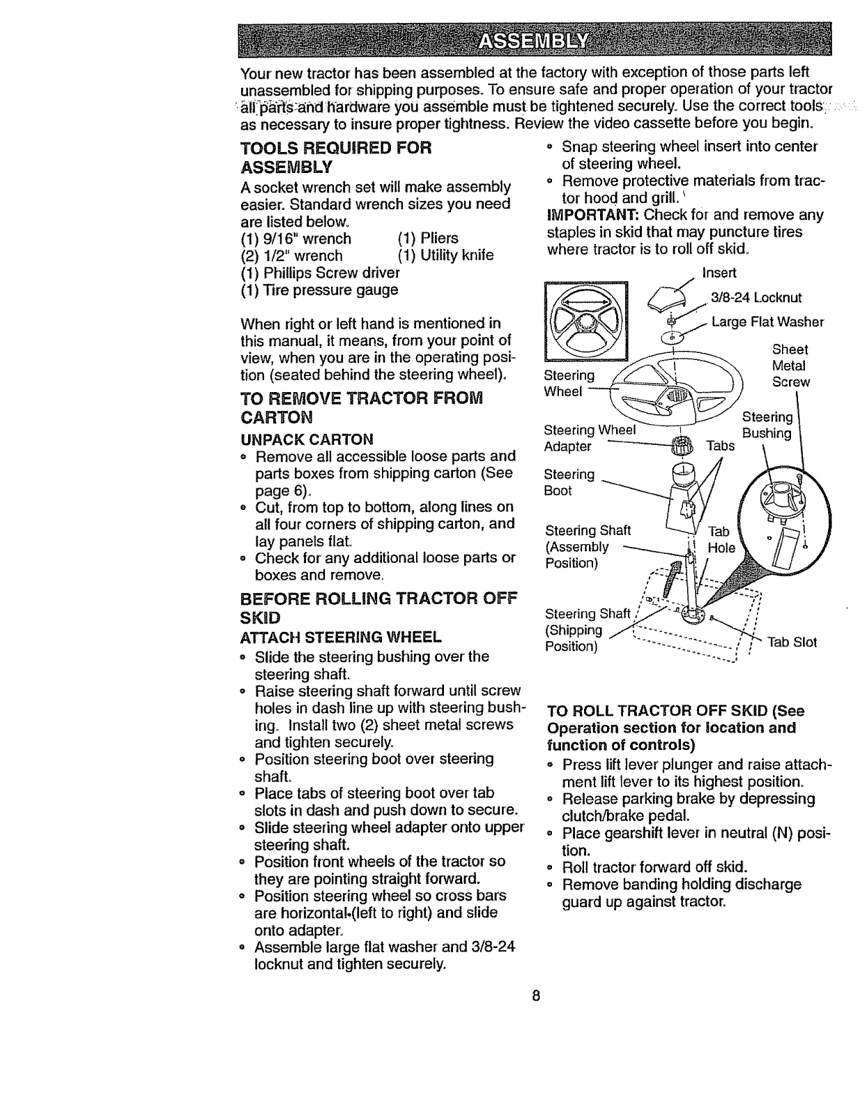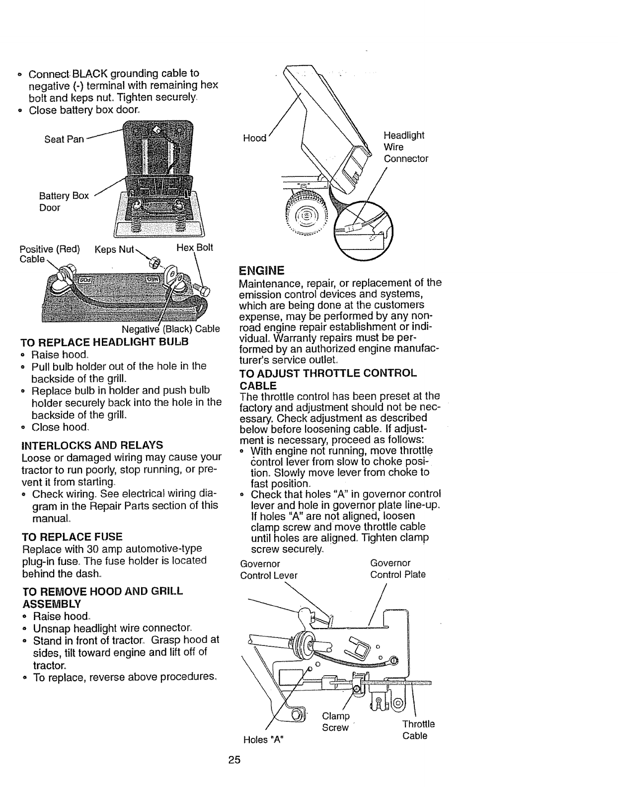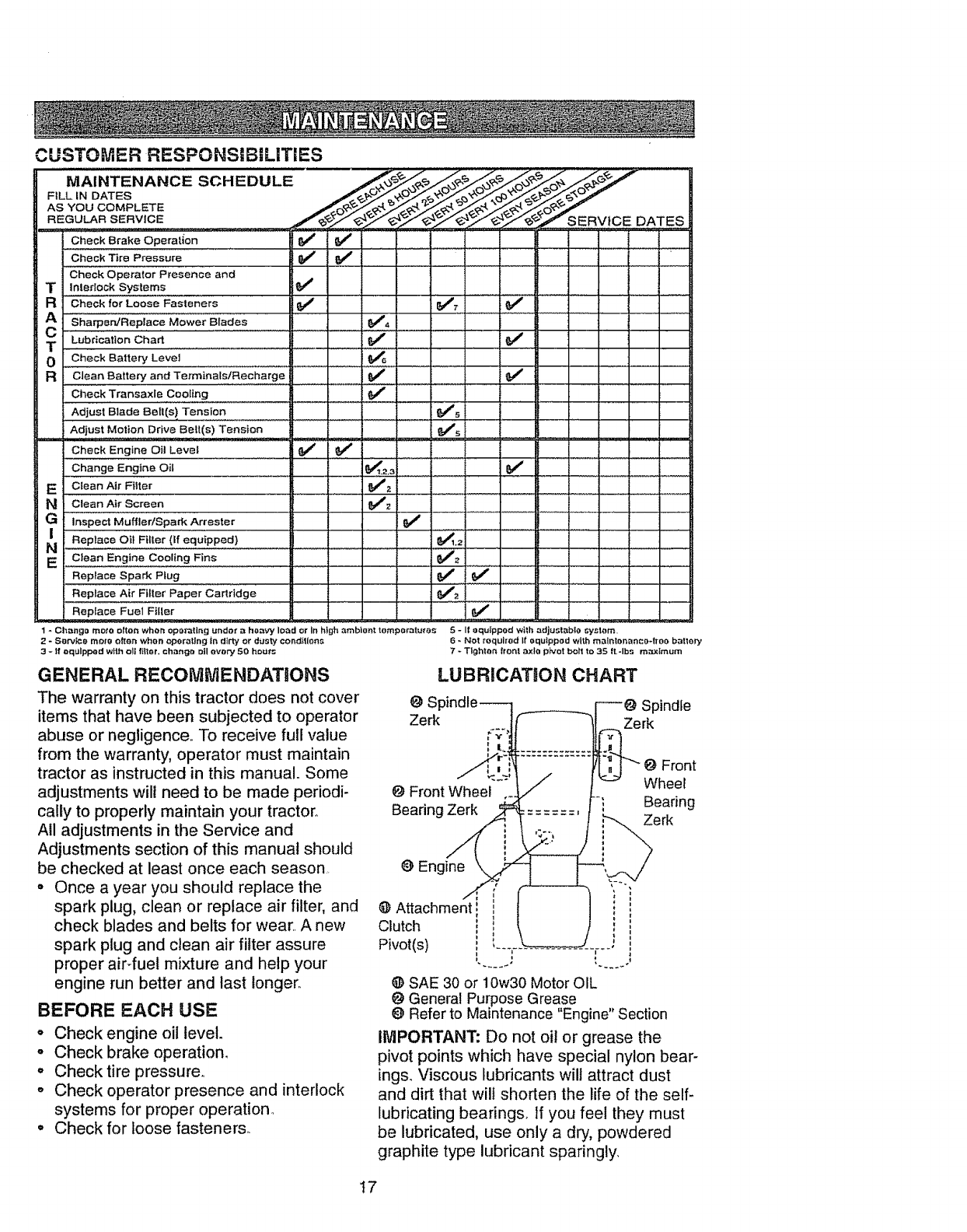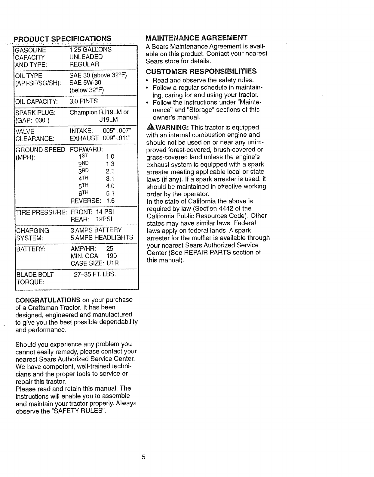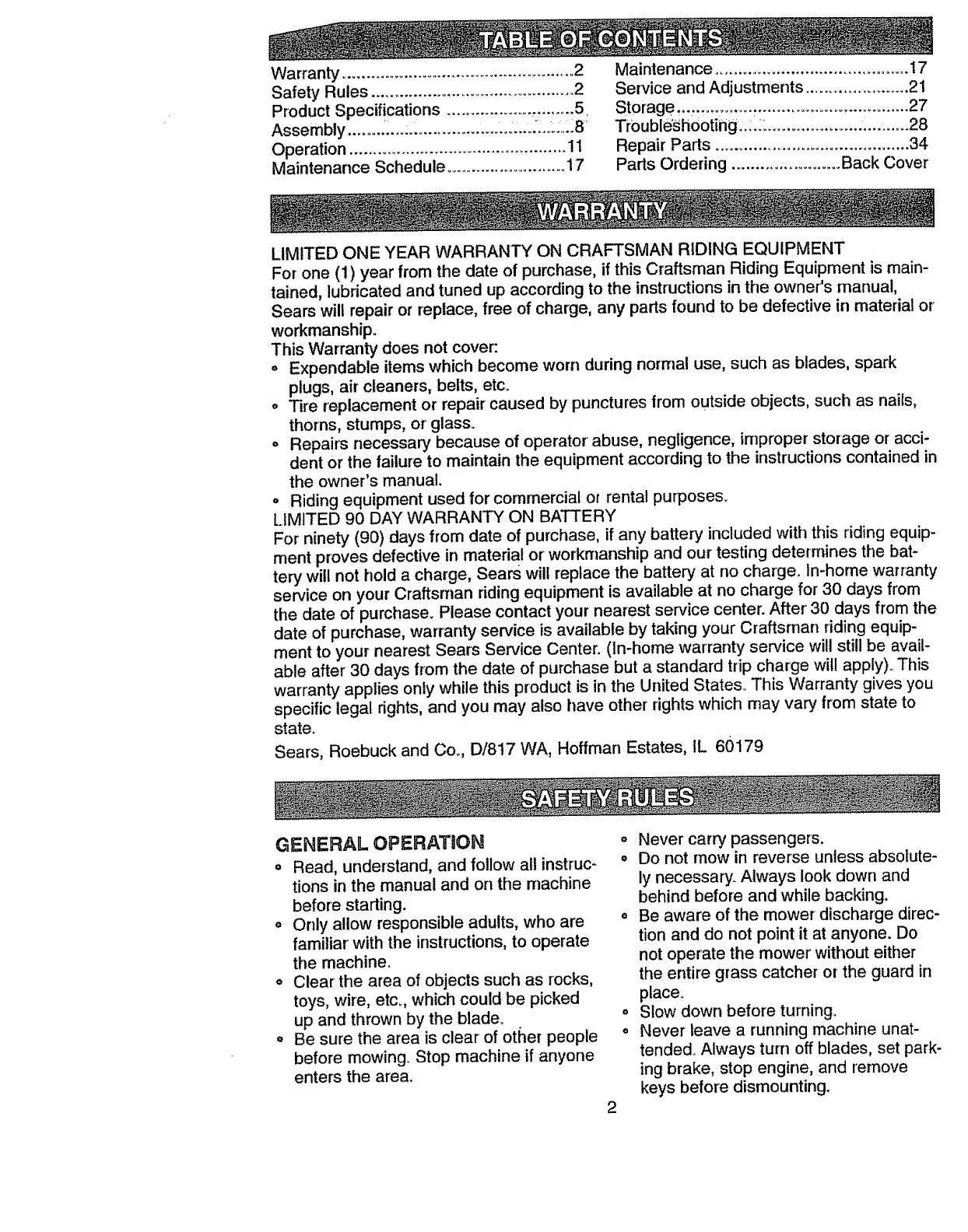 date of purchase, warranty service is available by taking your Craftsman riding equip-