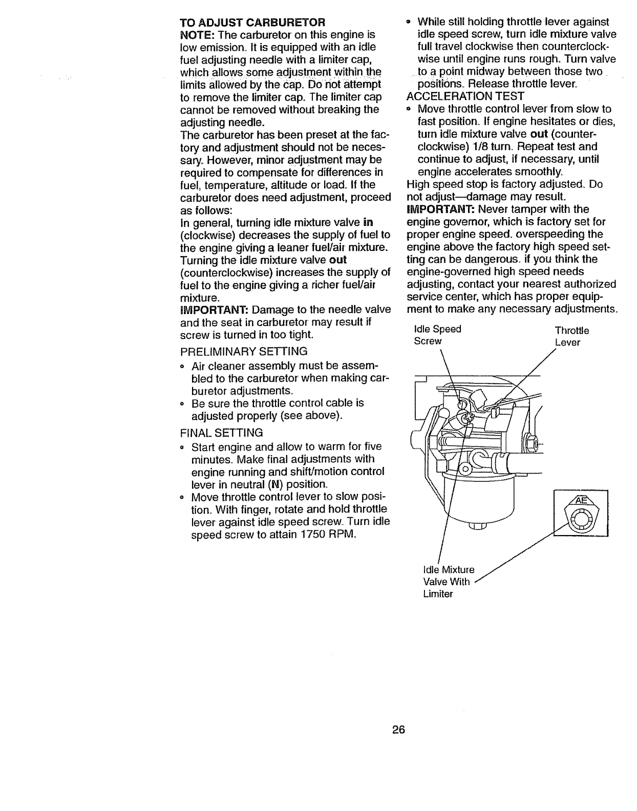 tained, lubricated and tuned up according to the instructions in the owner's manual,