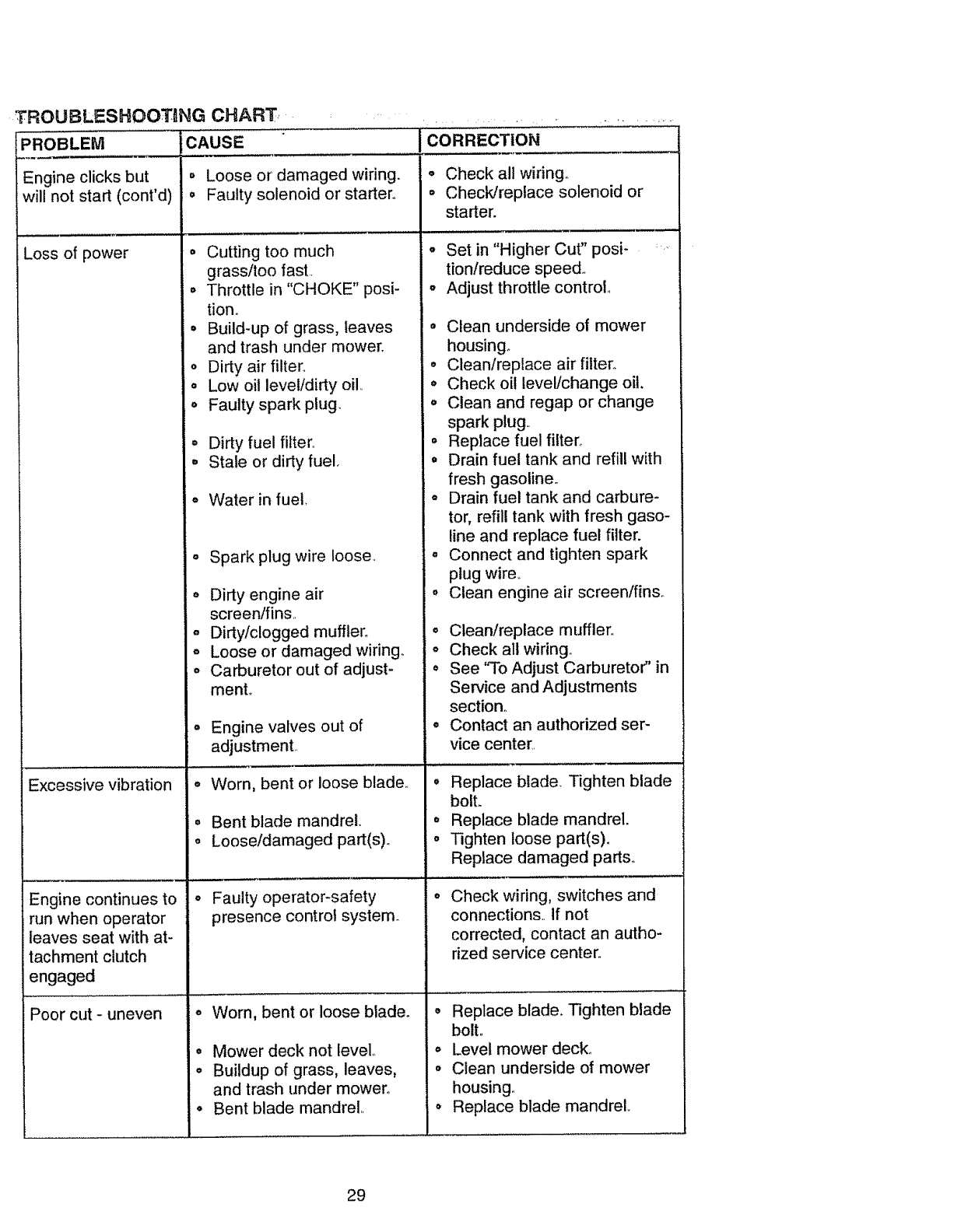 o Repairs necessary because of operator' abuse, negligence, tmproper storage or acci-