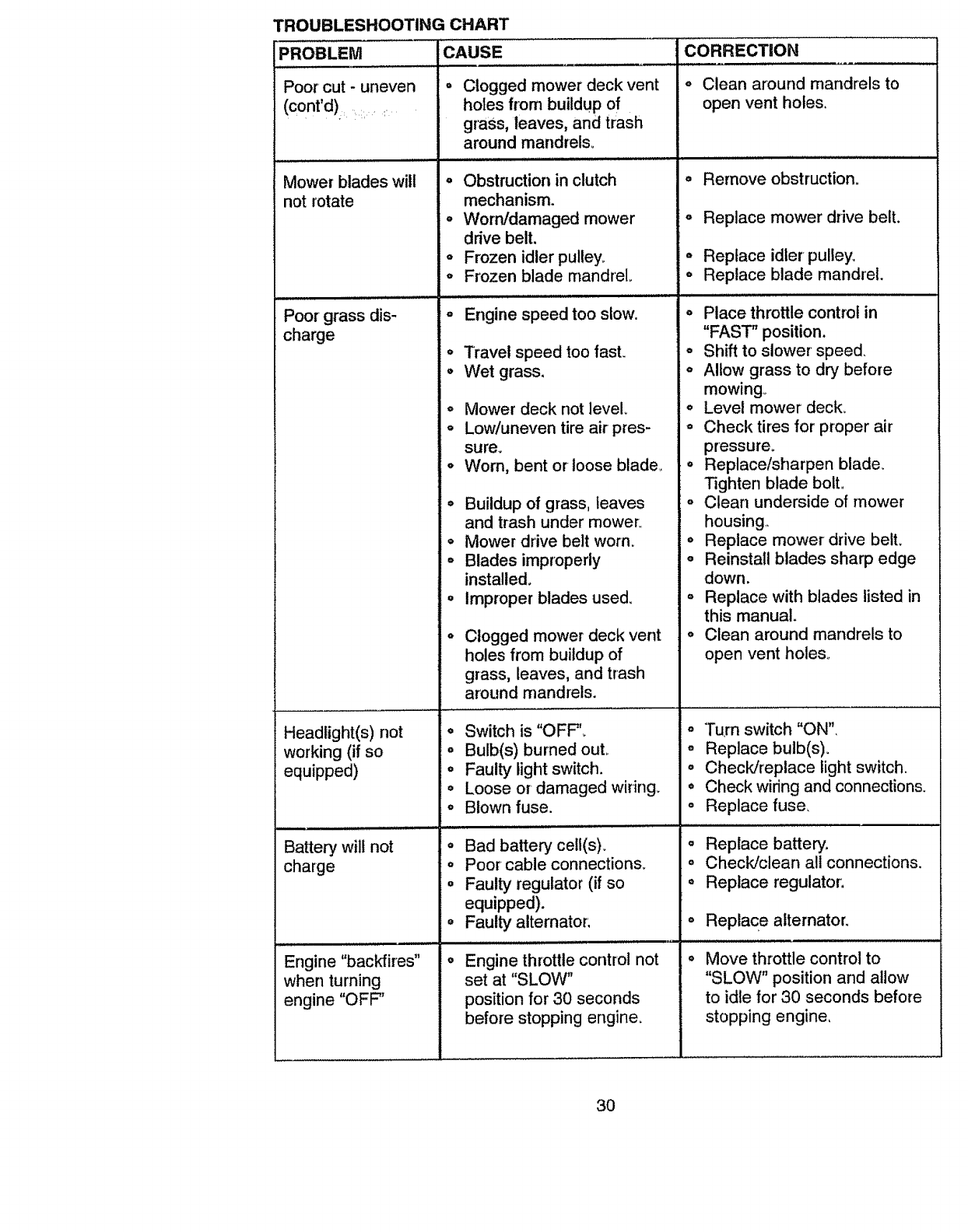 service on your Craftsman riding equipment is available at no charge for 30 days from