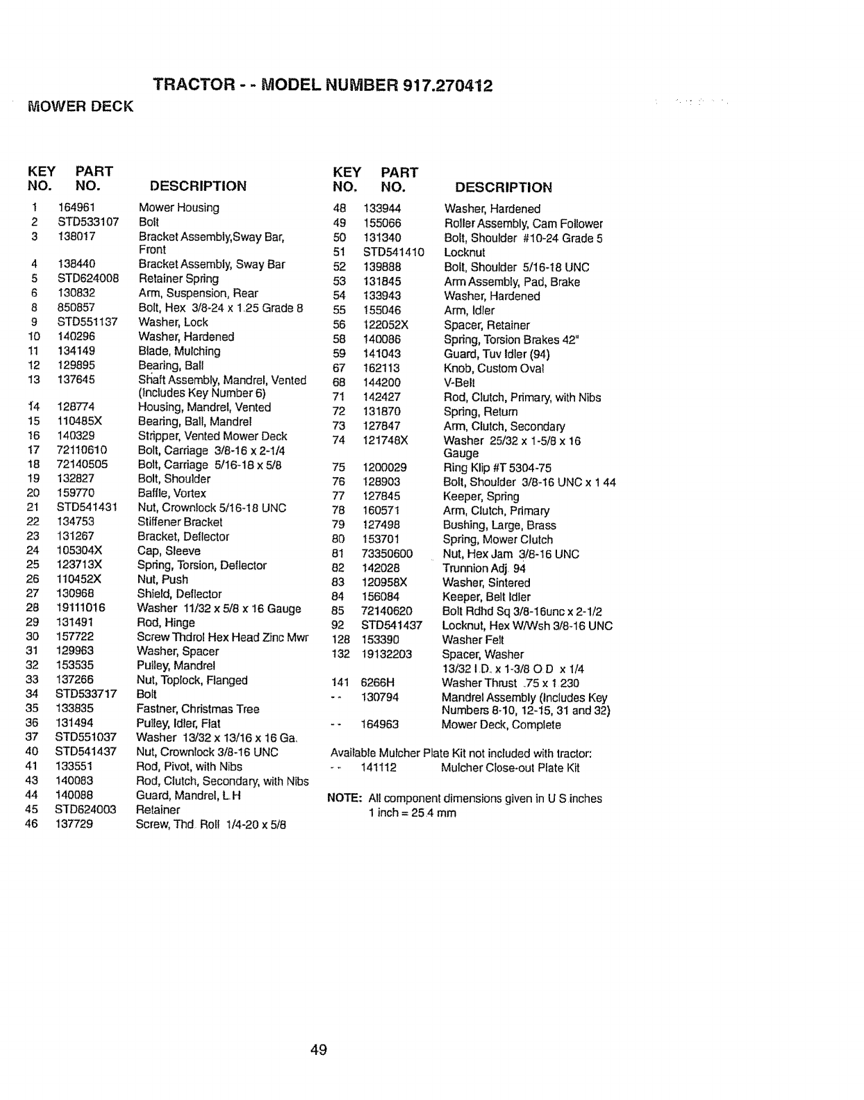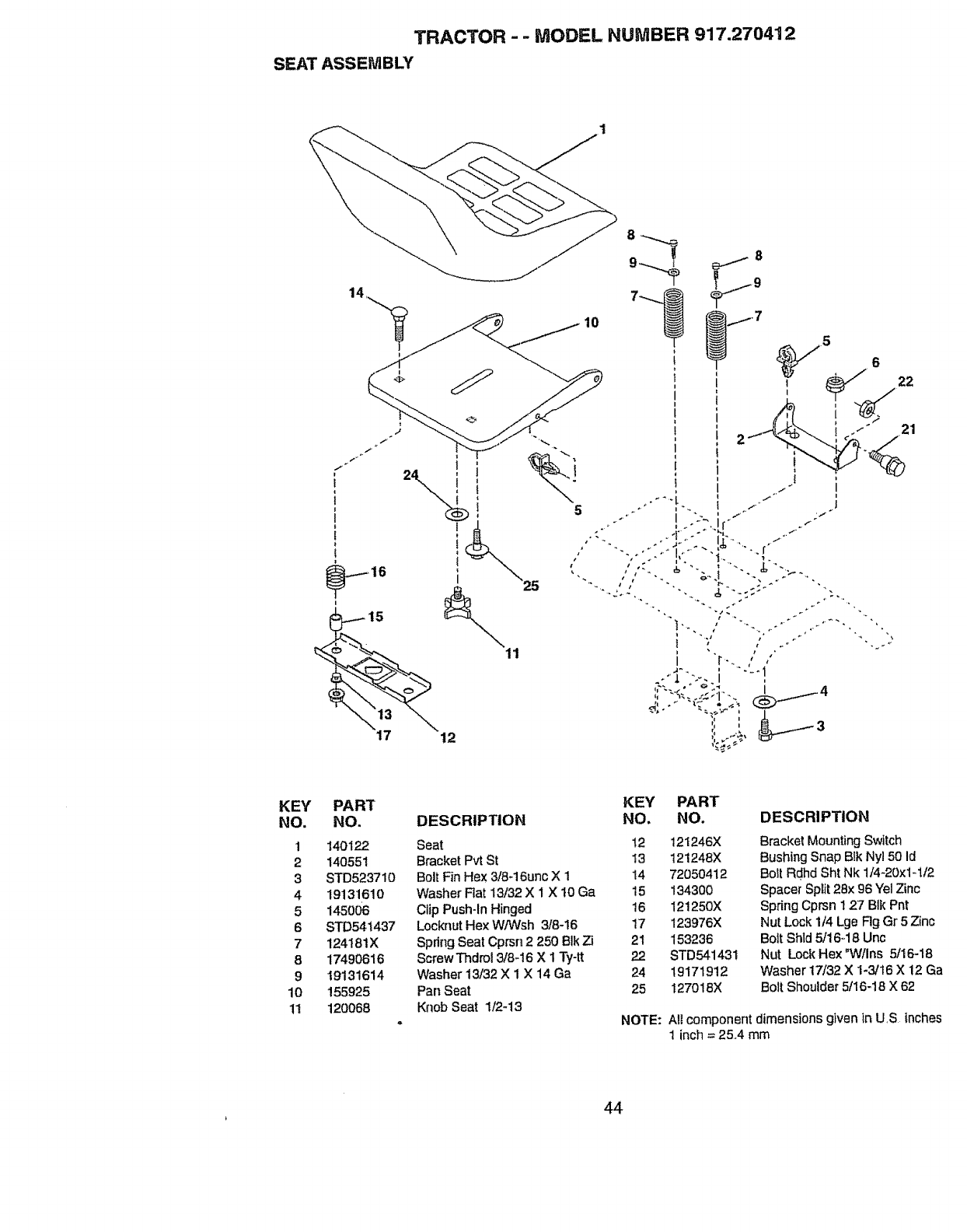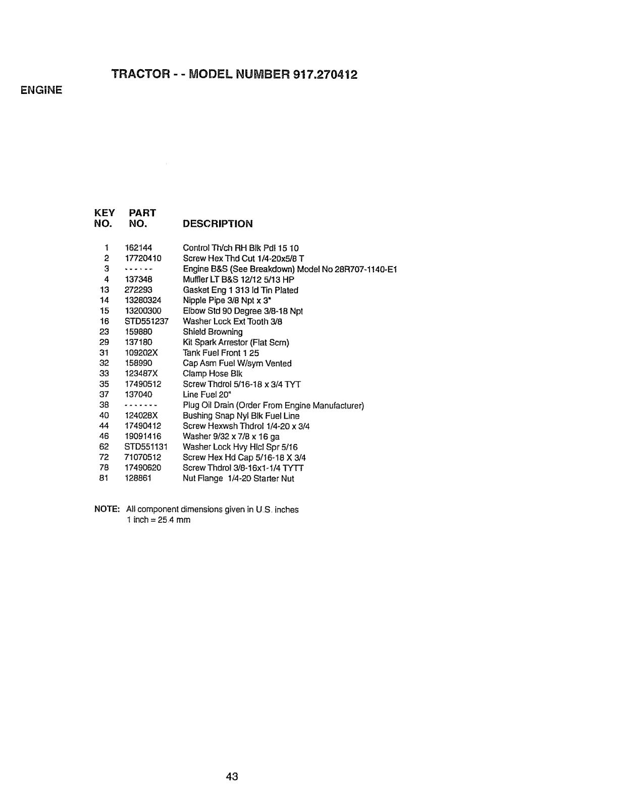 User Manual: Craftsman 917270412 917270412 CRAFTSMAN LAWN TRACTOR - Manuals and Guides View the owners manual for your CRAFTSMAN LAWN TRACTOR #917270412. Home:Lawn & Garden Parts:Craftsman Parts:Craftsman LAWN TRACTOR Manual