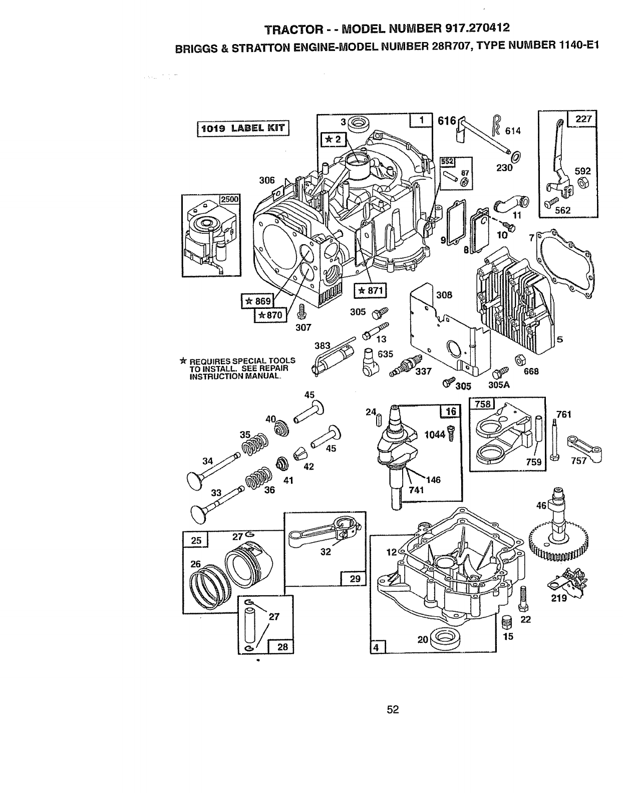 BRtGGS & STRATTON ENGINE-MODEL NUMBER 28R707, TYPE NUMBER 1!40-E!