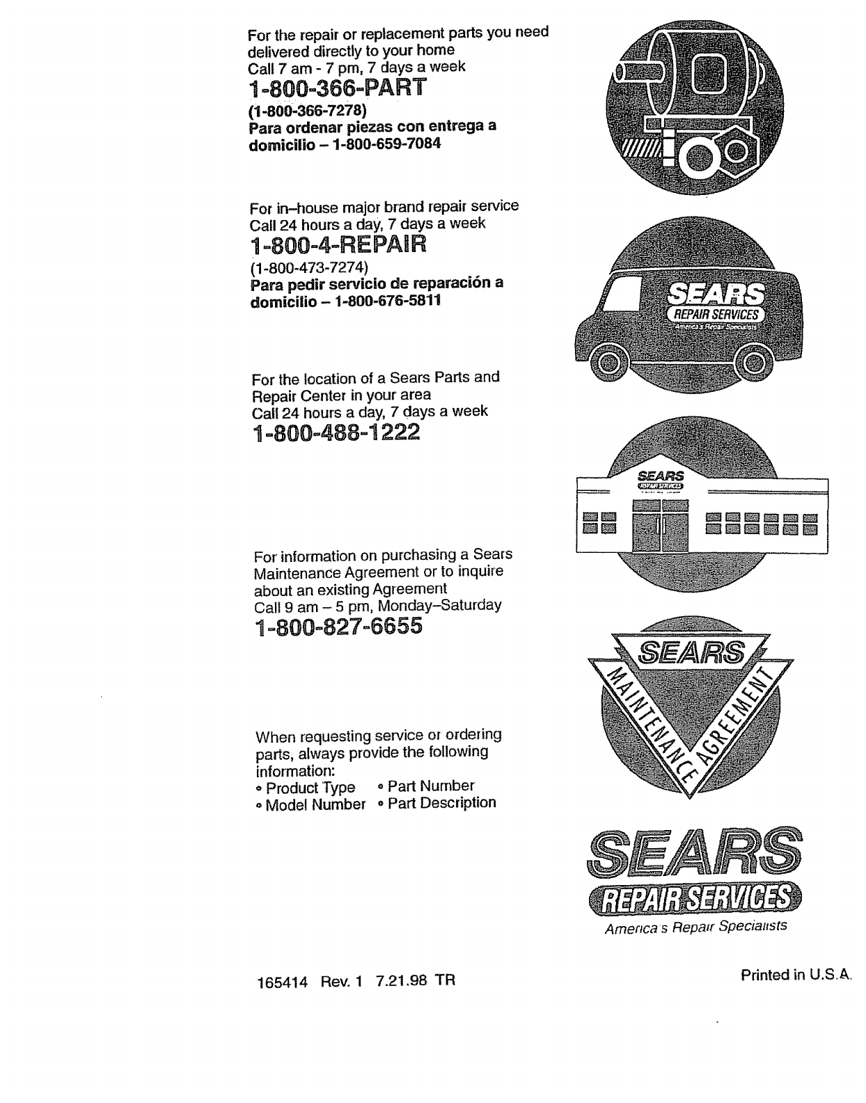 165414 Rev. 1 7.21.98 TR Printed in U.SA