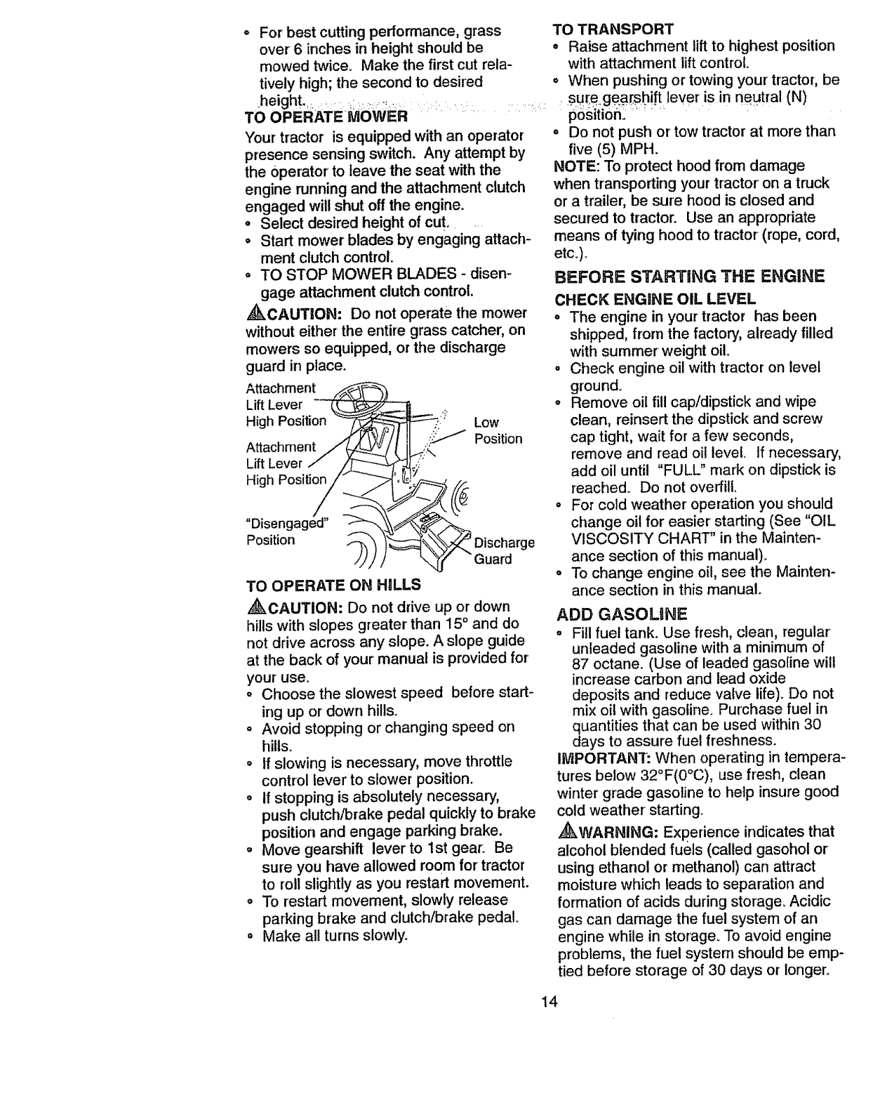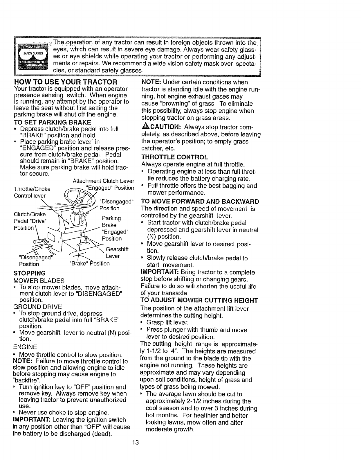 Craftsman 917270412 User Manual LAWN TRACTOR Manuals And Guides L0809537