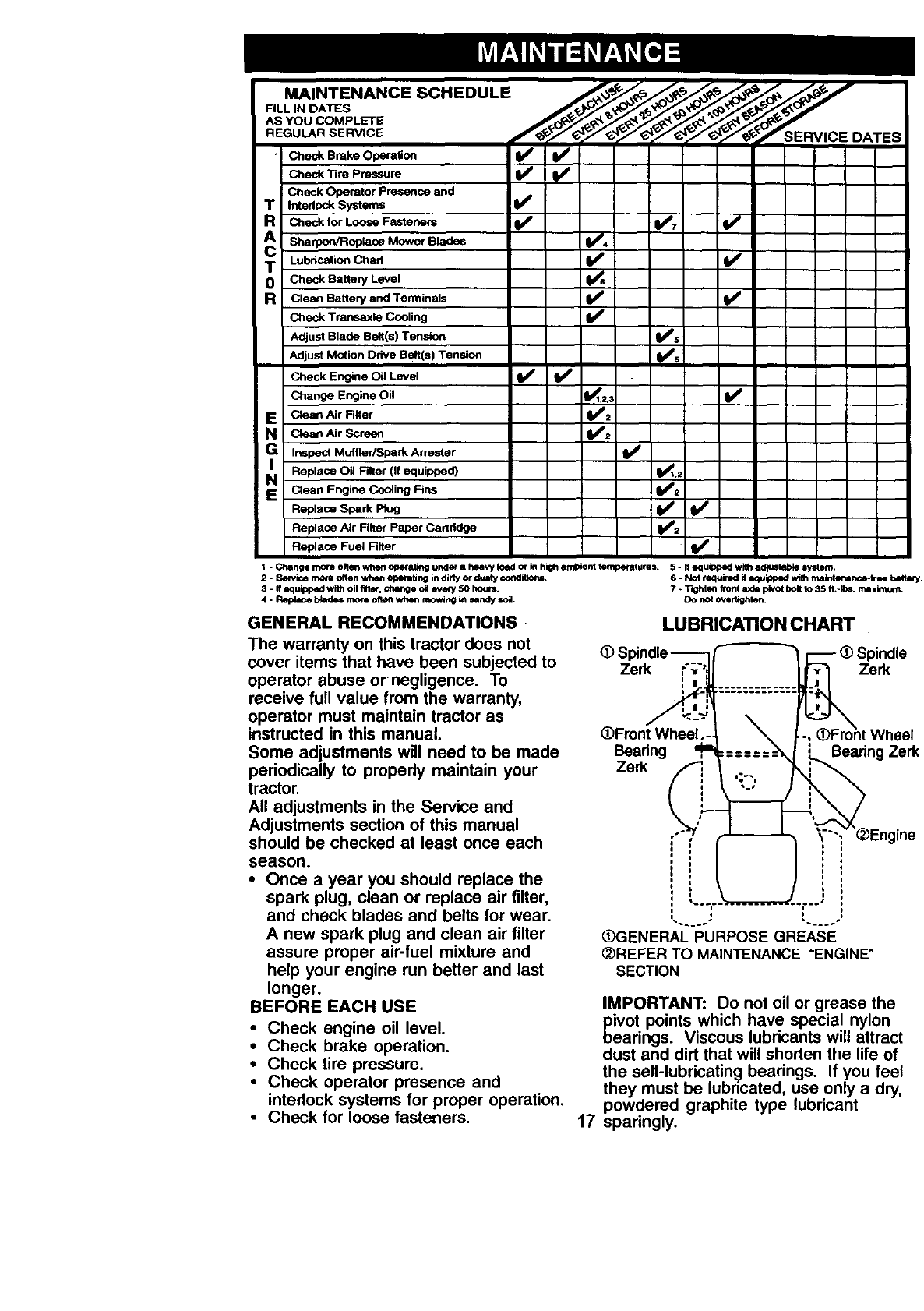 maintained, lubricated and tuned up according to the instructionsin the owner's