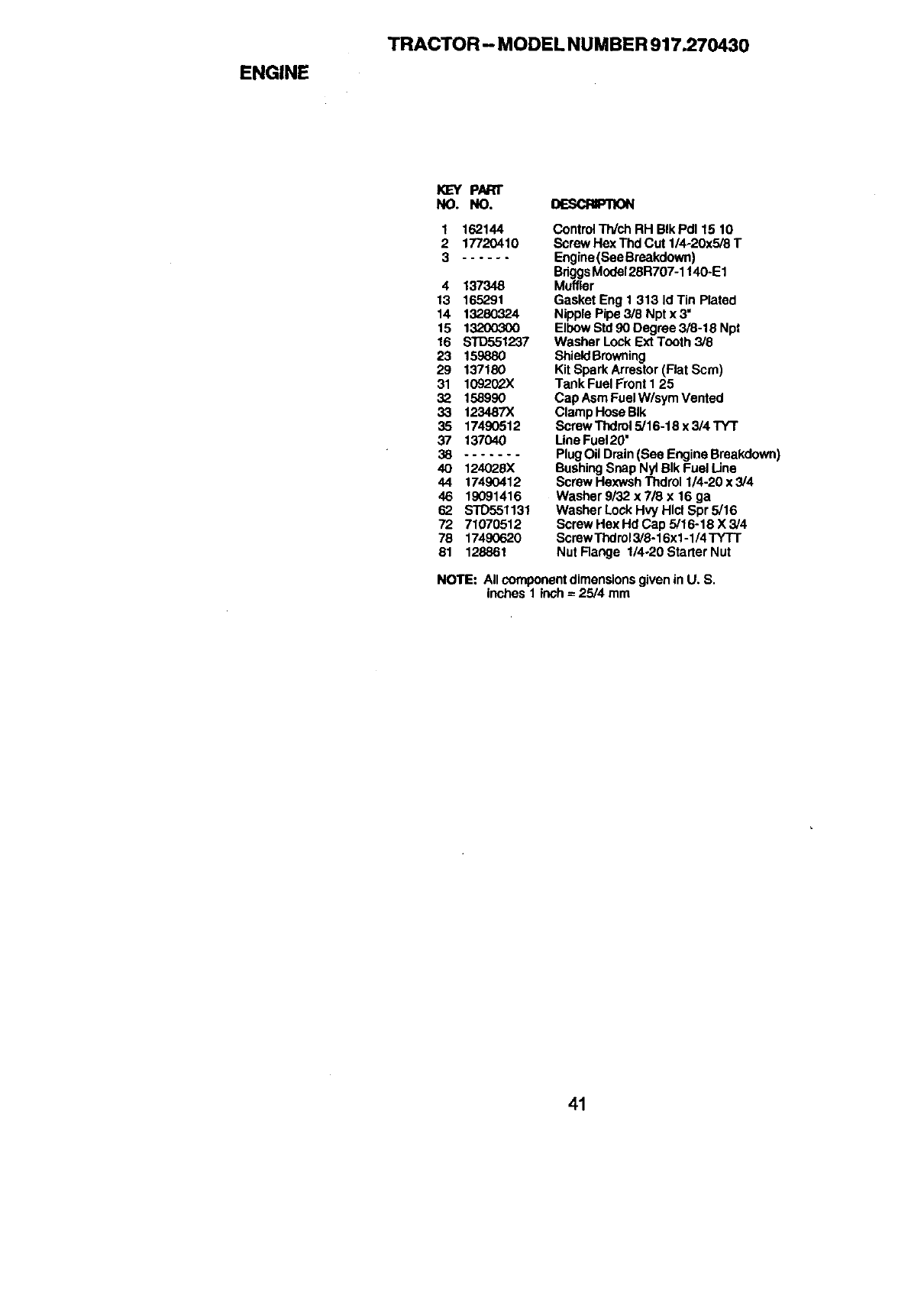 User Manual: Craftsman 917270430 917270430 CRAFTSMAN CRAFTSMAN 13.5 HP 38 MOWER 5SPD LAWN TRACTOR - Manuals and Guides View the owners manual for your CRAFTSMAN CRAFTSMAN 13.5 HP 38 MOWER 5SPD LAWN TRACTOR #917270430. Home:Lawn & Garden Parts:Craftsman Parts:Craftsman CRAFTSMAN 13.5 HP 38 MOWER 5SPD LAWN TRACTOR Manual