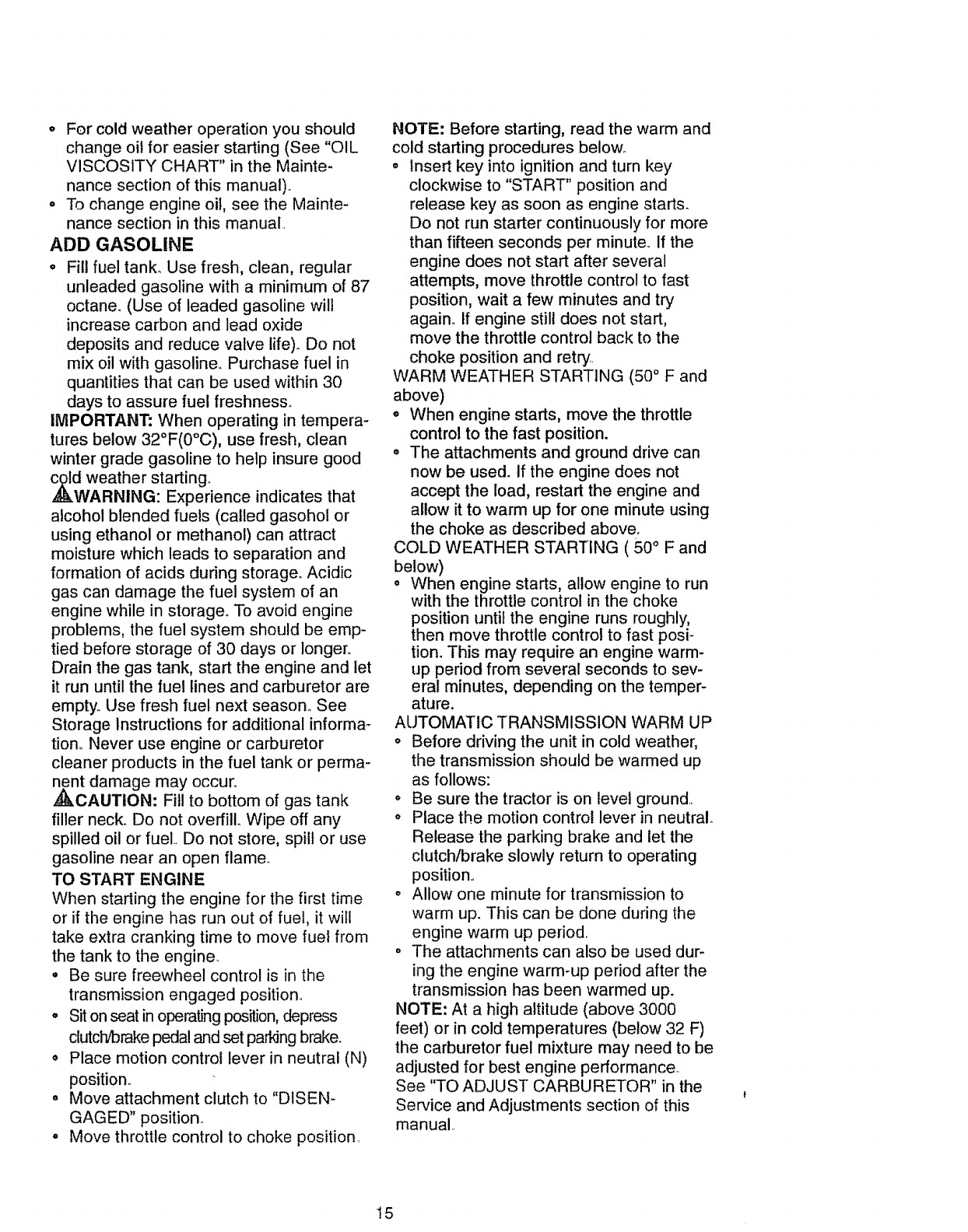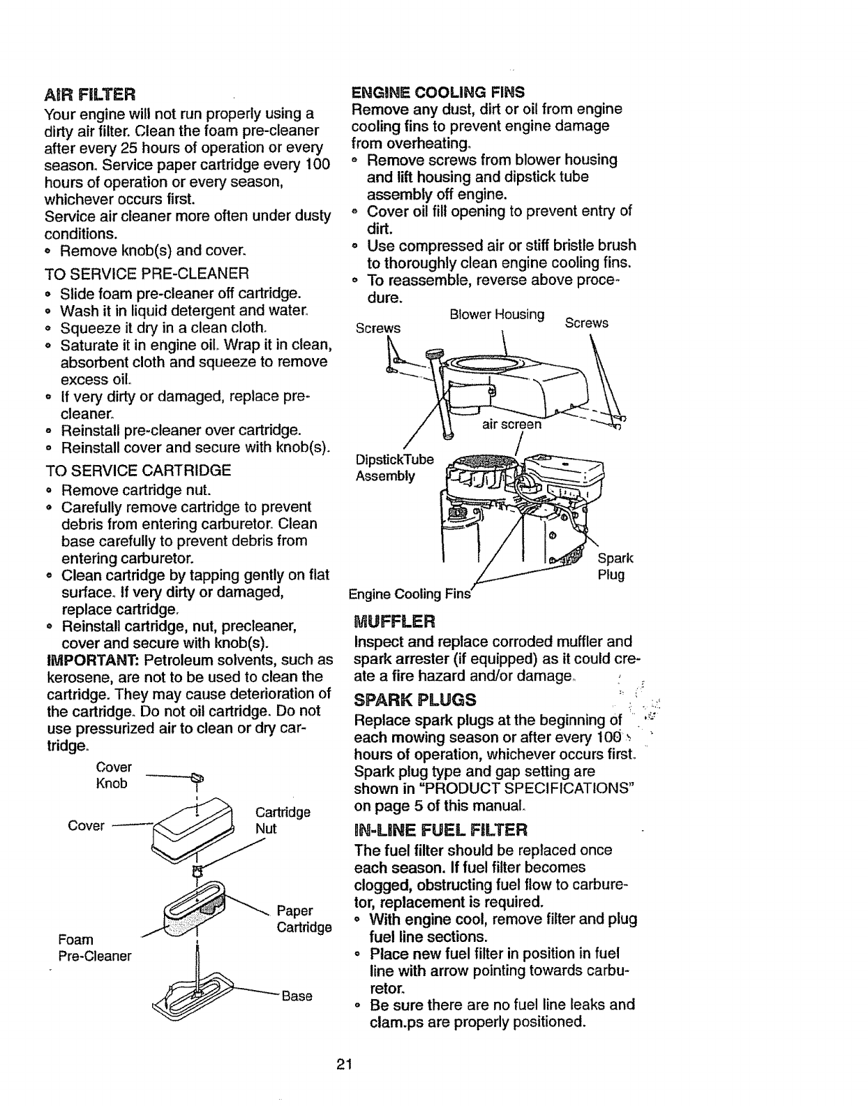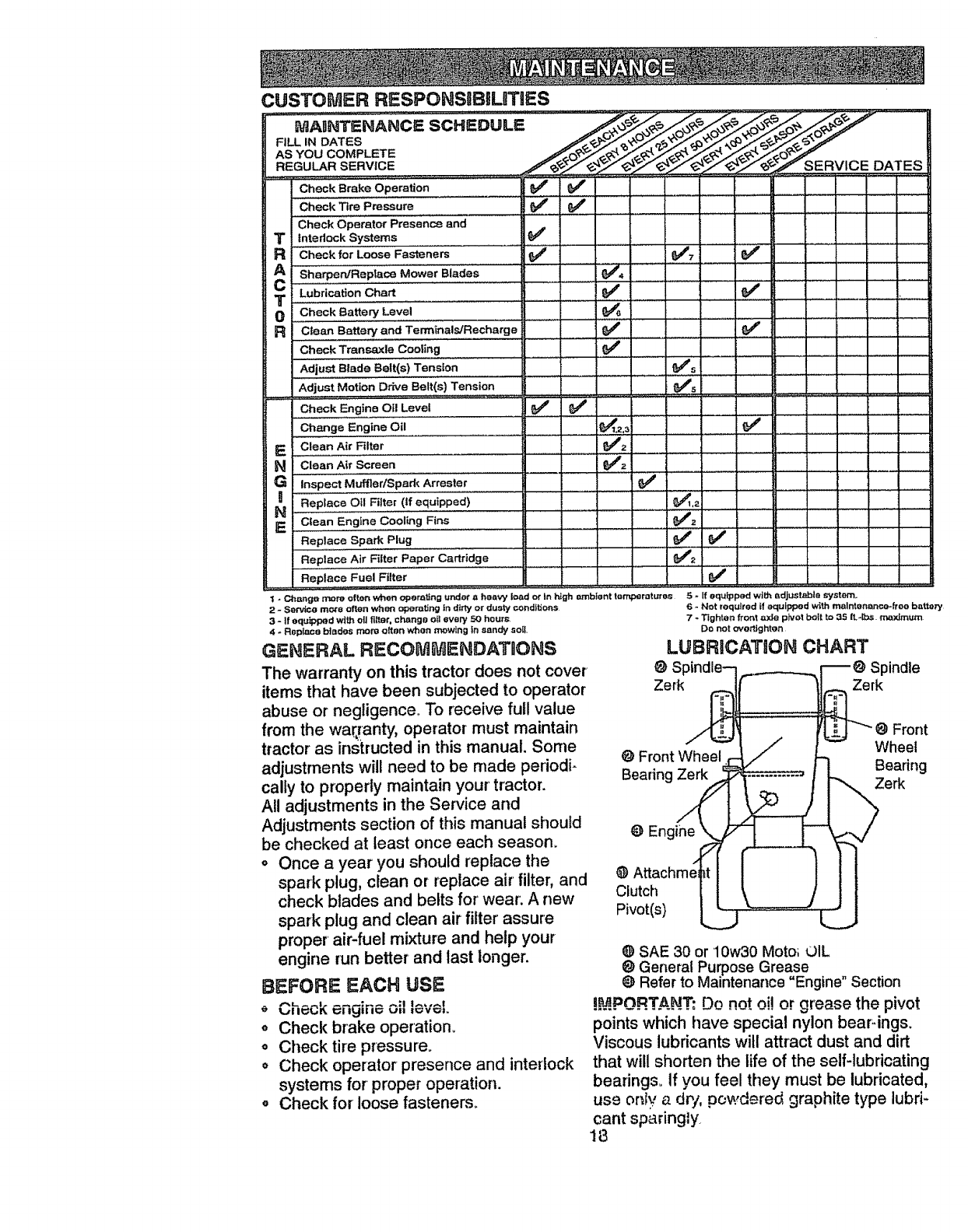 tained, lubricated and tuned up according to the instructions in the owner's manual,