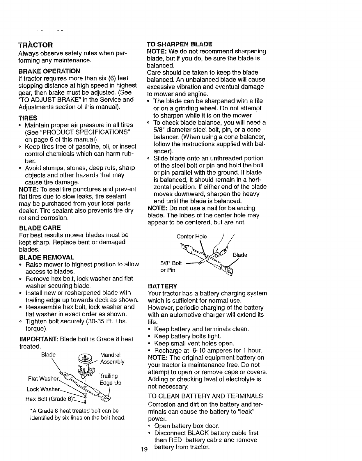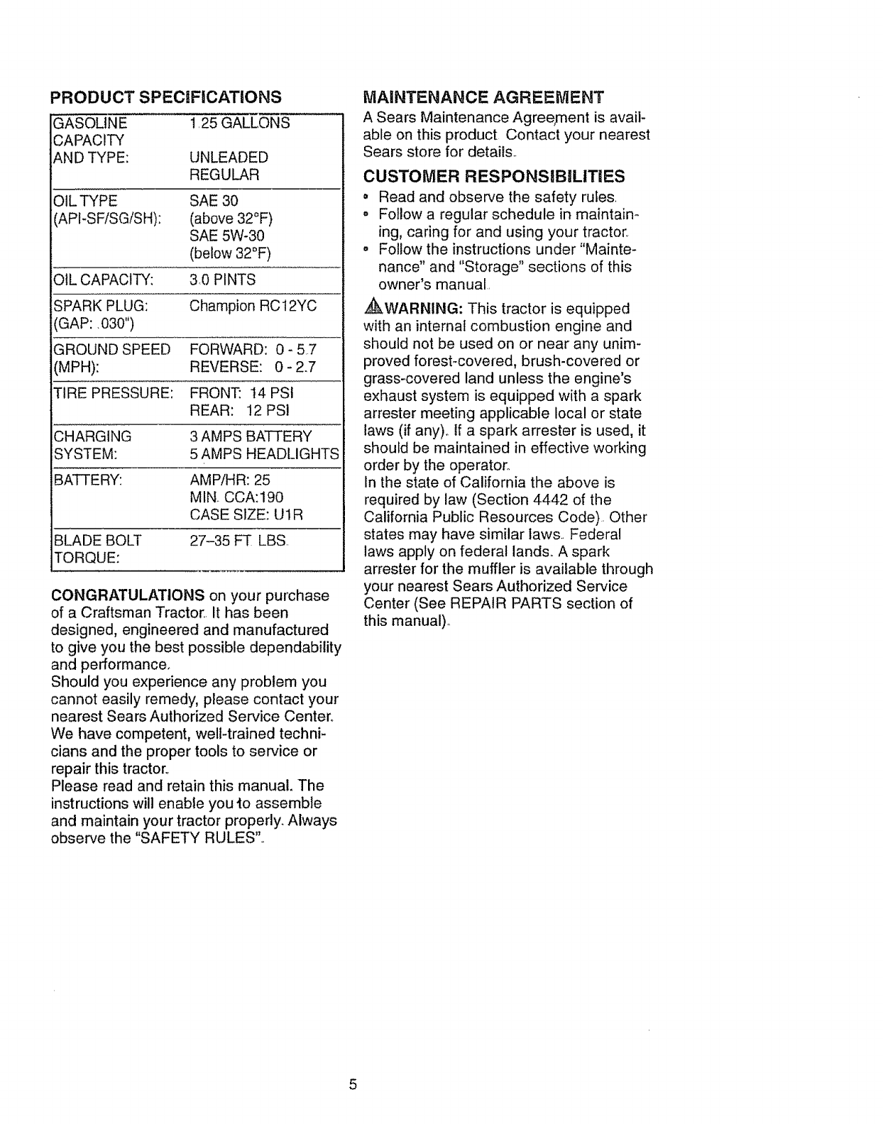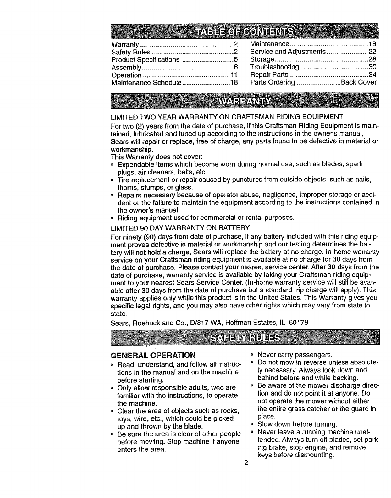 date of purchase, warranty service is available by taking your Craftsman riding equip-