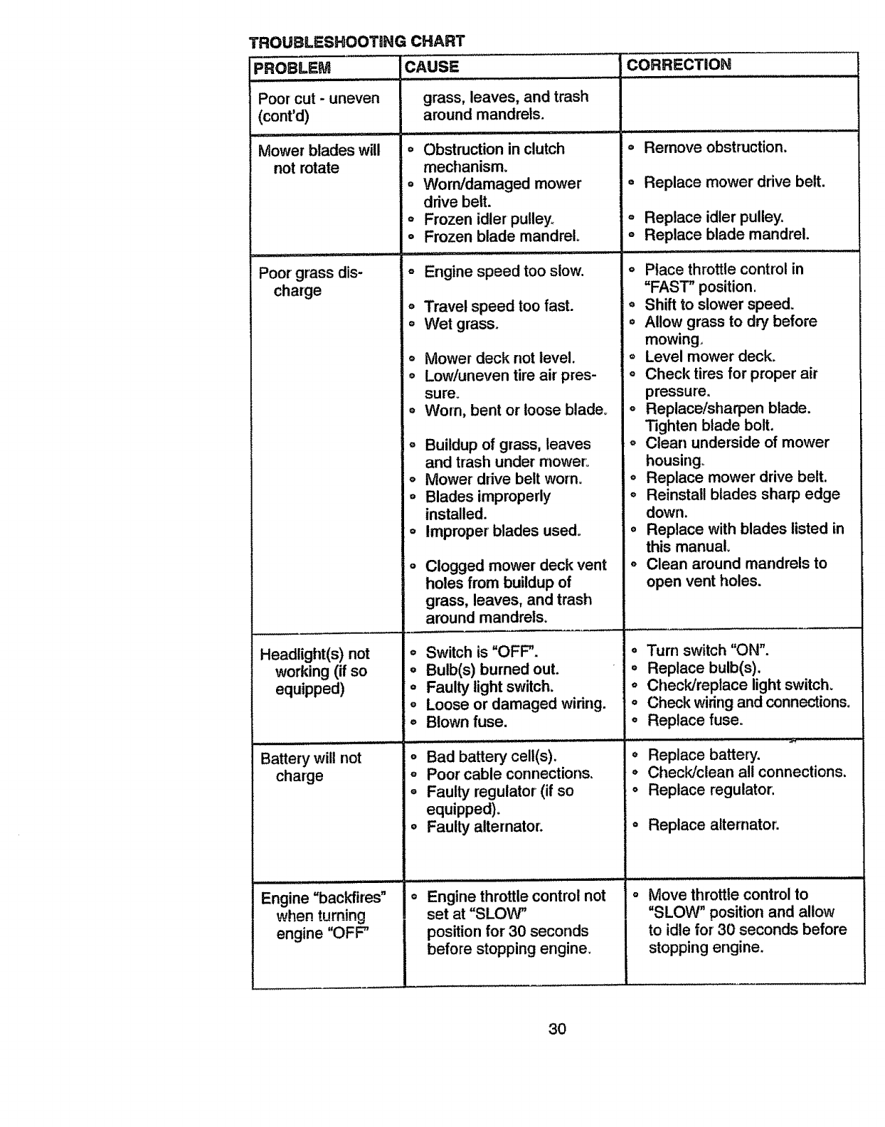 service on your Craftsman riding equipment is available at no charge for 30 days from