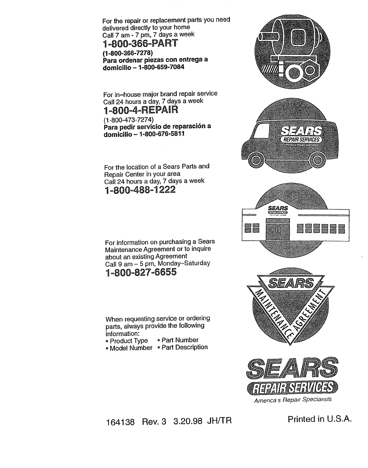 164138 Rev, 3 3.20,98 JH/TR Printed in U.S.A.