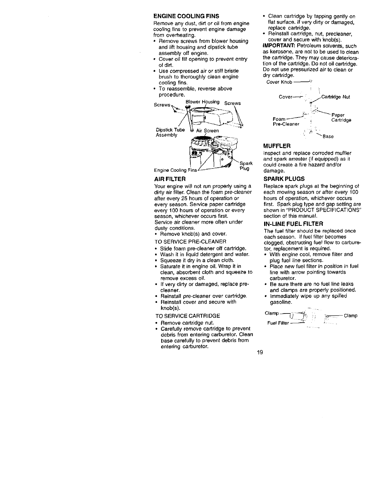 maintained, lubricated and tuned up according to the instructions in the owner's