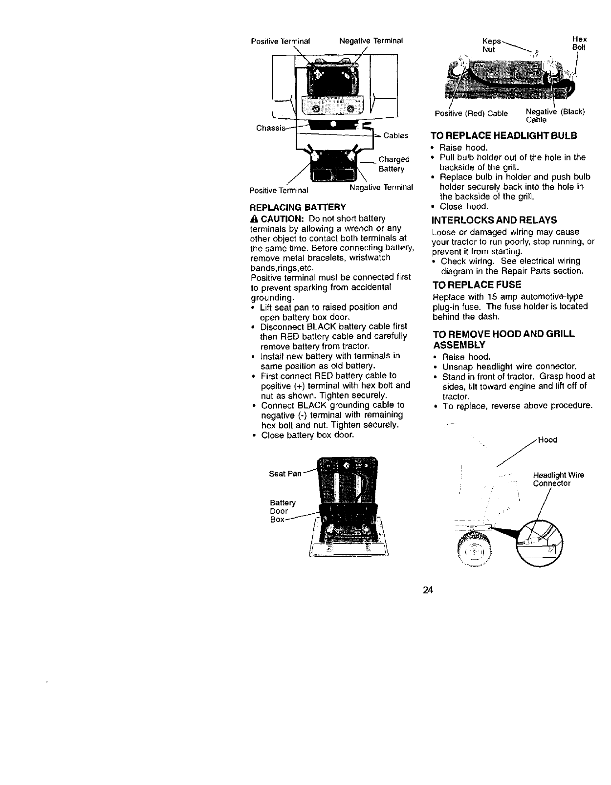 the battery will not hold a charge, Sears will replace the battery at no charge. War-
