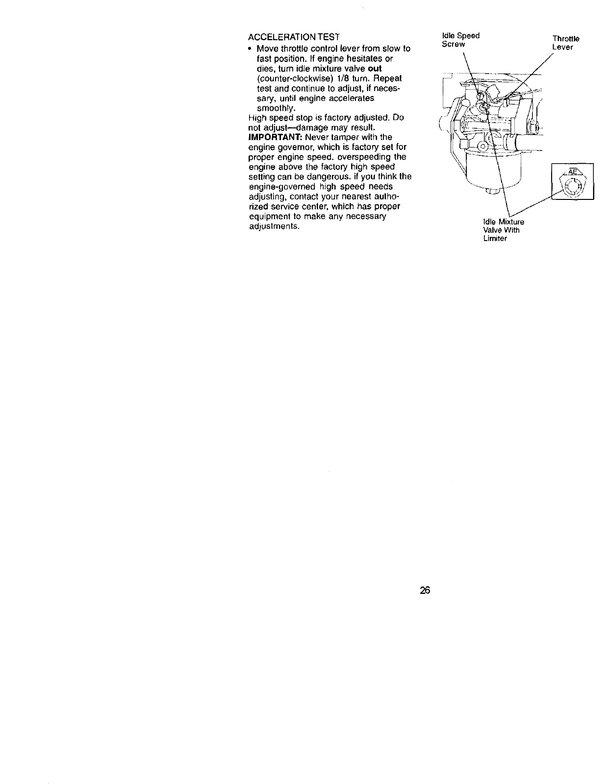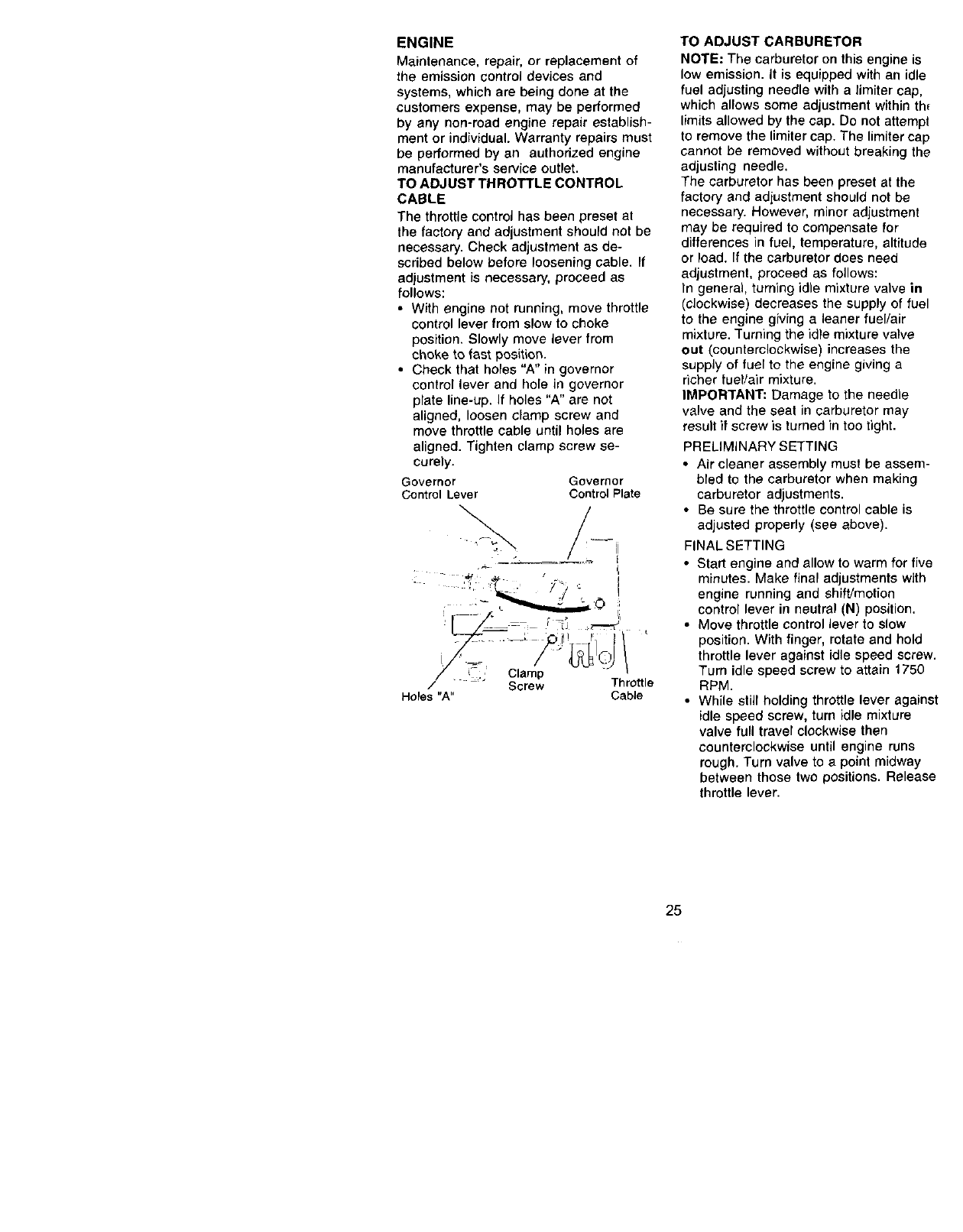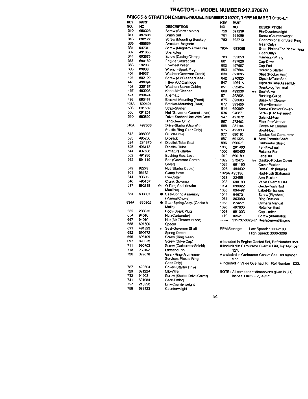 691 491323 ¢r Seal-Governor Shaft RPM Settings: Low Speed: 1900-2100
