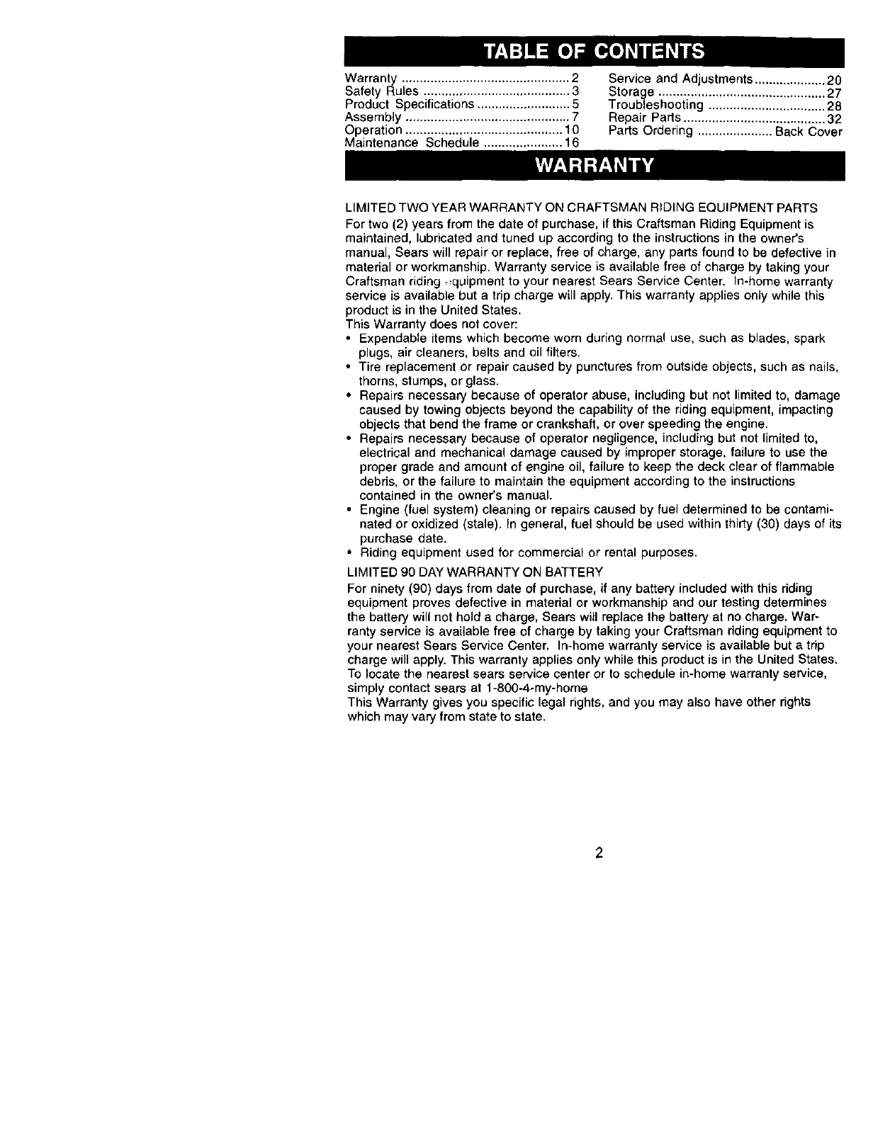 LIMITED TWO YEAR WARRANTY ON CRAFTSMAN RIDING EQUIPMENT PARTS
