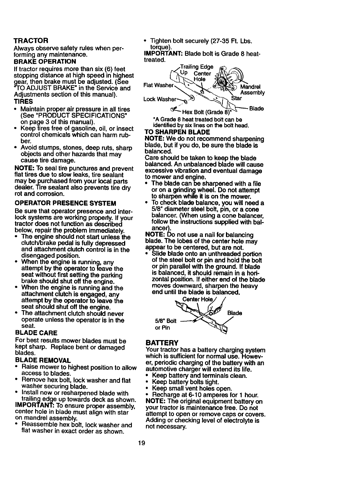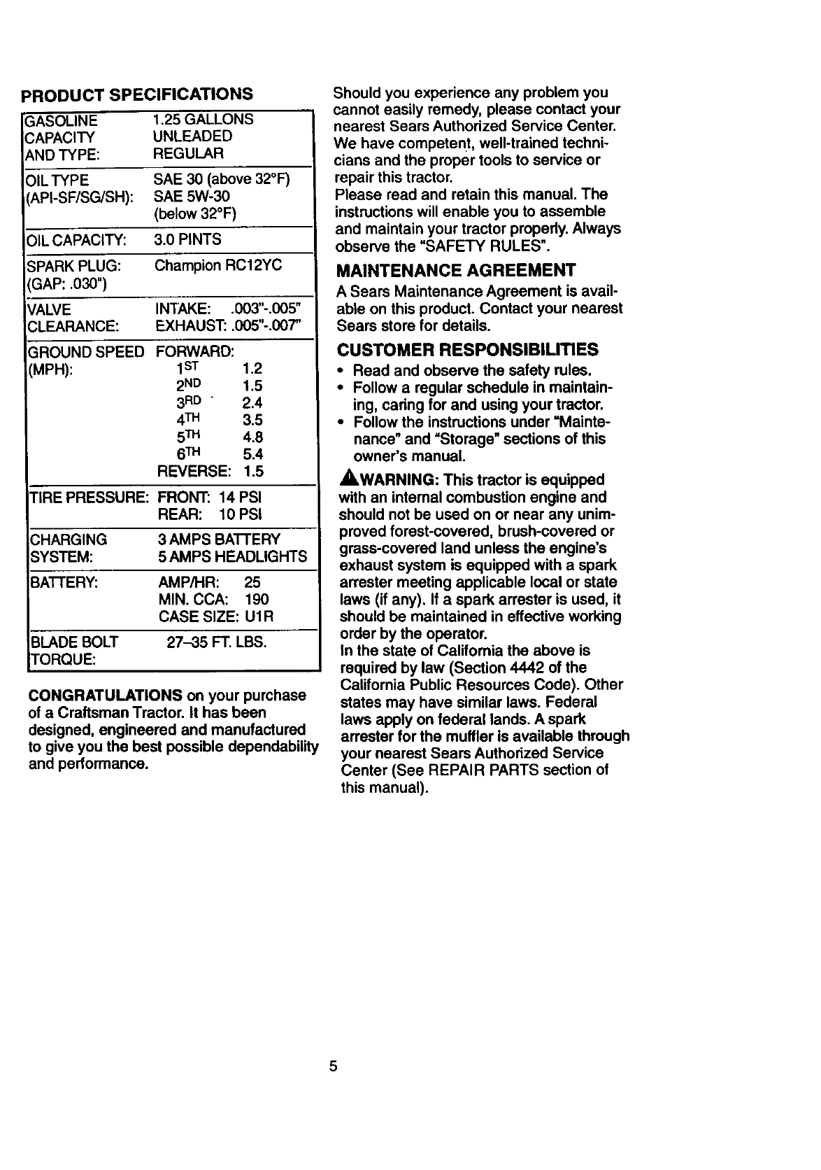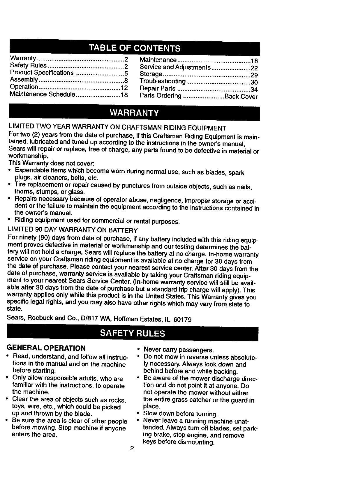 date of purchase, warranty service is available by taking your Craftsman riding equip-