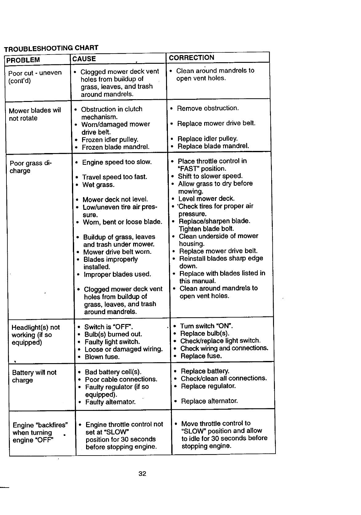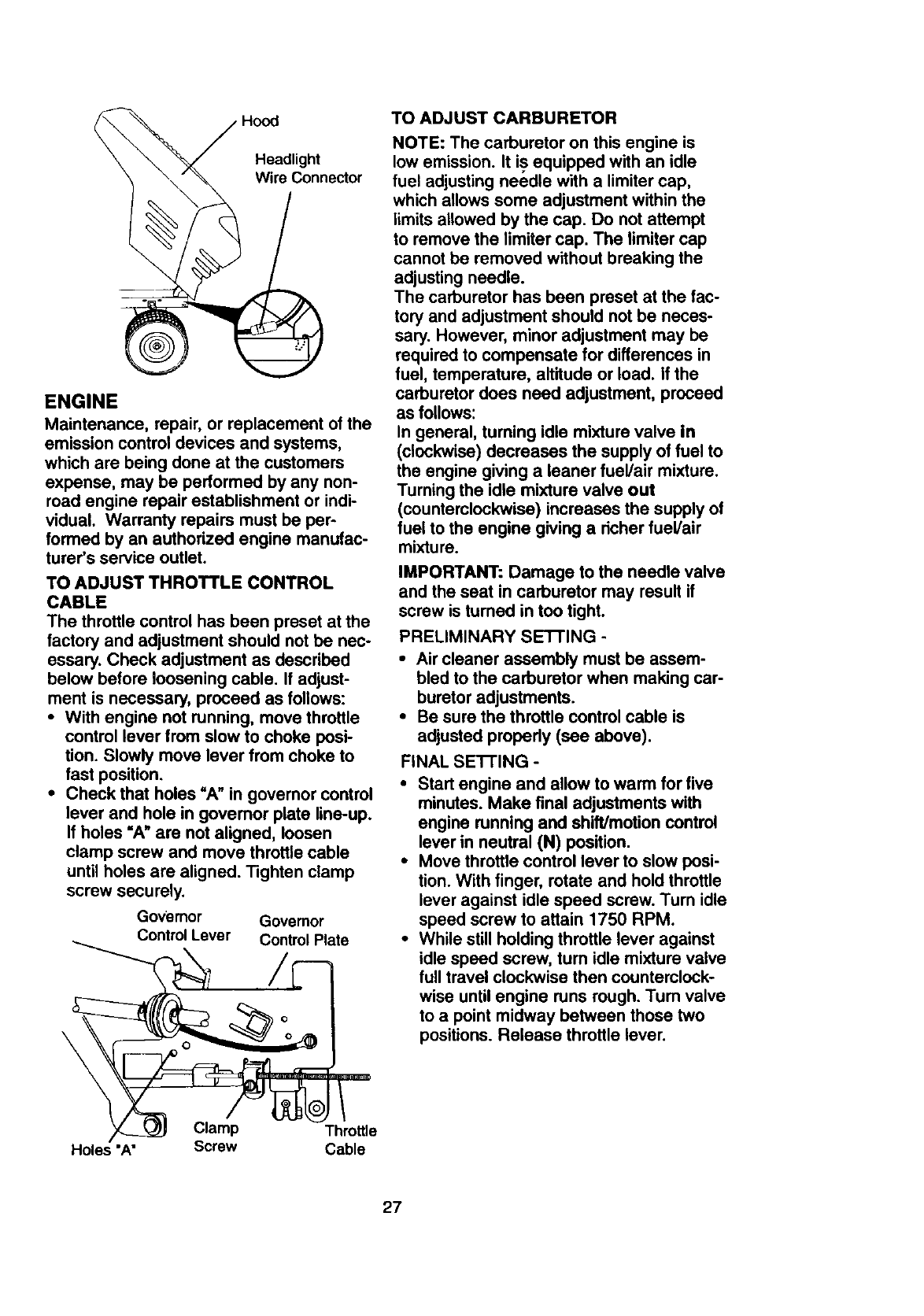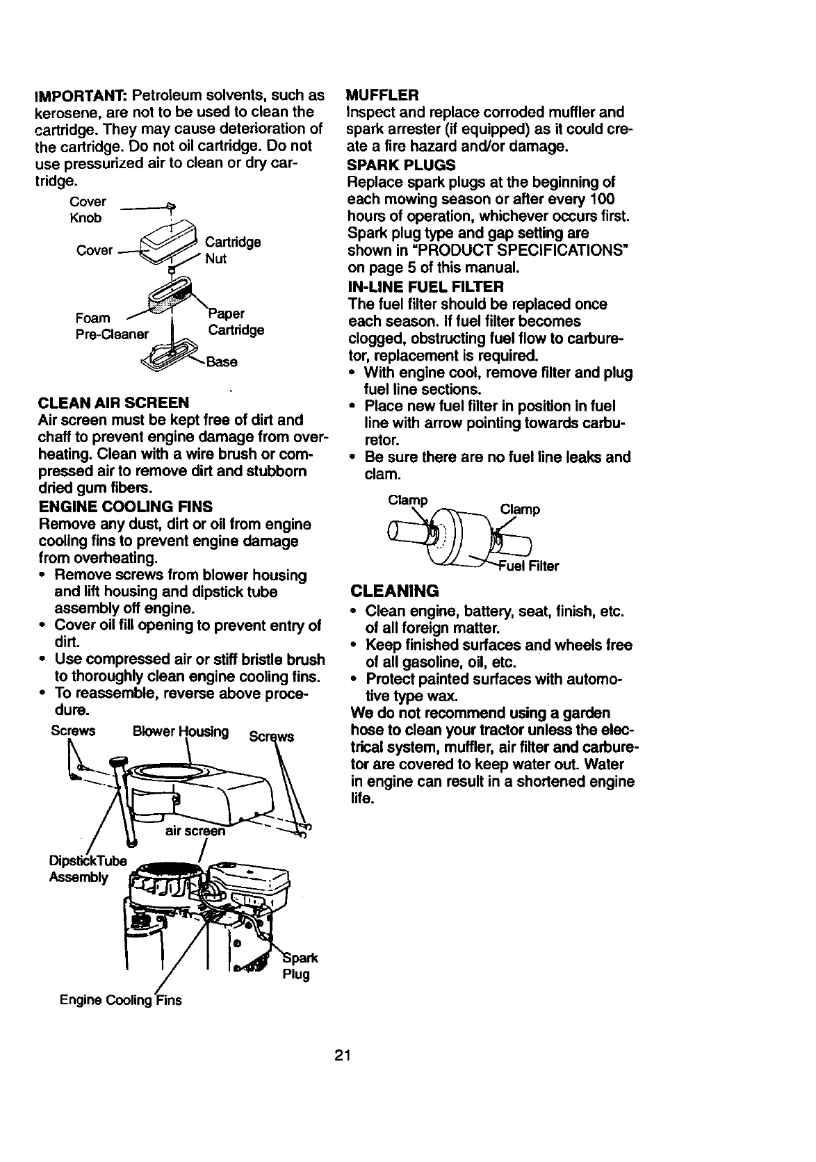 tained, lubricated and tuned up according to the instructions in the owner's manual,