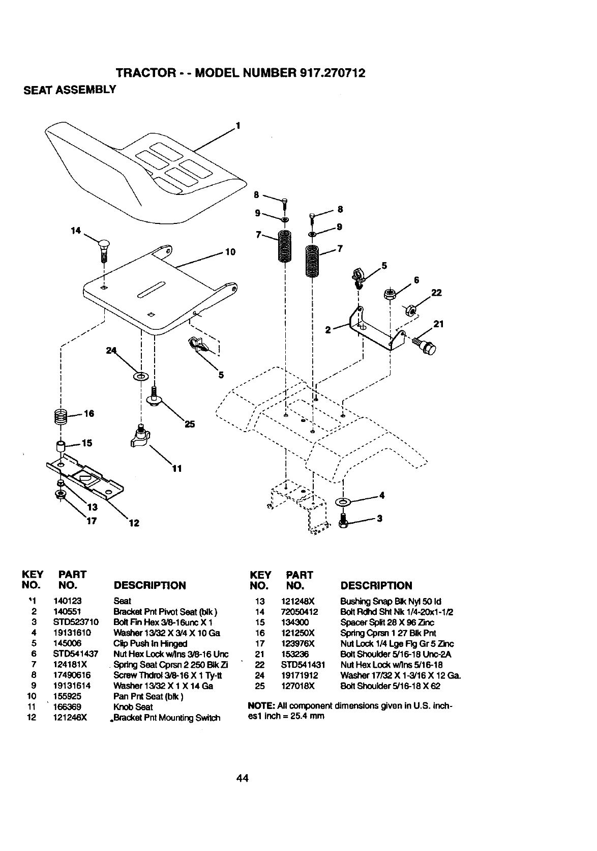 User Manual: Craftsman 917270712 917270712 CRAFTSMAN LAWN TRACTOR - Manuals and Guides View the owners manual for your CRAFTSMAN LAWN TRACTOR #917270712. Home:Lawn & Garden Parts:Craftsman Parts:Craftsman LAWN TRACTOR Manual