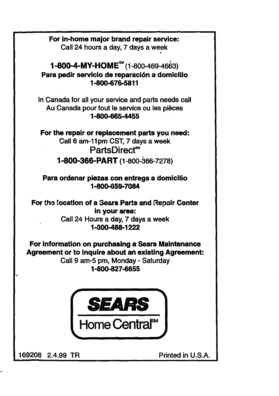 ment to your nearest Sears Service Center. (In-home warranty service will still be avail-