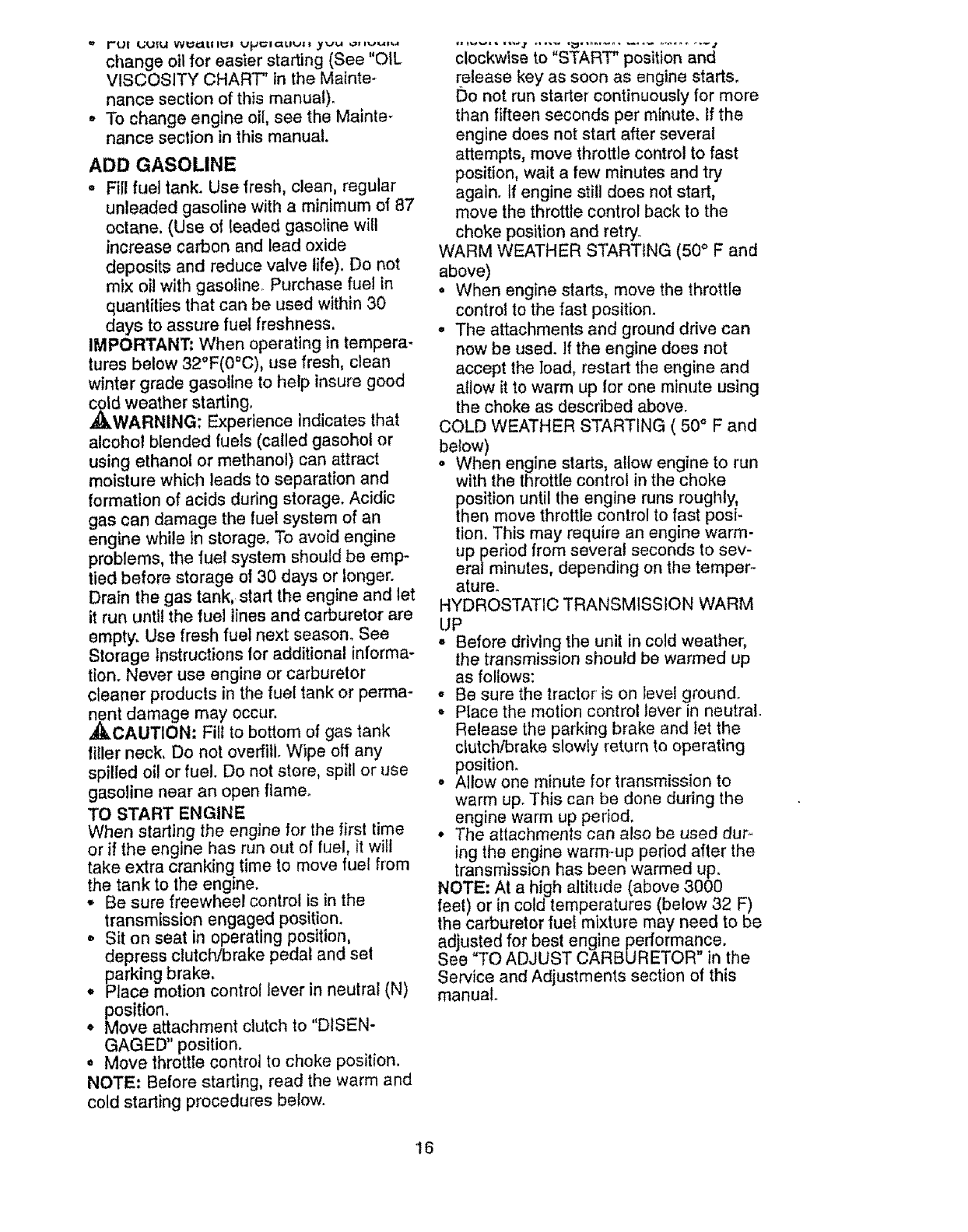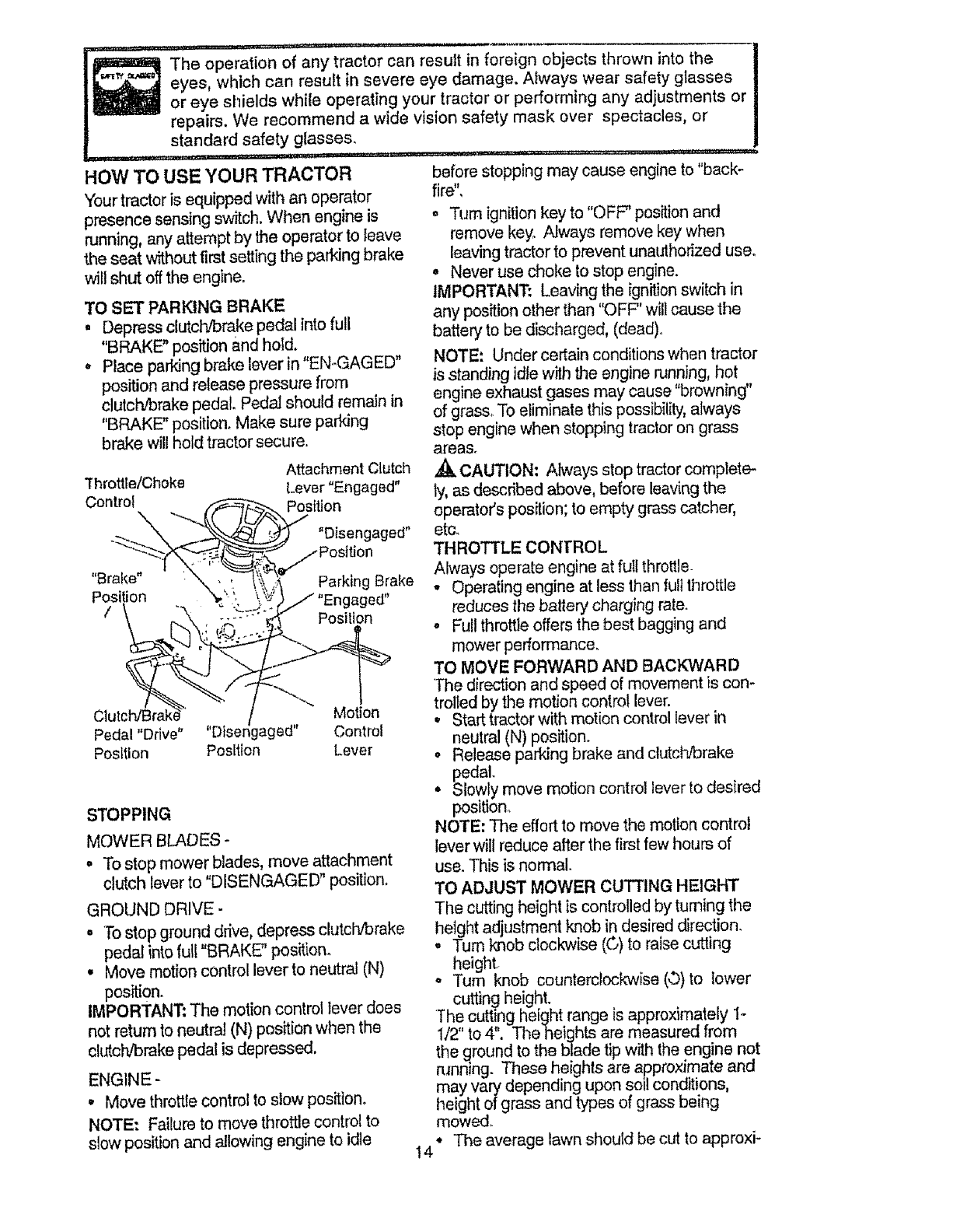 Craftsman 917270721 User Manual TRACTOR Manuals And Guides L0804023