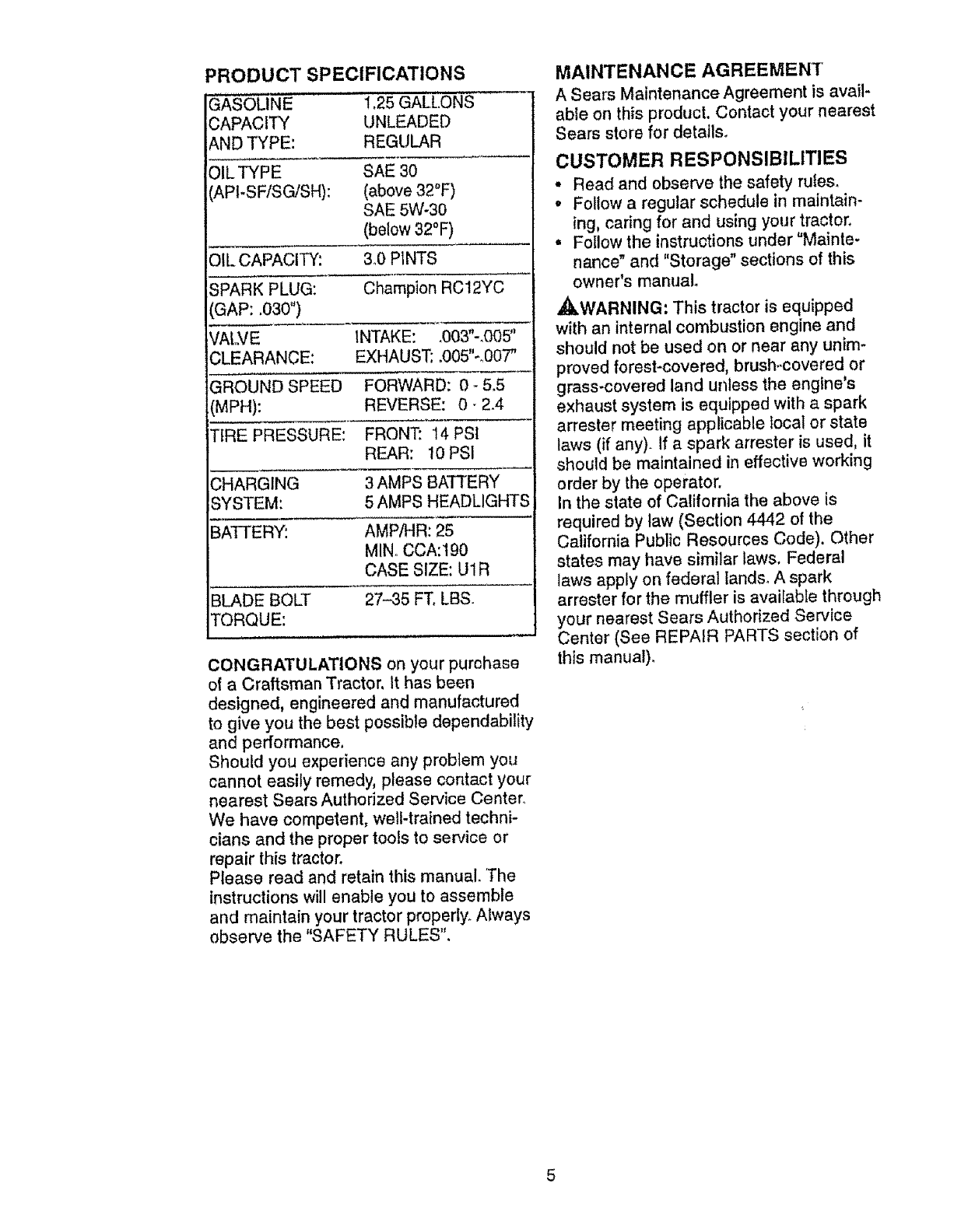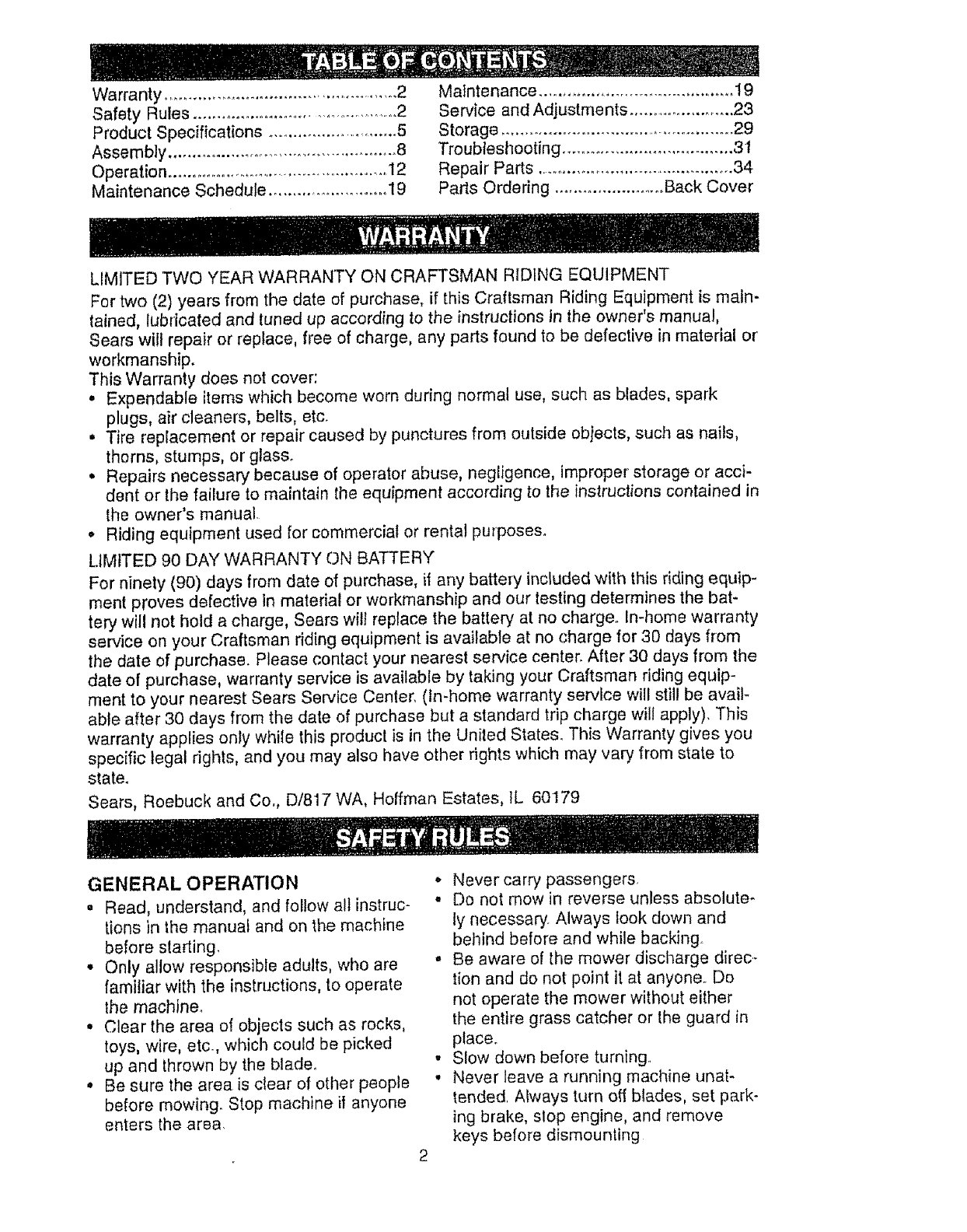 date of purchase, warranty service is available by taking your Craftsman riding equip-