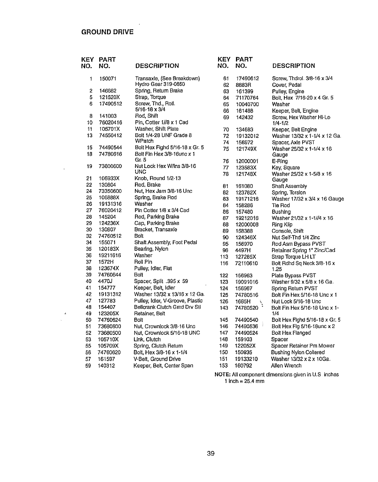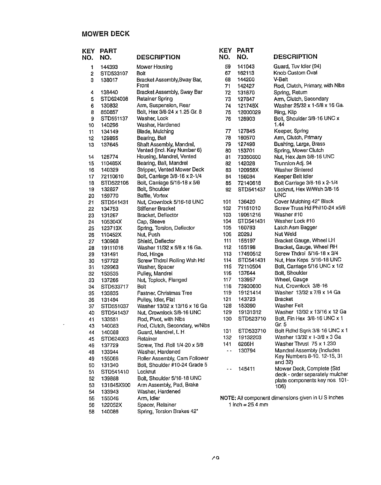 689 262715 Spring, Friclion NOTE: All component dimensions given in U S inches