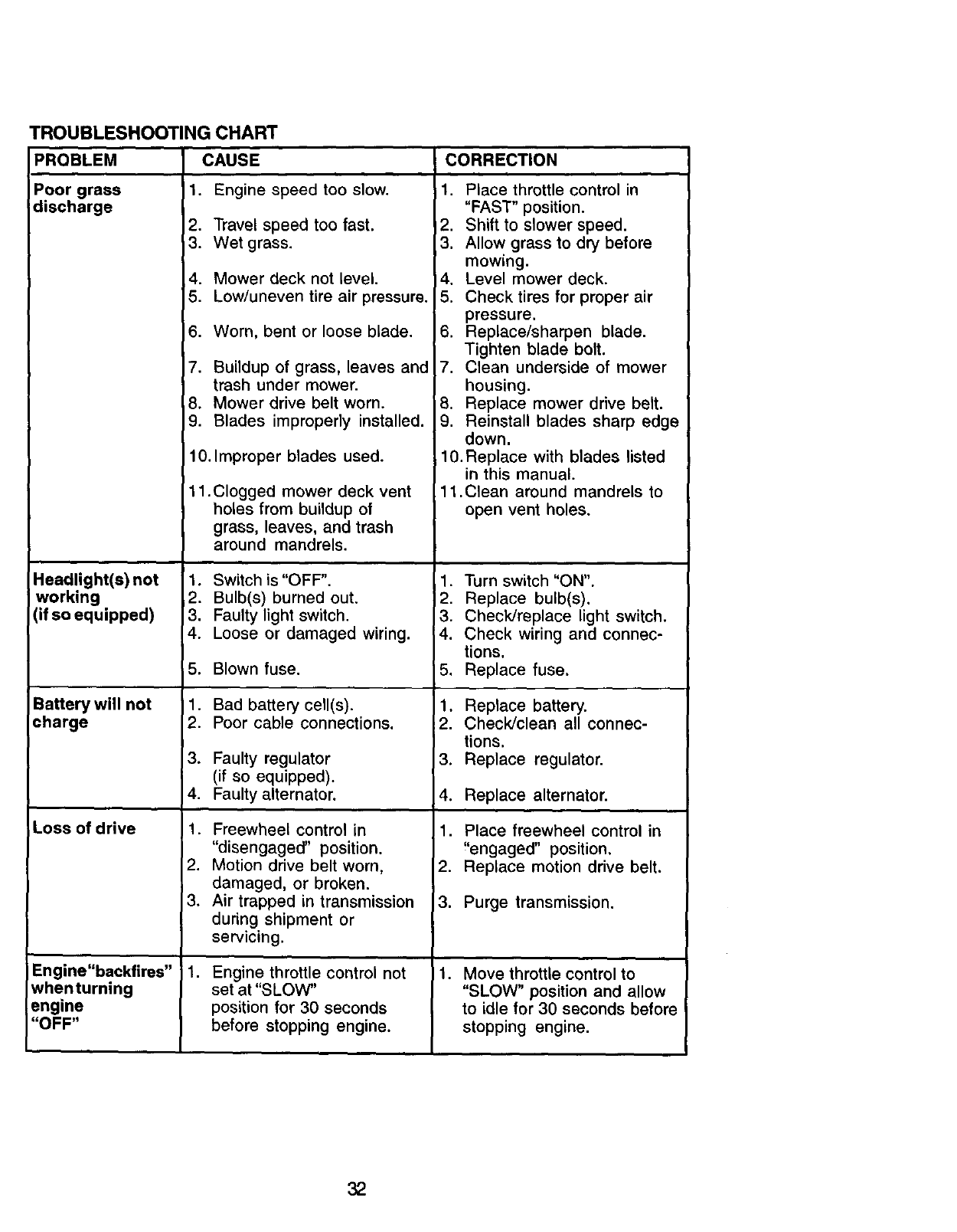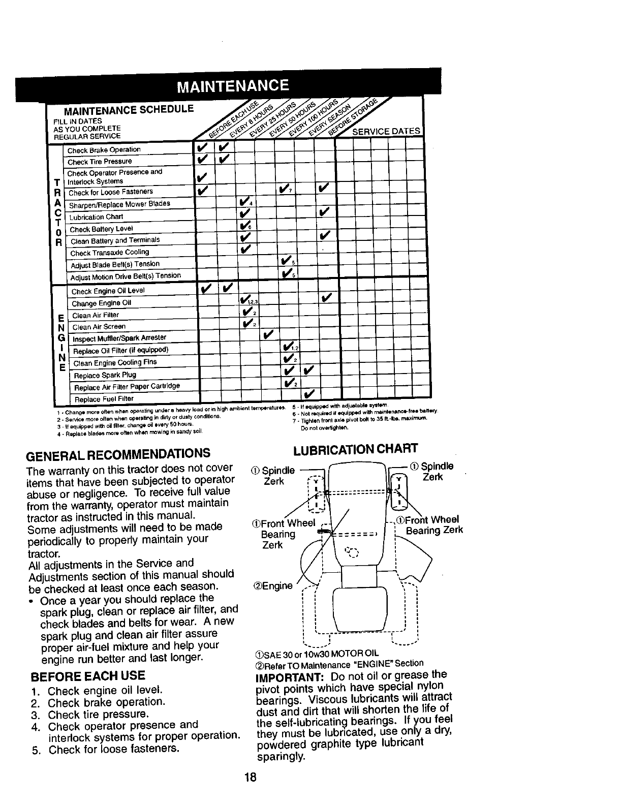 maintained,lubricatedand tuned up accordingto the instructionsin the owner's